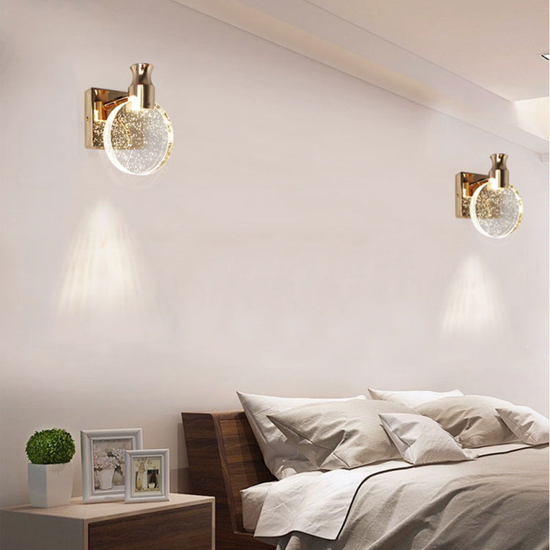 Contemporary Nordic Hardware Crystal Round LED Wall Sconce Lamp For Bedroom