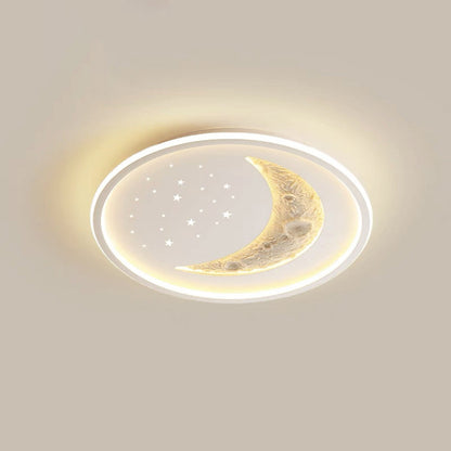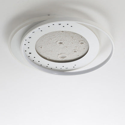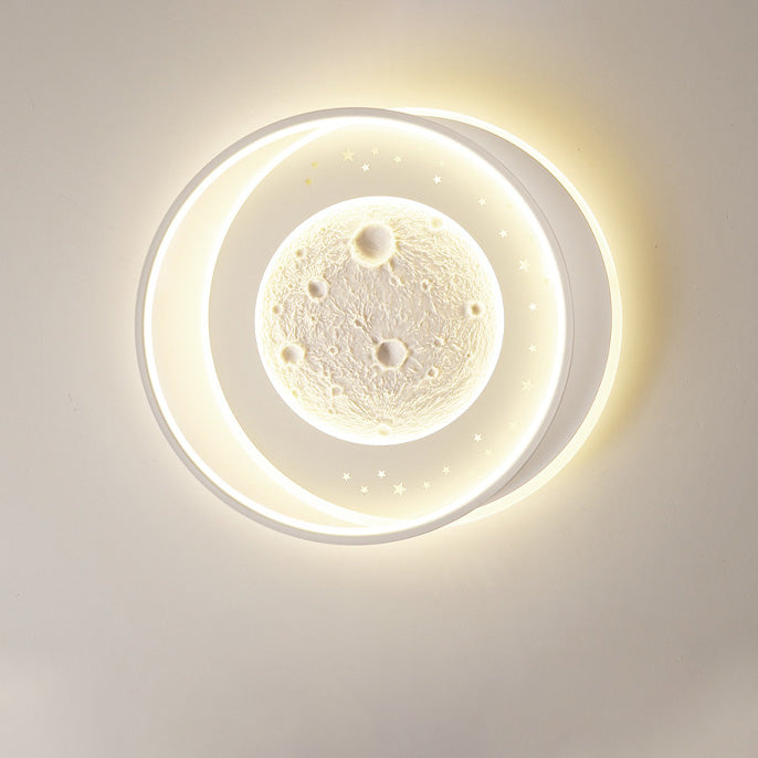 Contemporary Nordic Iron Acrylic Planet Moon Round Triangle LED Flush Mount Ceiling Light For Bedroom