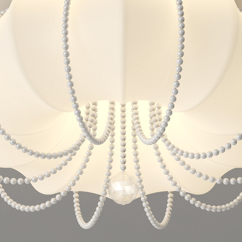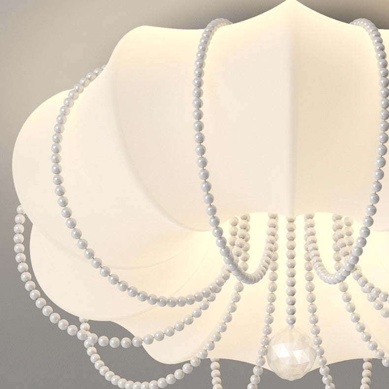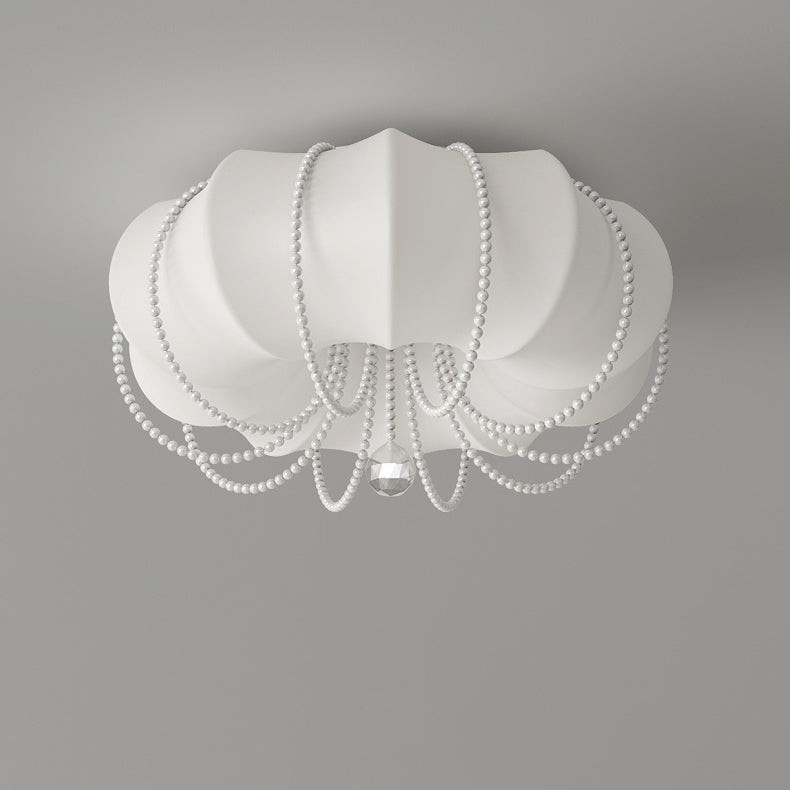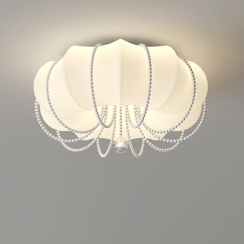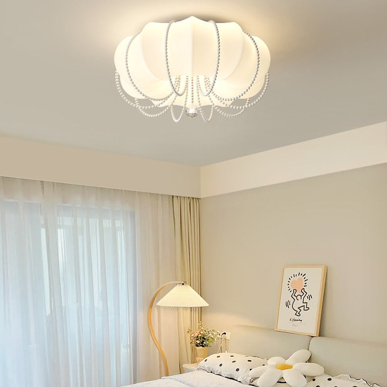 Contemporary Nordic Iron PE Pumpkin Shade Pearl Decoration LED Flush Mount Ceiling Light For Bedroom