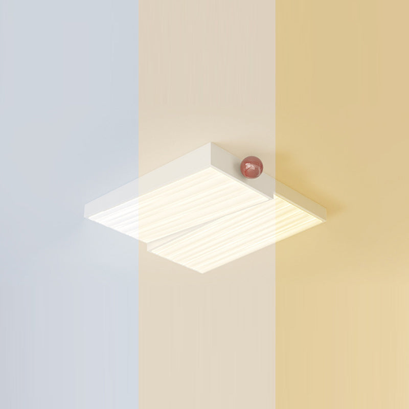 Contemporary Nordic Iron PVC Round Square Wave Texture Ball LED Flush Mount Ceiling Light For Bedroom
