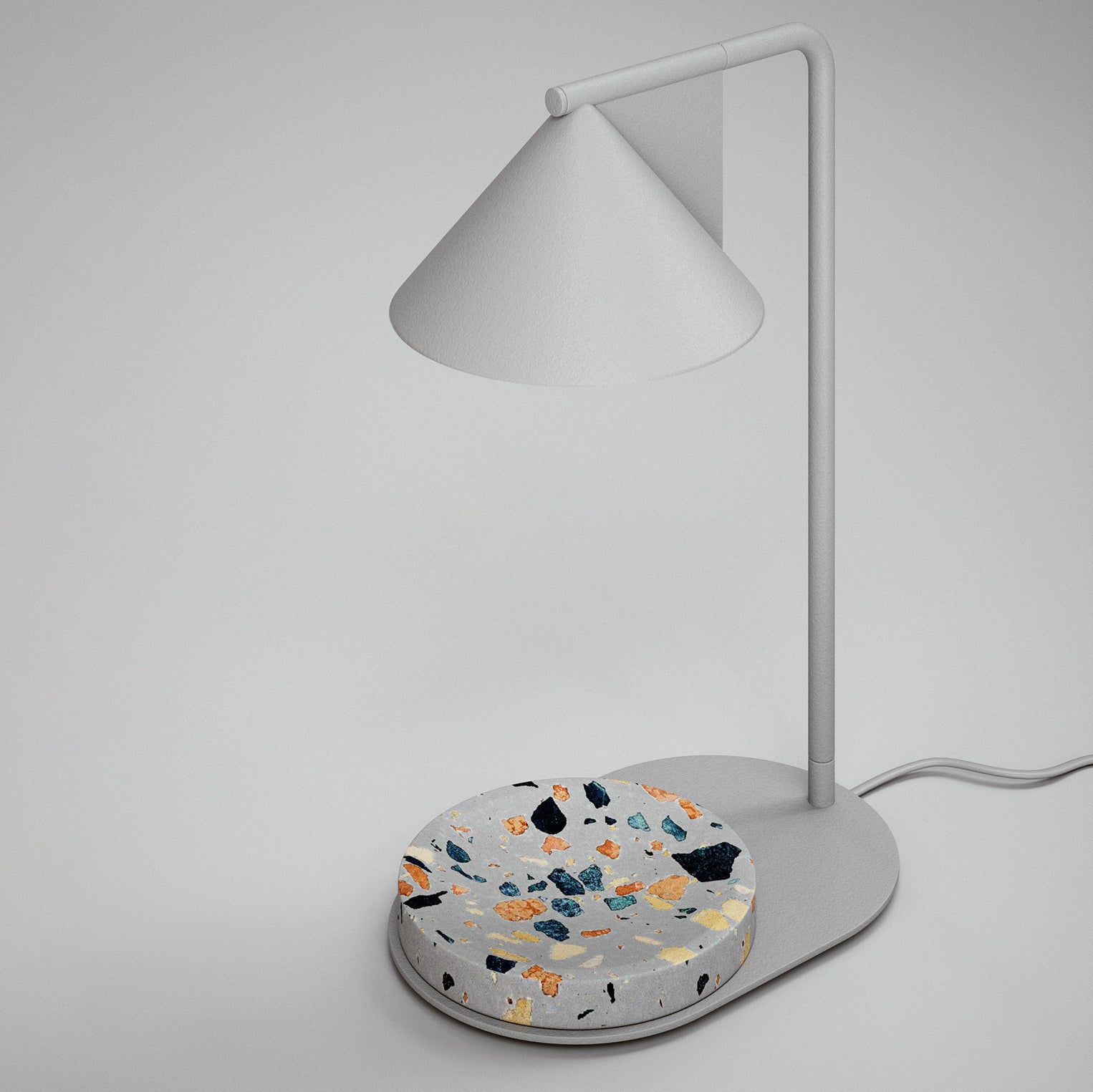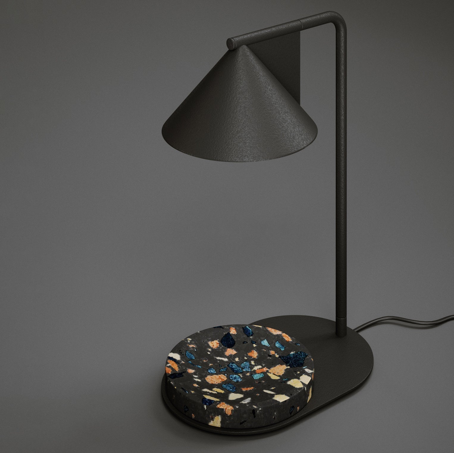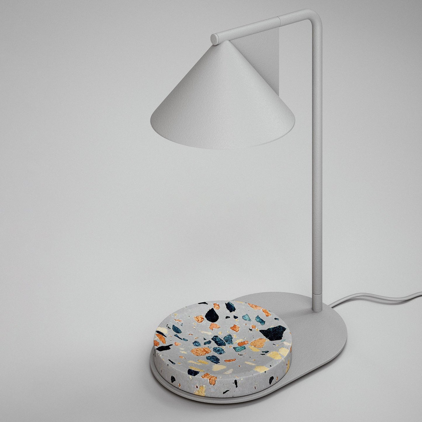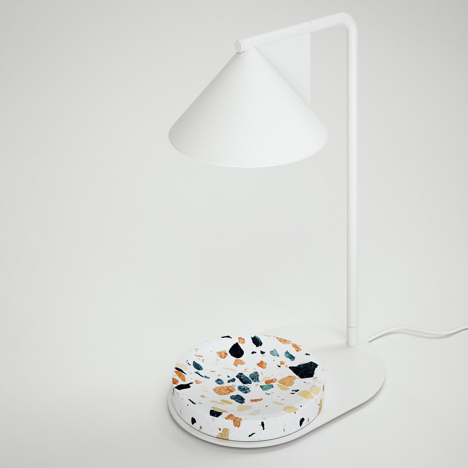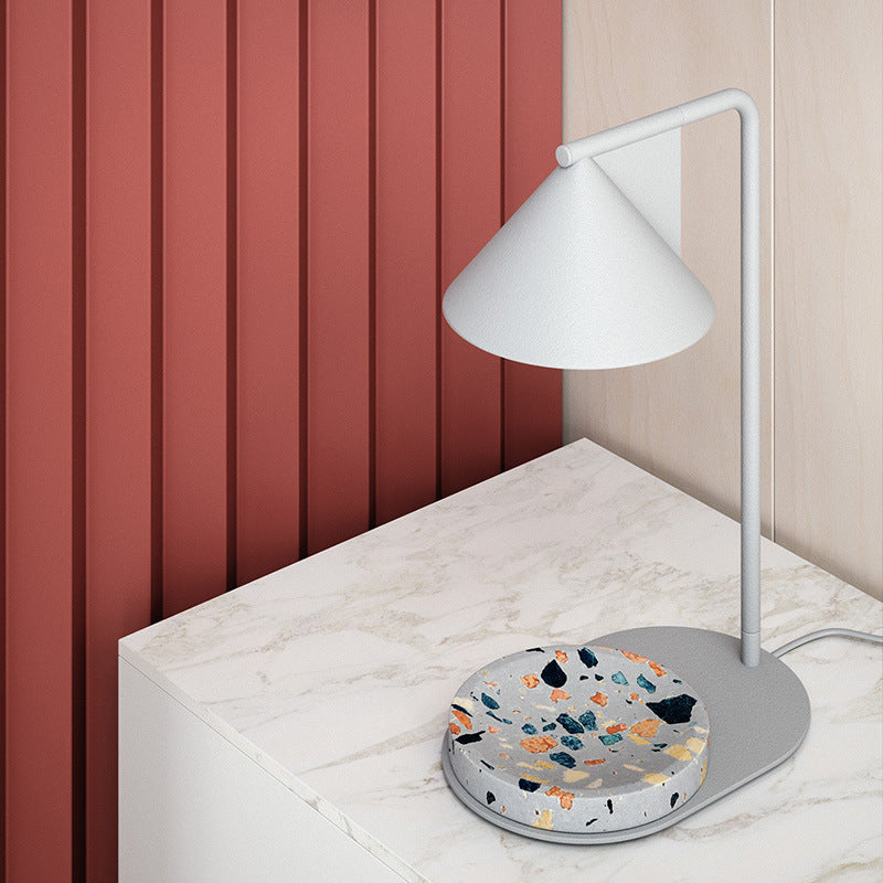 Contemporary Nordic Iron Tapered Shade Terrazzo 1-Light Melting Wax Table Lamp For Living Room