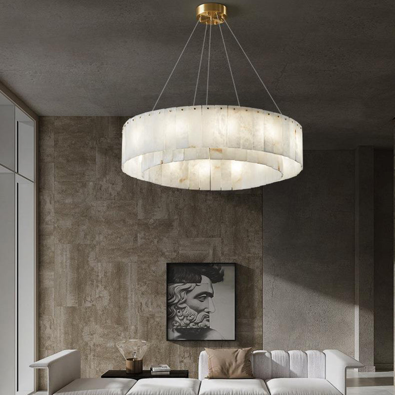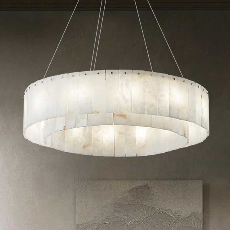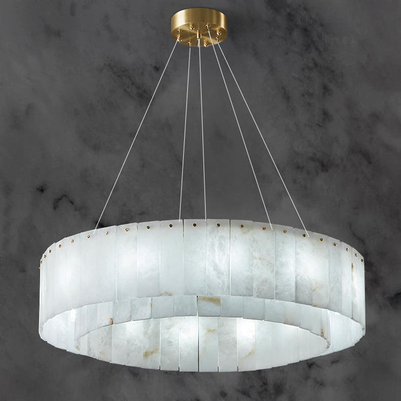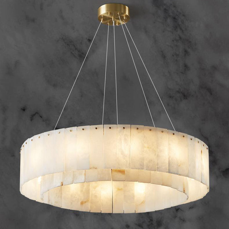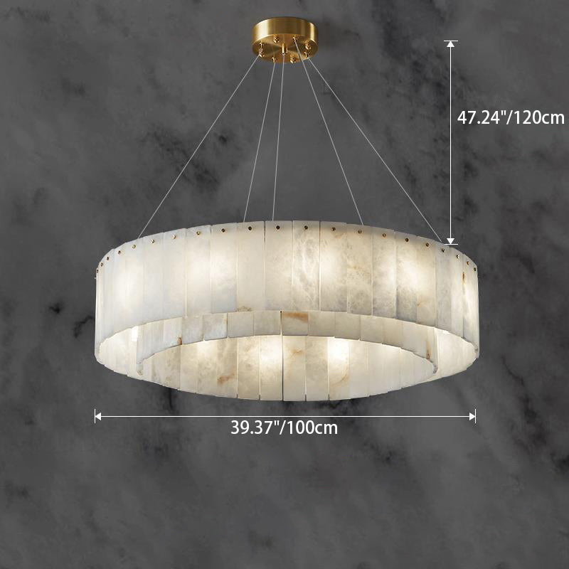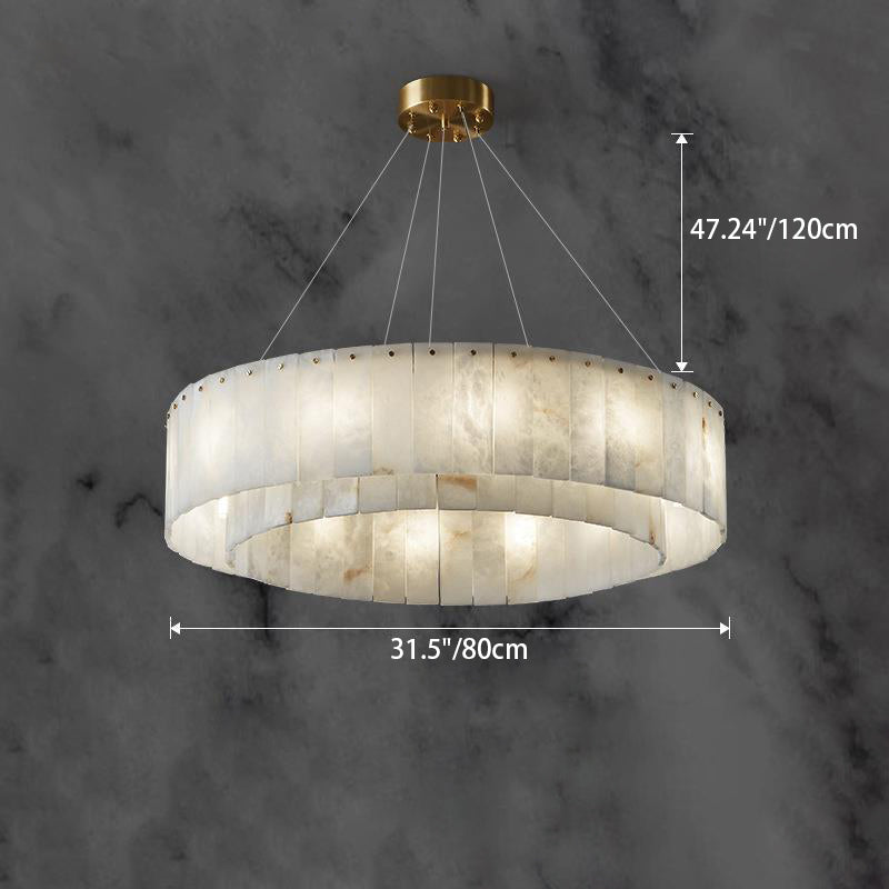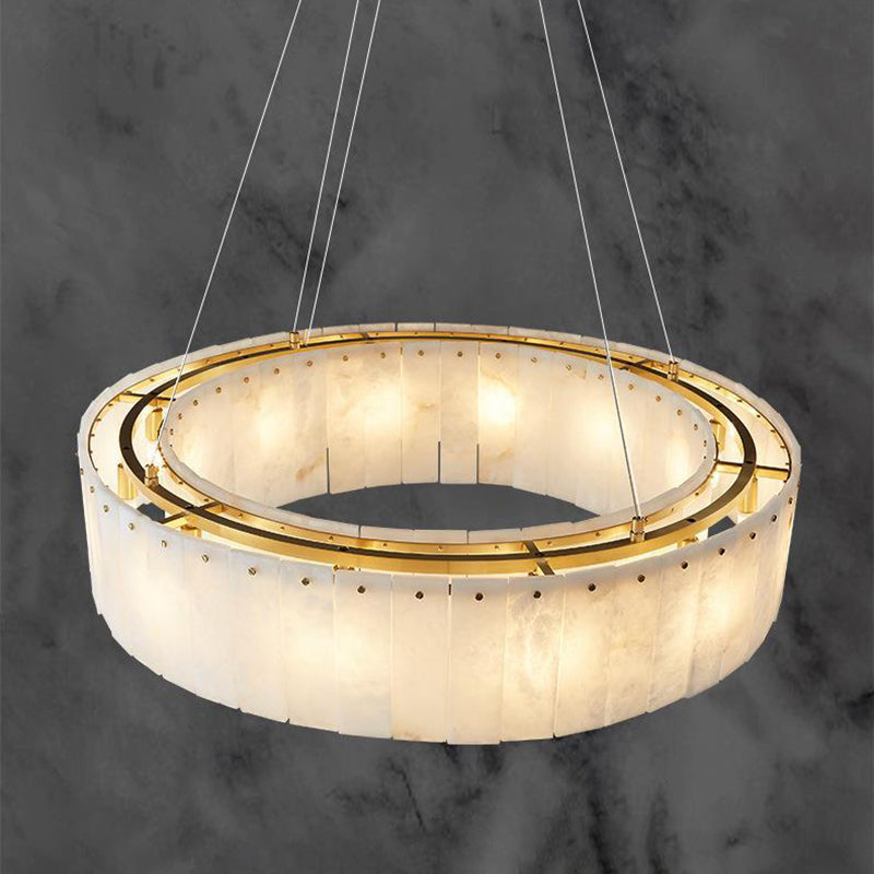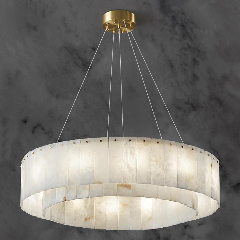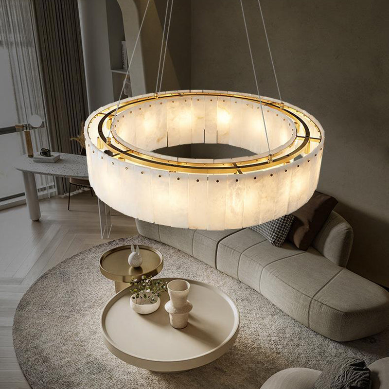 Contemporary Nordic Marble Copper Round 8/12/14 Light Chandeliers For Living Room