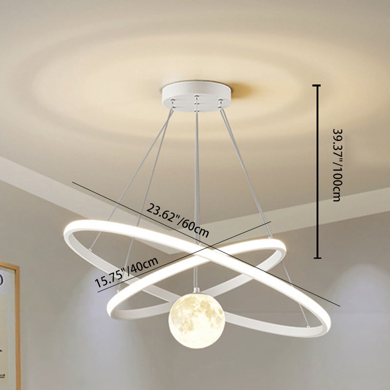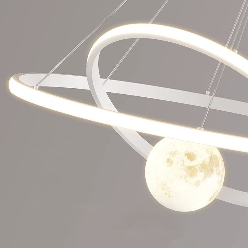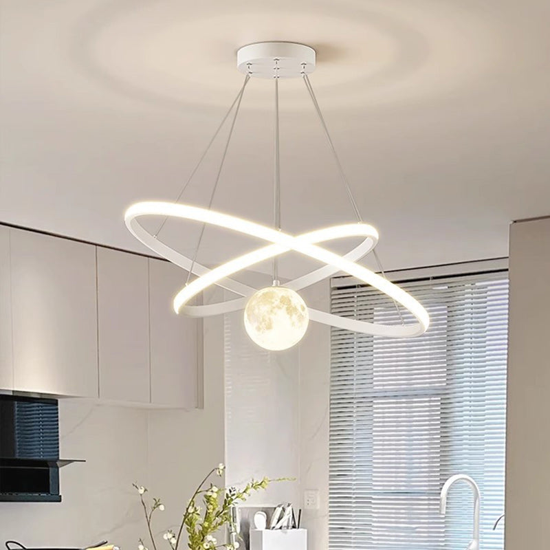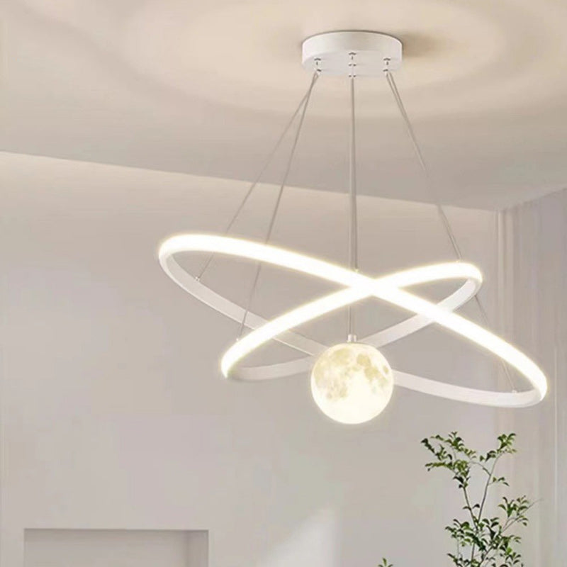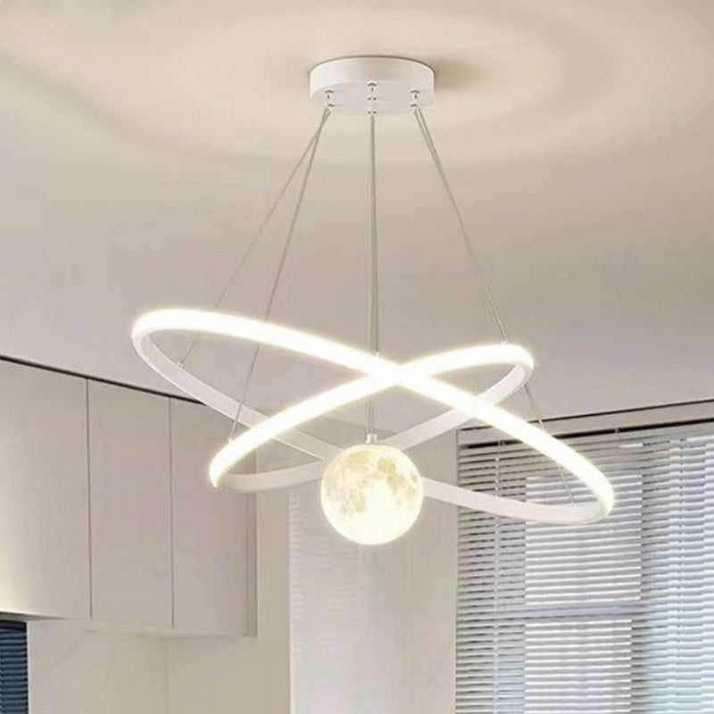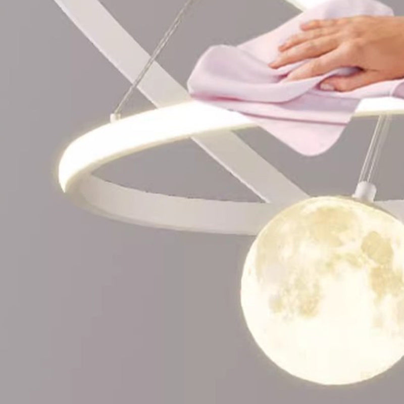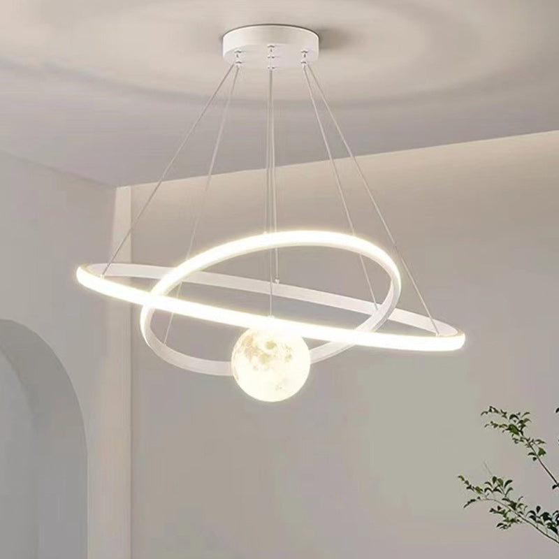 Contemporary Nordic Moon Circle PVC Iron LED Chandelier For Bedroom
