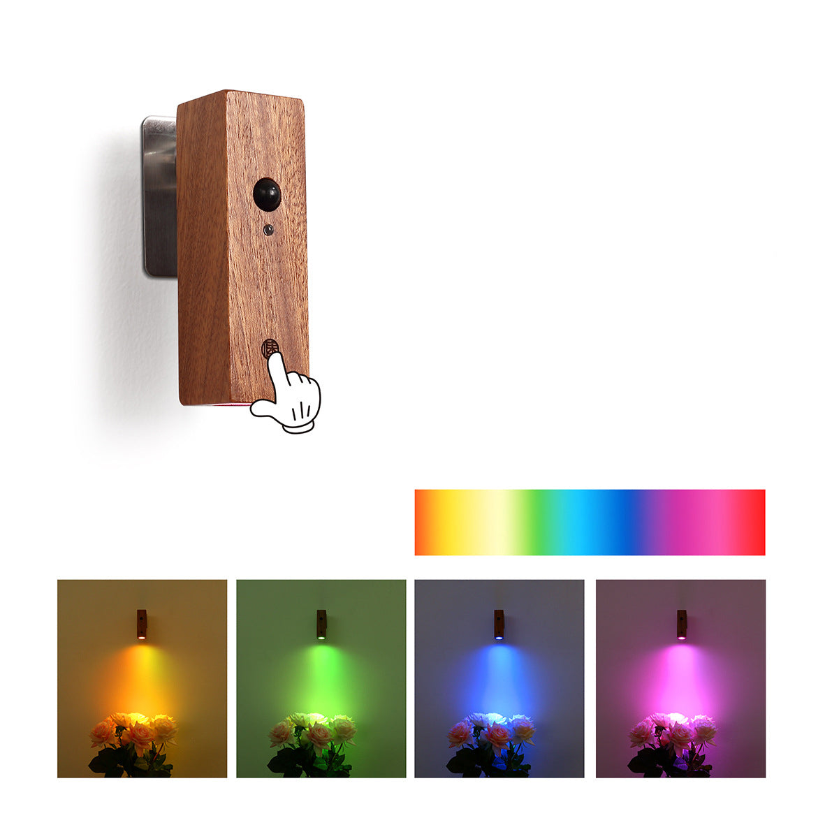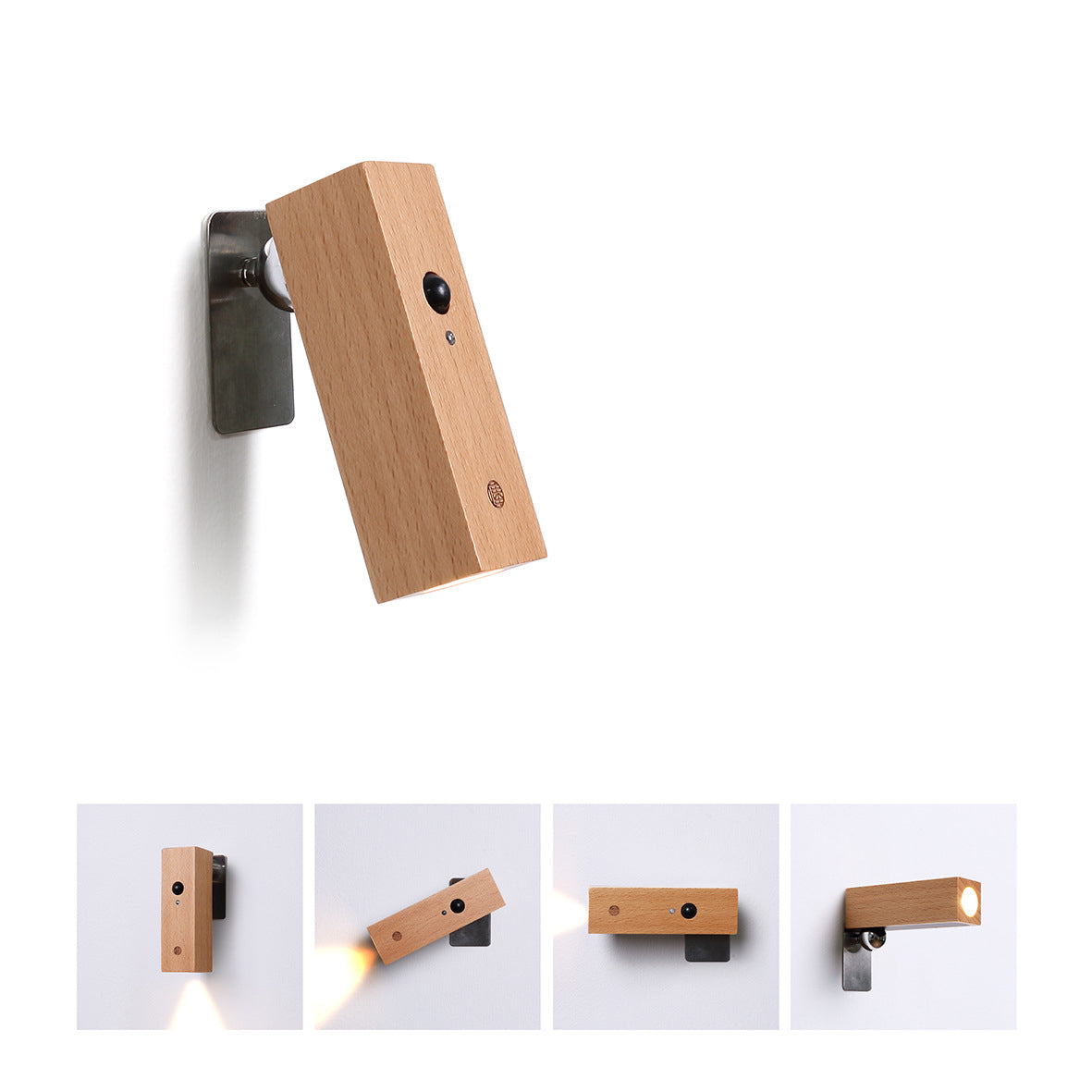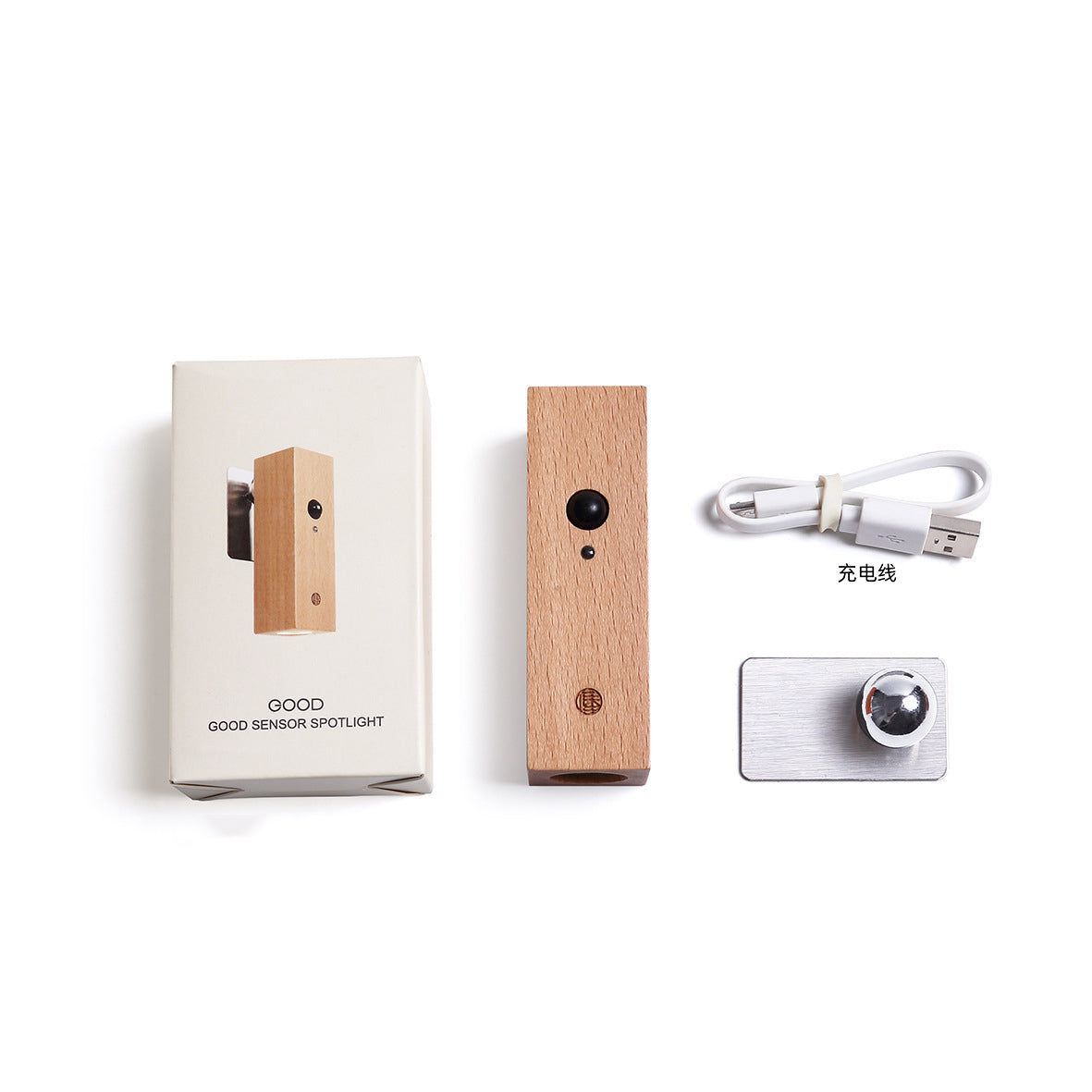 Contemporary Nordic Rechargeable Rotatable Motion Sensor Solid Wood Acrylic Cylinder LED Wall Sconce Lamp Spotlight For Bedroom & Hallway