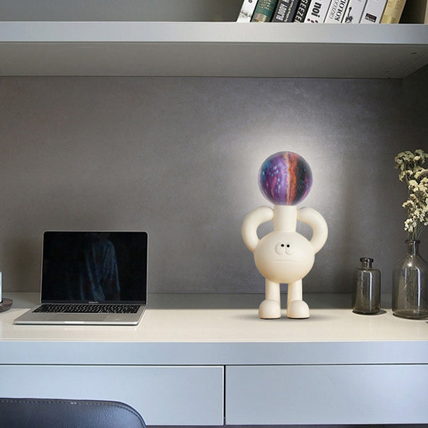 Contemporary Nordic Resin Glass Ball Cartoon Character 1-Light Table Lamp For Bedside