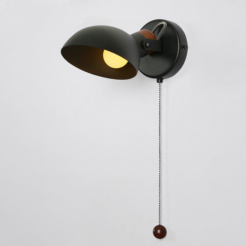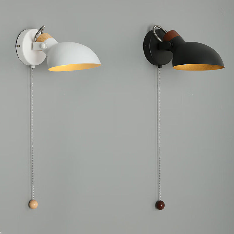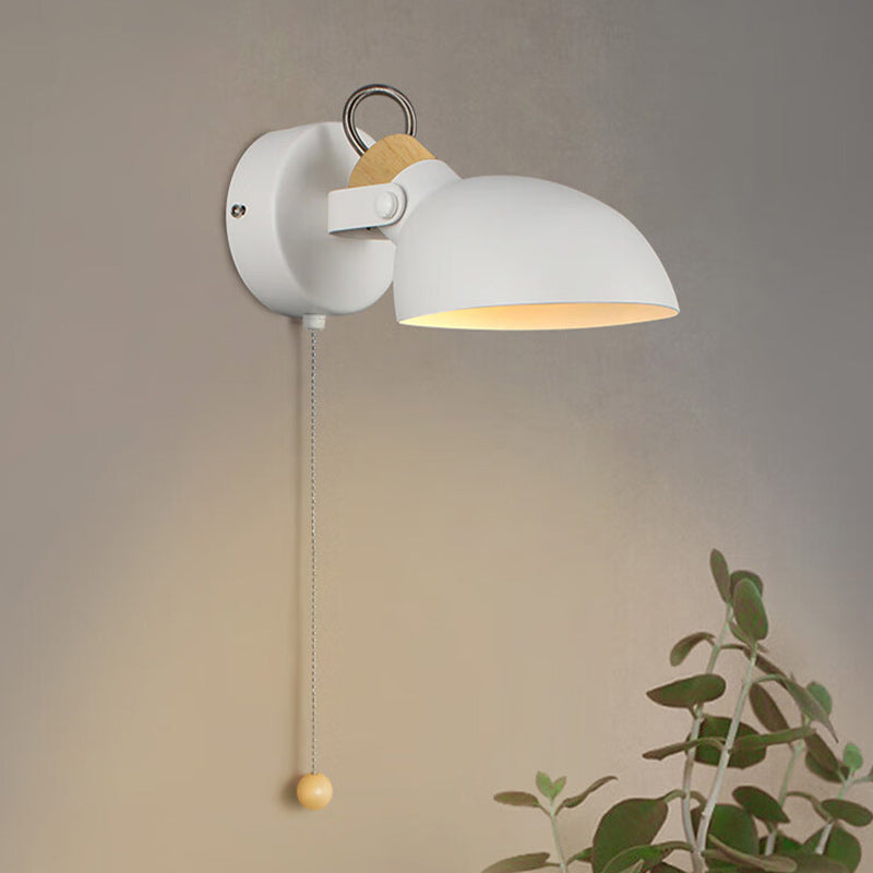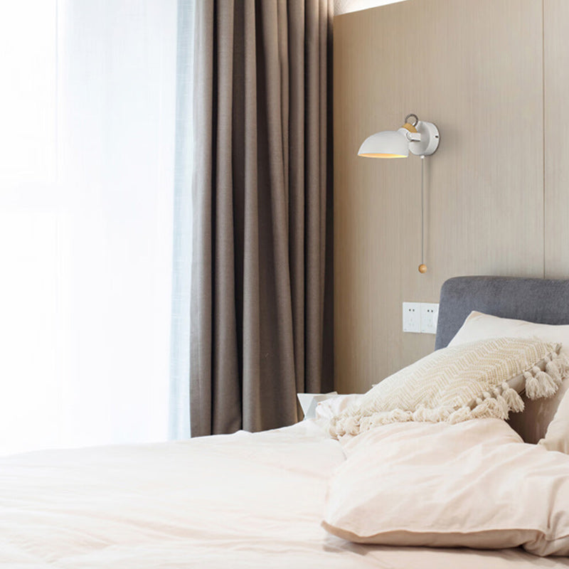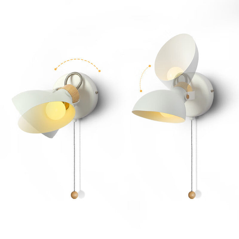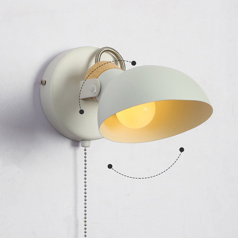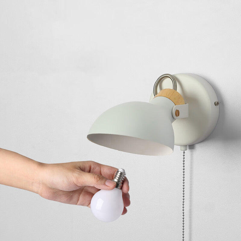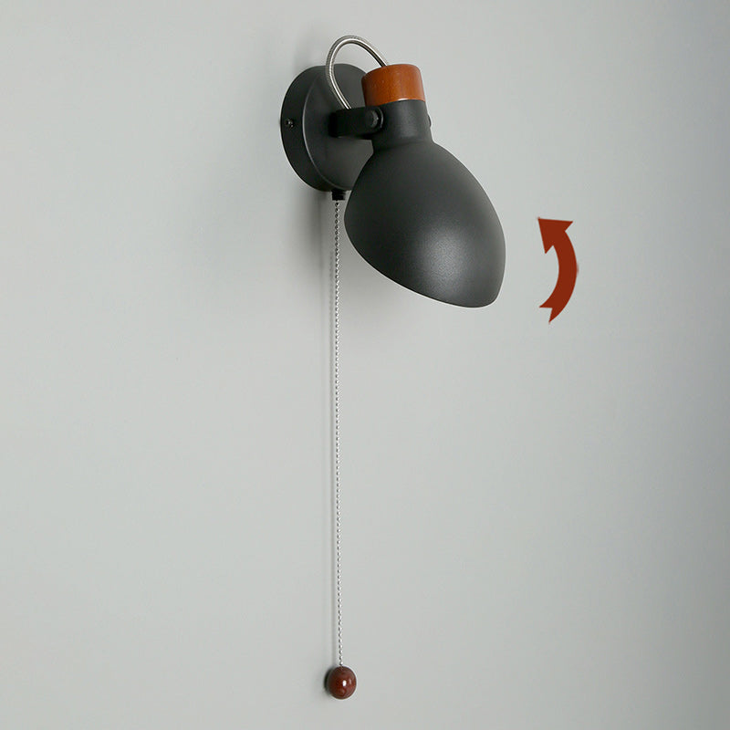 Contemporary Nordic Rotatable Metal Wood Round Pull-wire Switch 1-Light Wall Sconce Lamp For Bedside