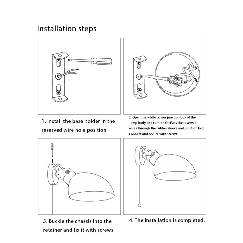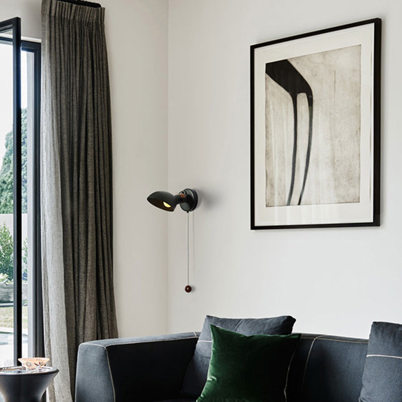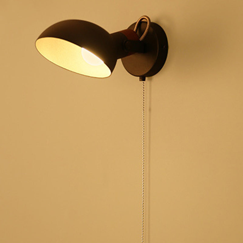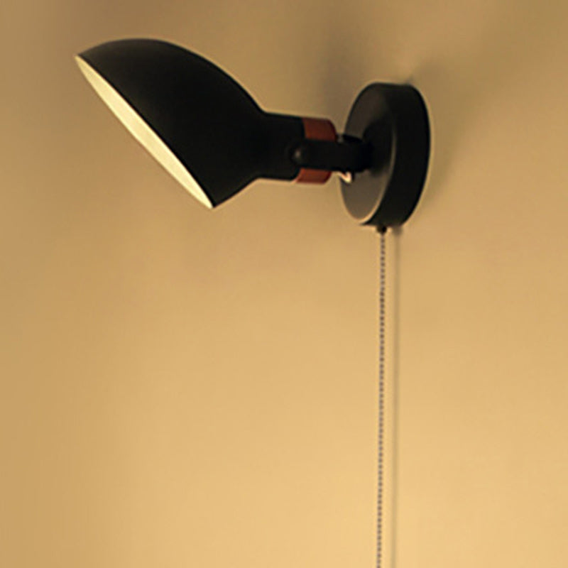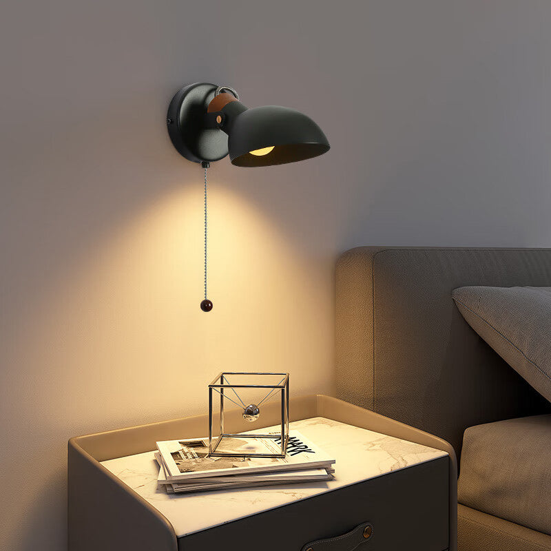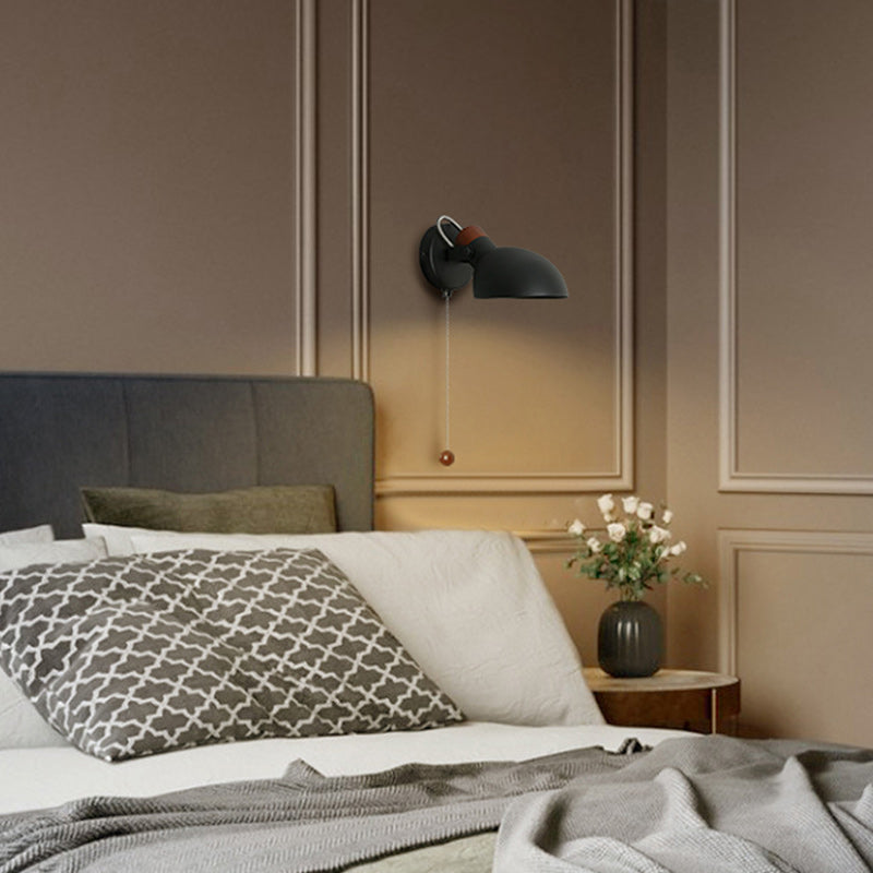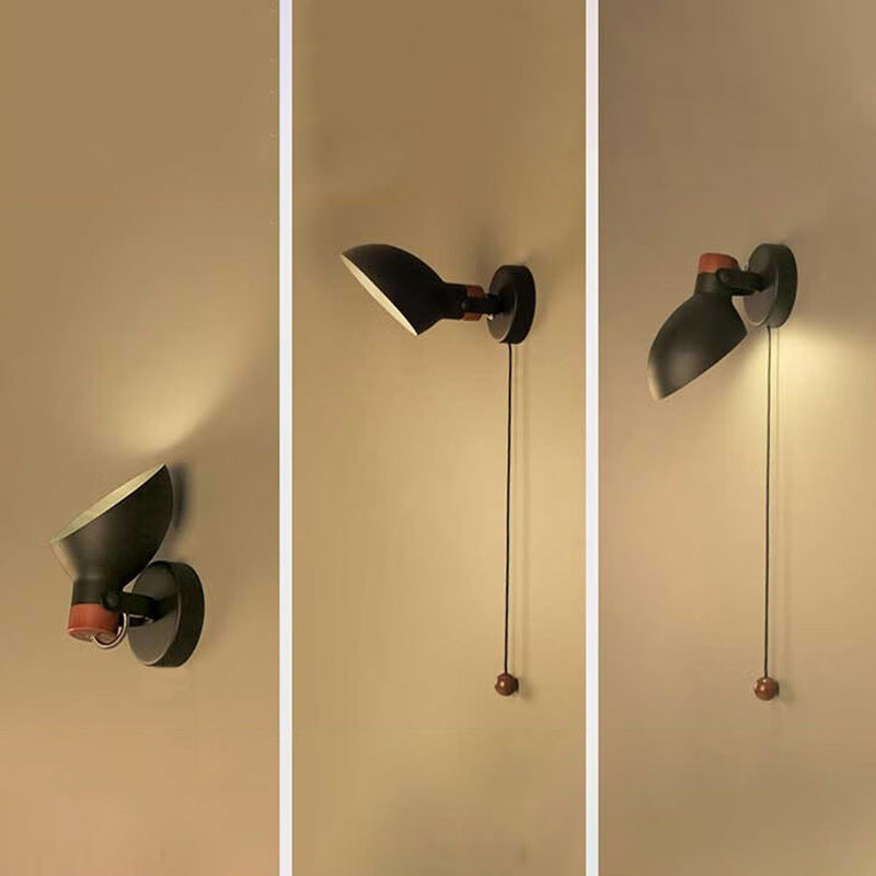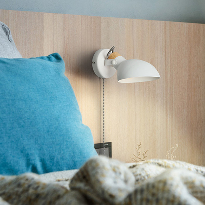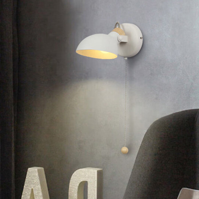 Contemporary Nordic Rotatable Metal Wood Round Pull-wire Switch 1-Light Wall Sconce Lamp For Bedside