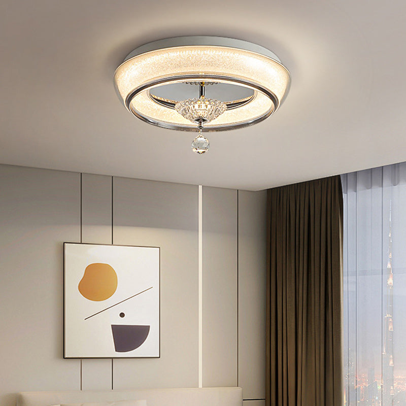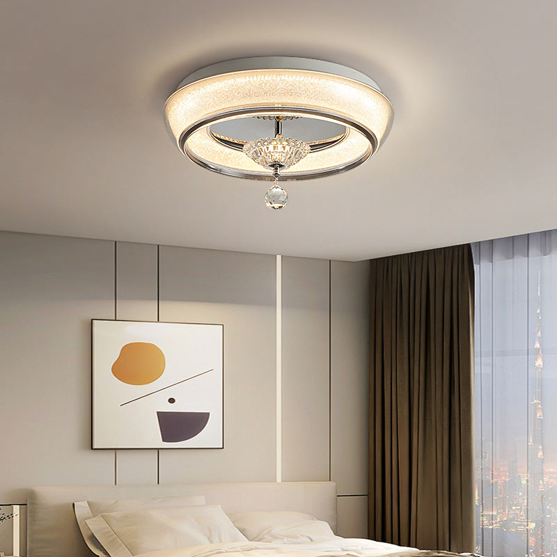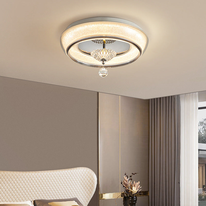 Contemporary Nordic Round Acrylic Lampshade Crystal Hardware LED Flush Mount Ceiling Light For Bedroom