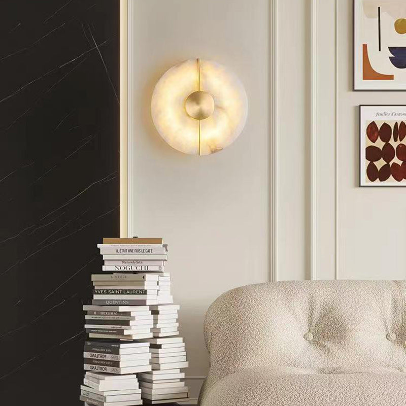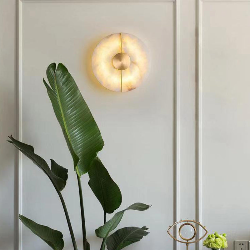 Contemporary Nordic Round Copper Marble LED Wall Sconce Lamp For Bedroom