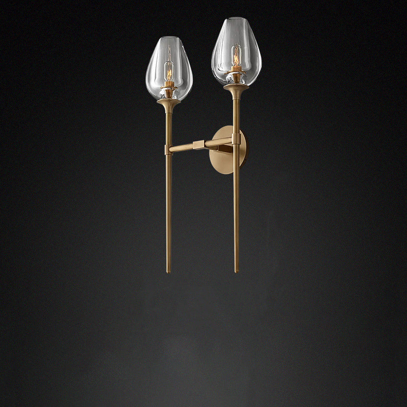 Contemporary Nordic Round Cylinder Cup Shape Copper Frame Crystal Shade 1/2 Light Wall Sconce Lamp For Bedroom
