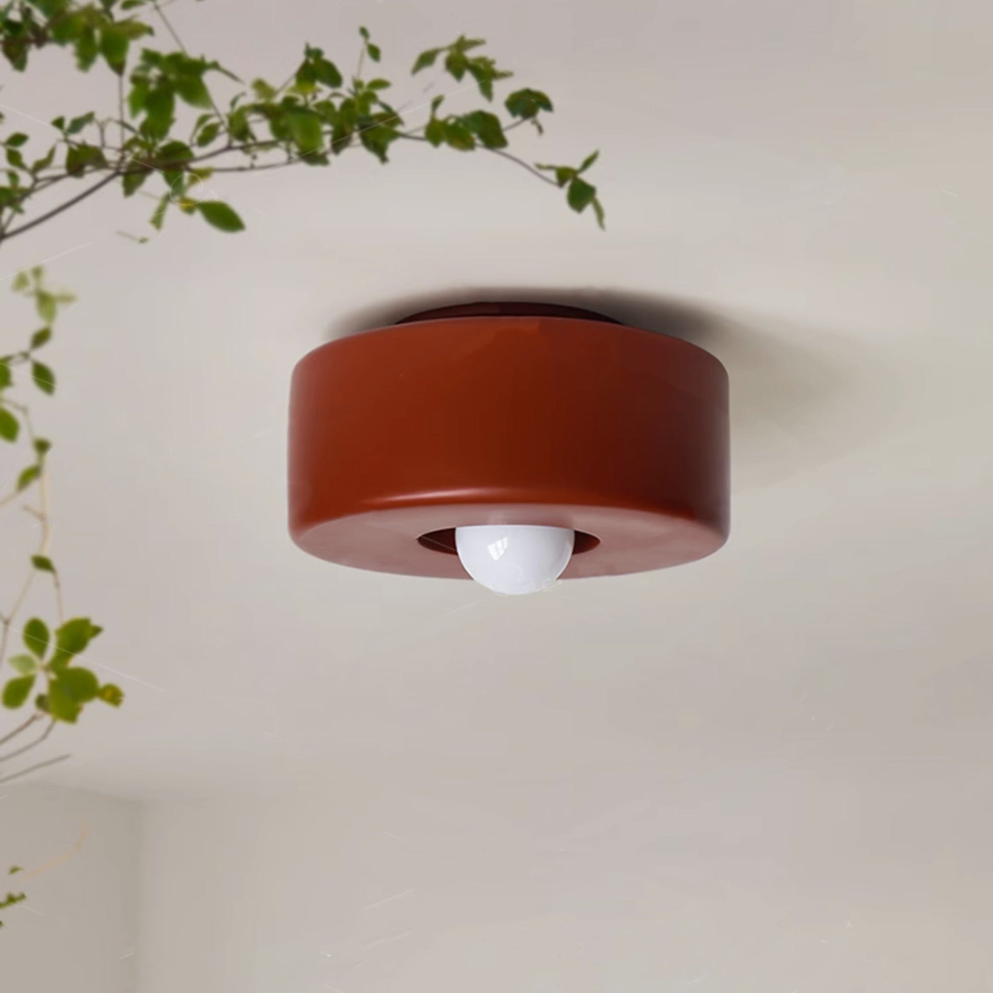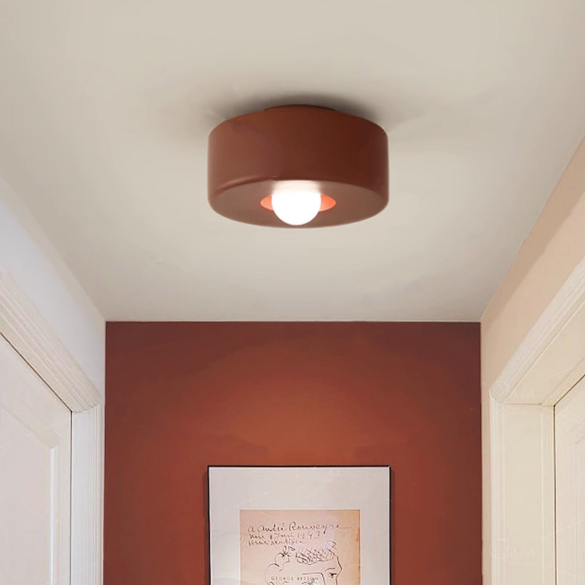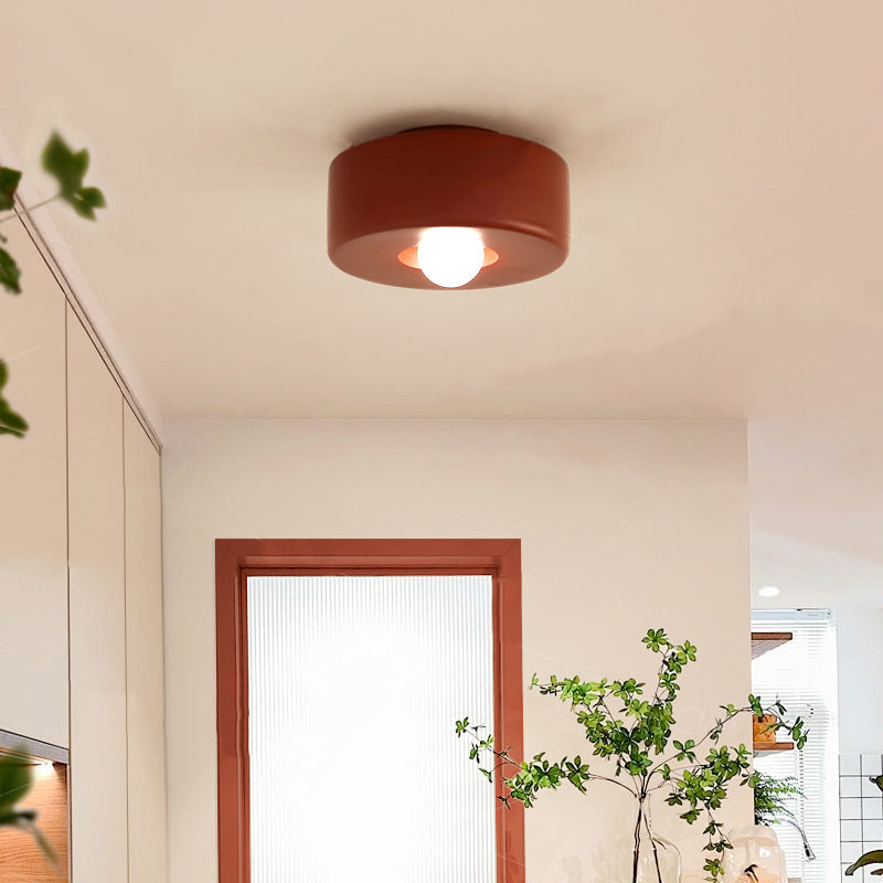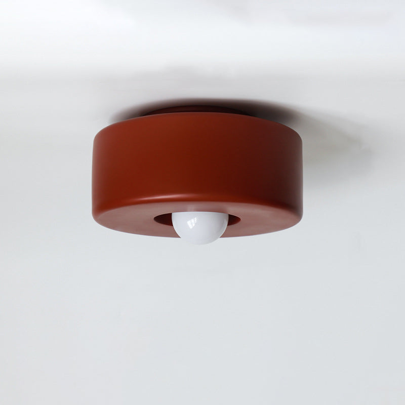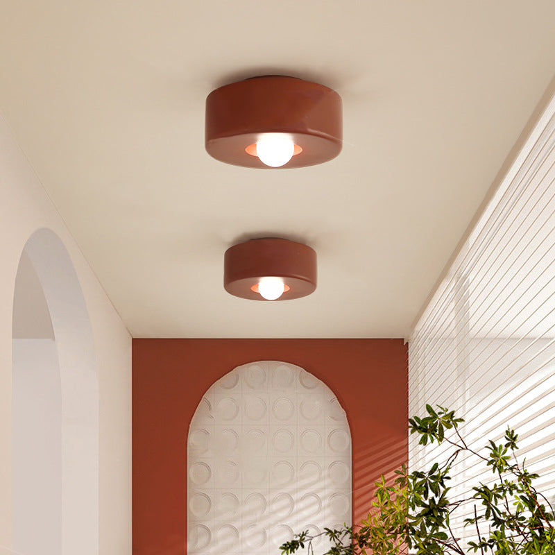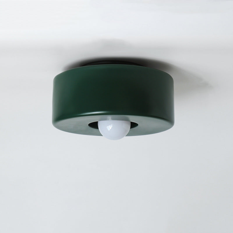 Contemporary Nordic Round Cylinder Hardware Resin 1-Light Semi-Flush Mount Ceiling Light For Hallway