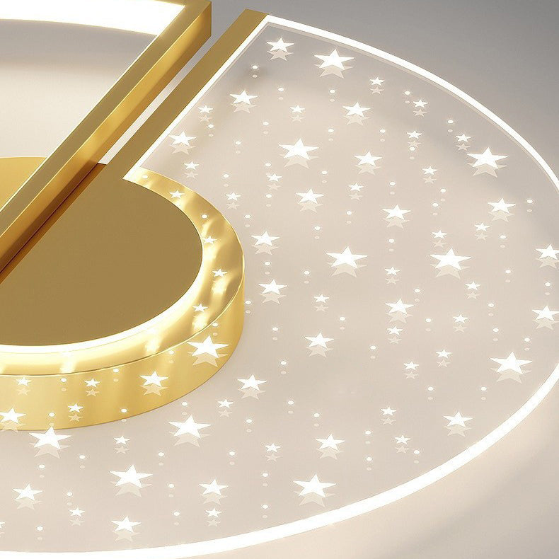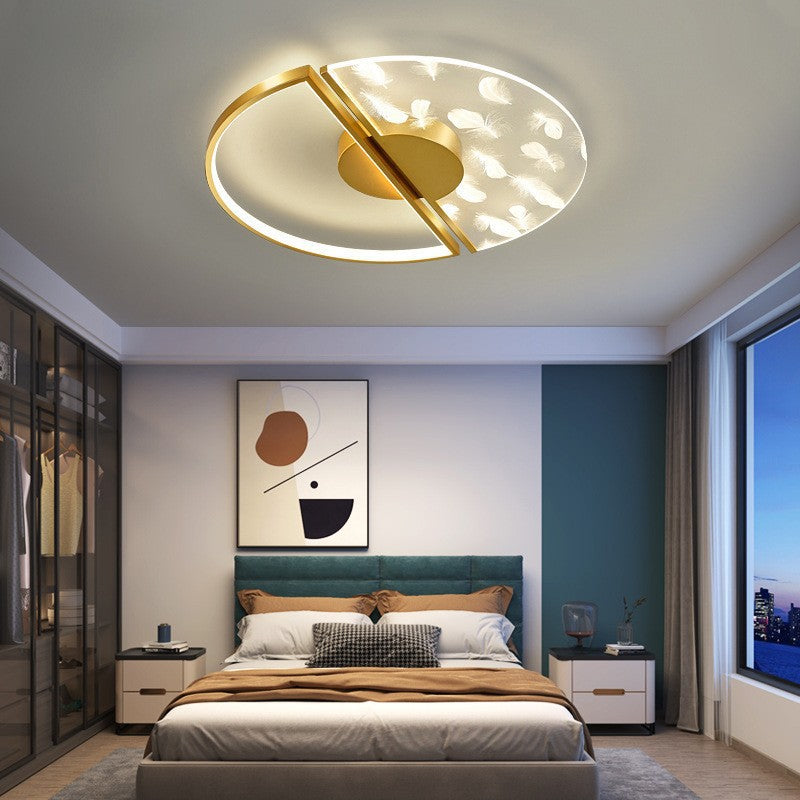 Contemporary Nordic Round Iron Glass LED Semi-Flush Mount Ceiling Light For Bedroom