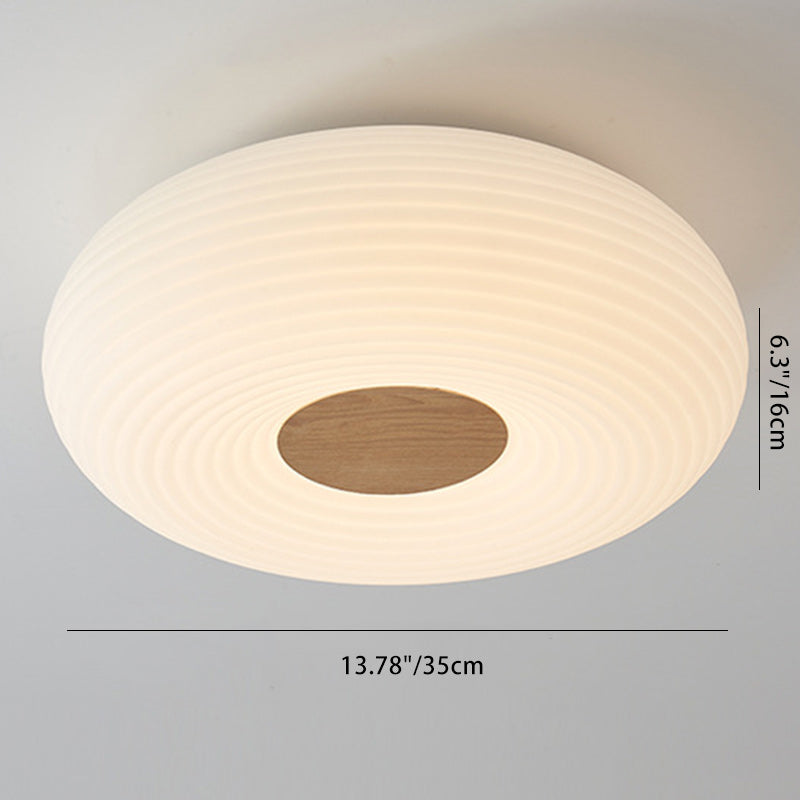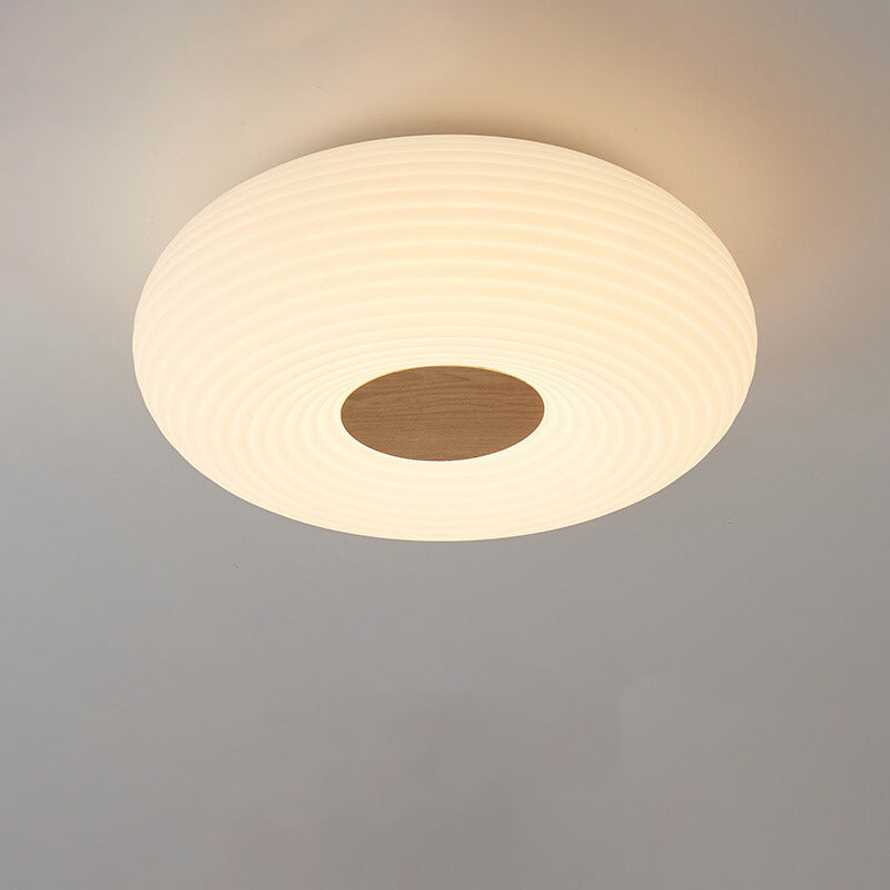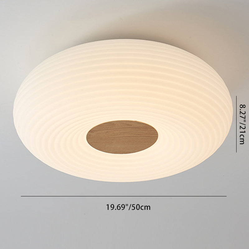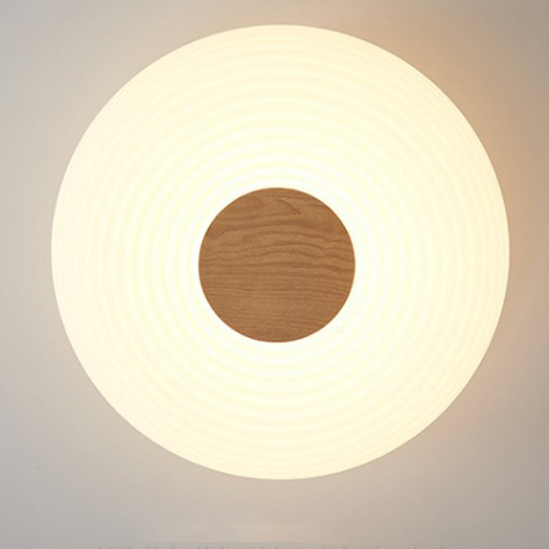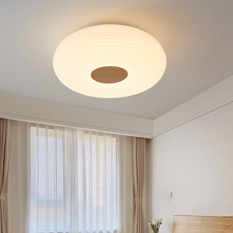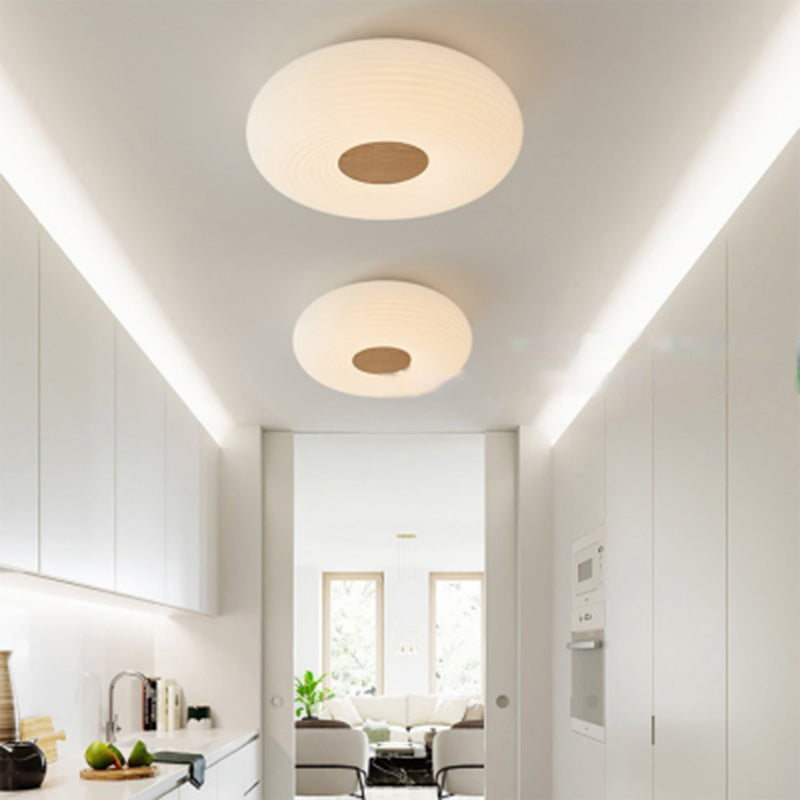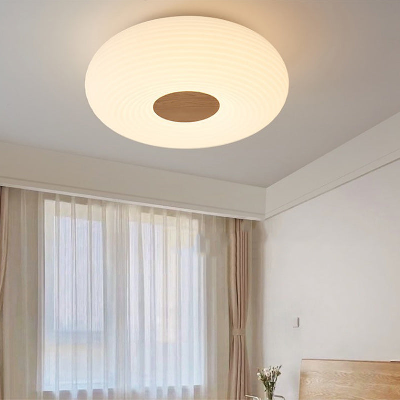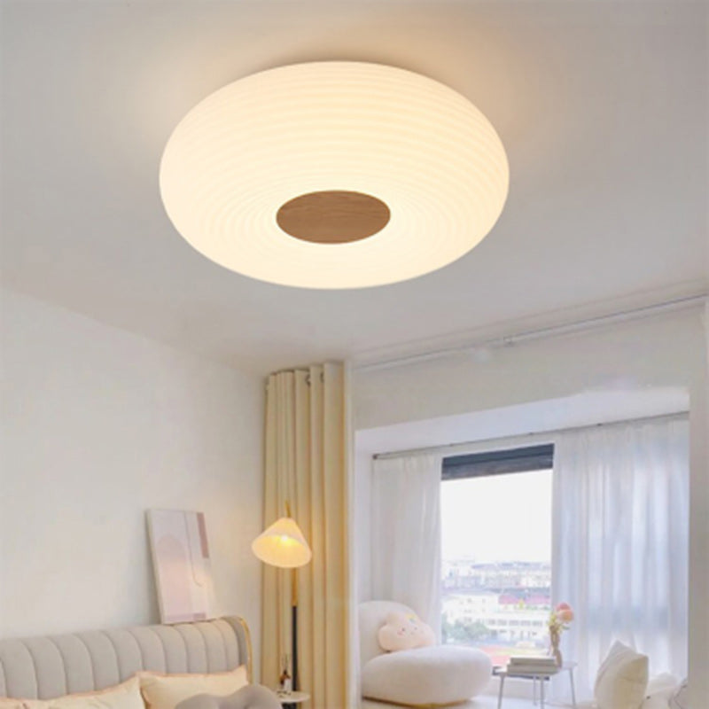 Contemporary Nordic Round Iron Wood Plastic LED Flush Mount Ceiling Light For Living Room