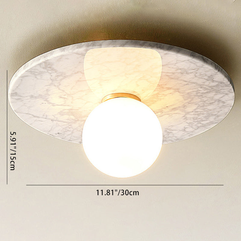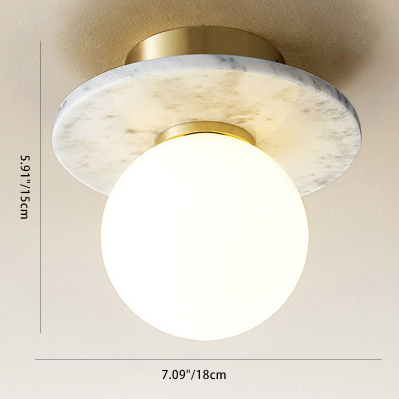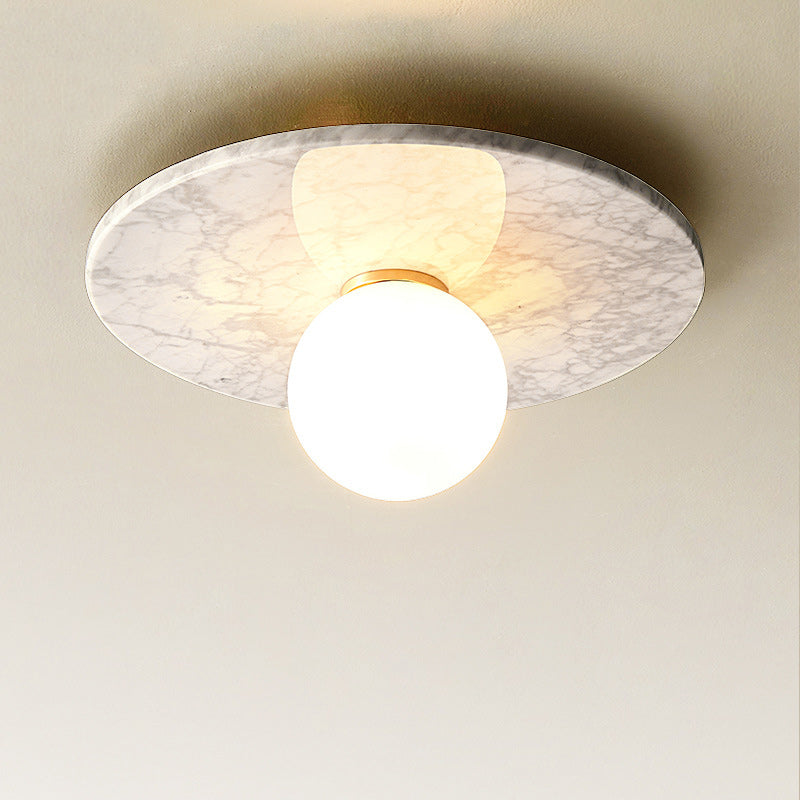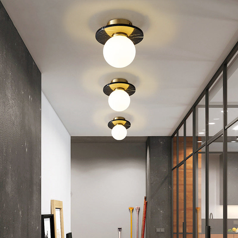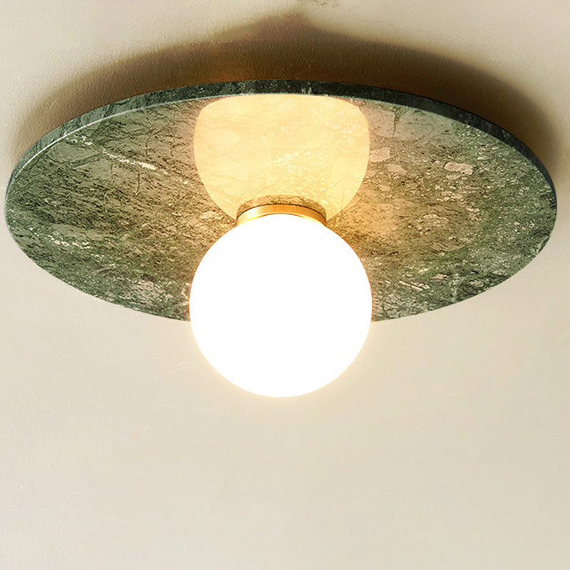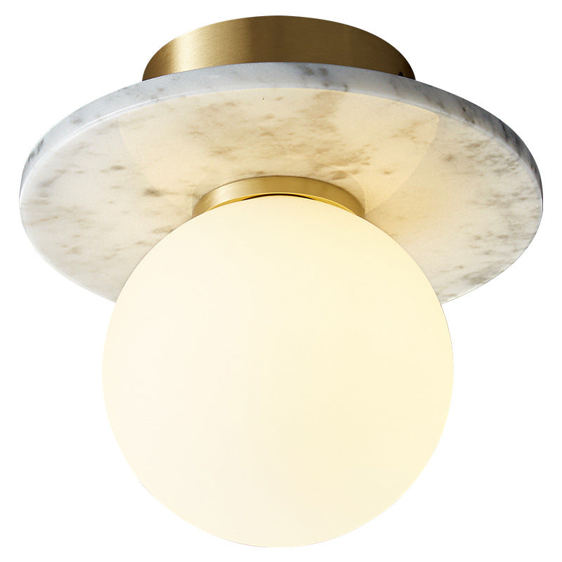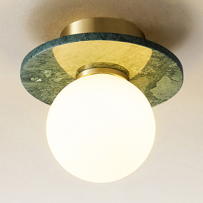 Contemporary Nordic Round Magic Bean Glass Marble Copper 1-Light Semi-Flush Mount Ceiling Light For Bedroom