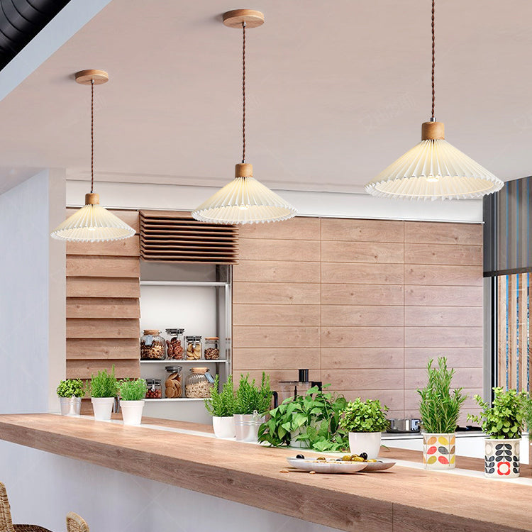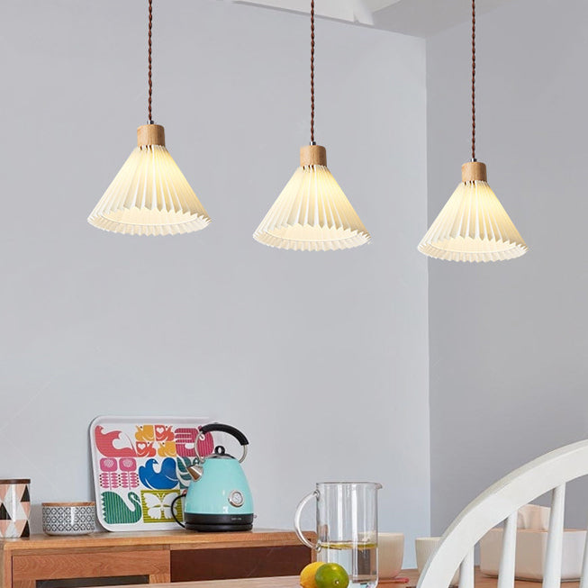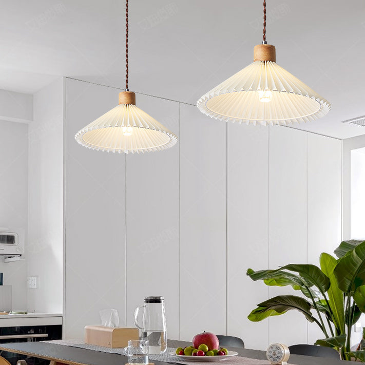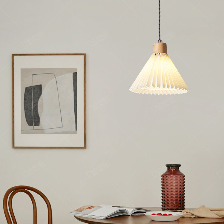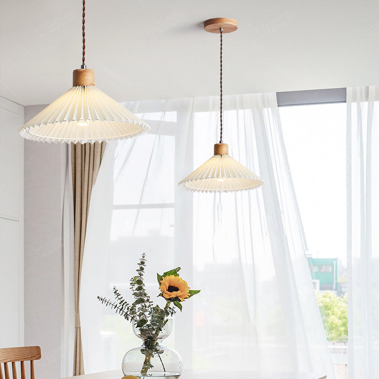 Contemporary Nordic Round Pleated Skirt Shape Fabric Iron 1-Light Pendant Light For Living Room