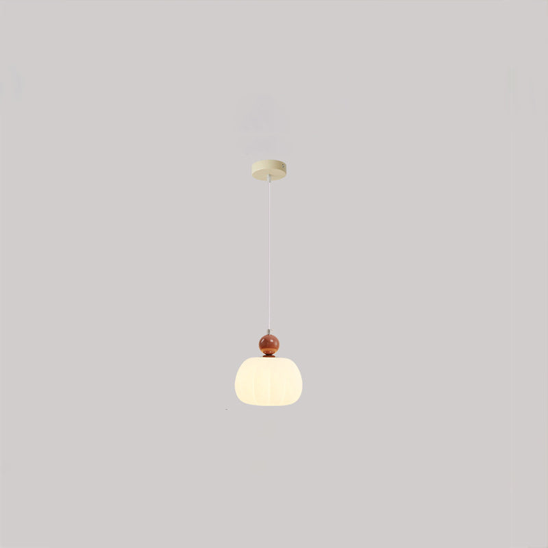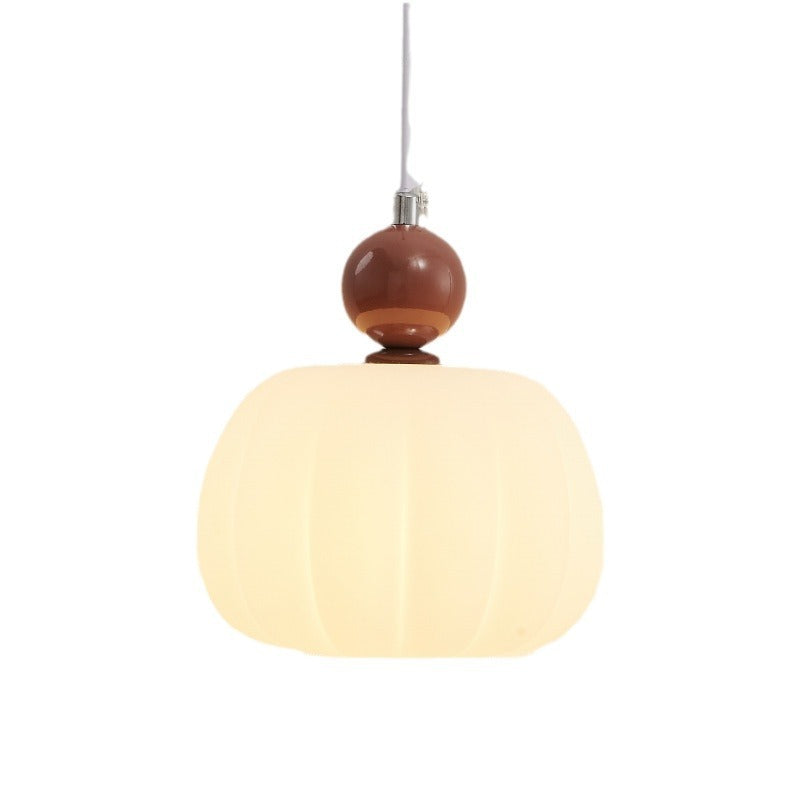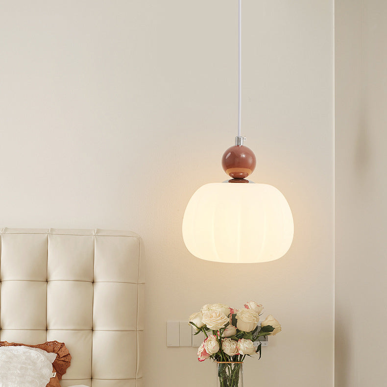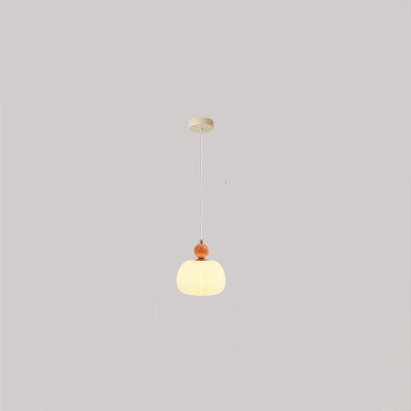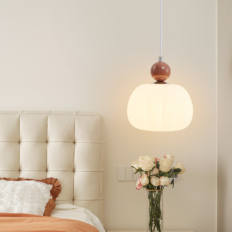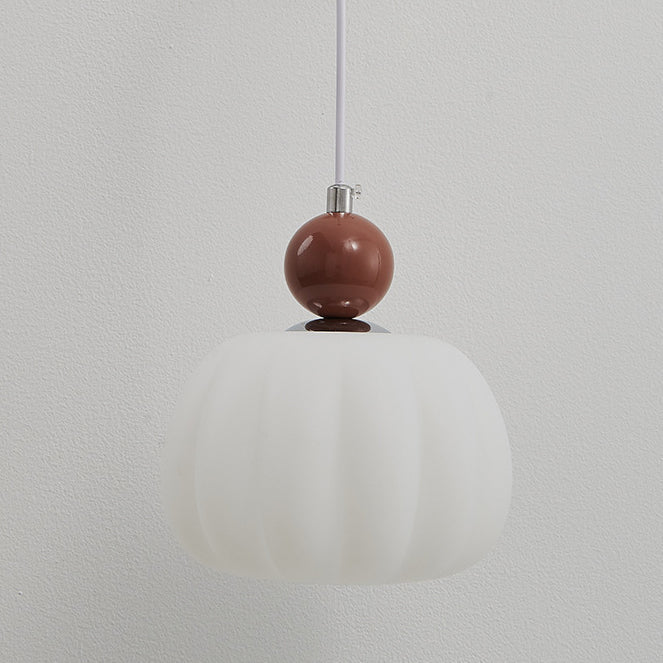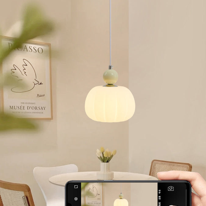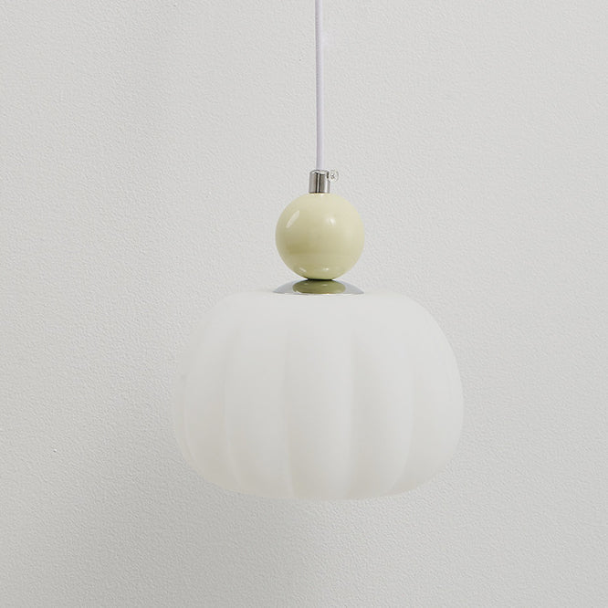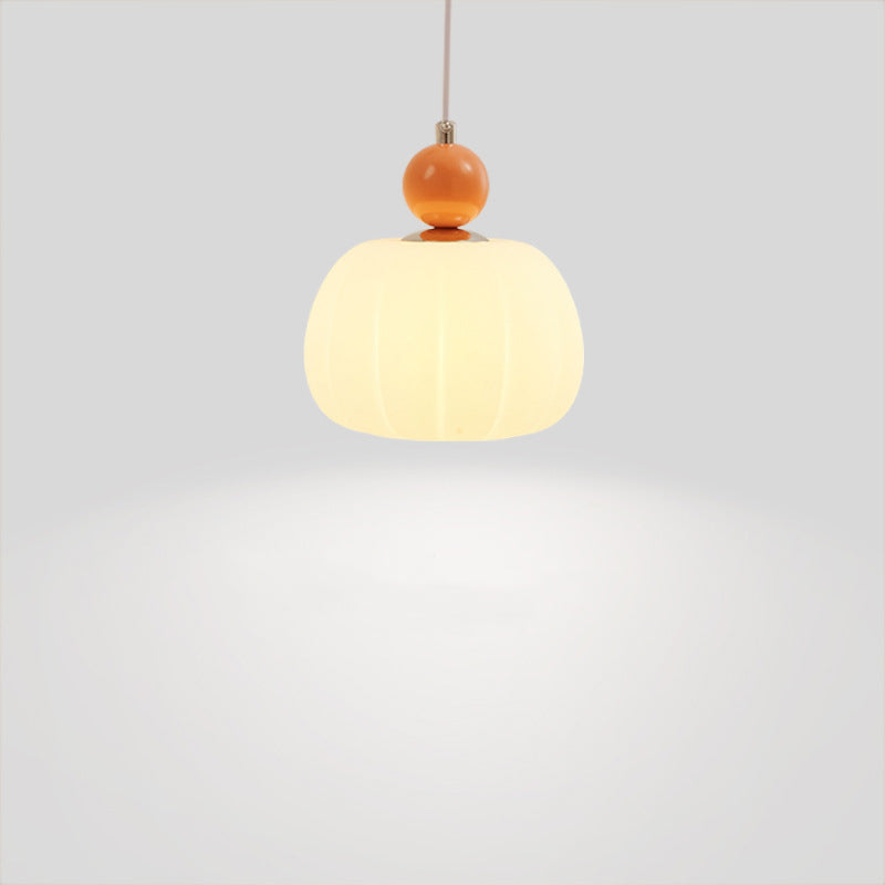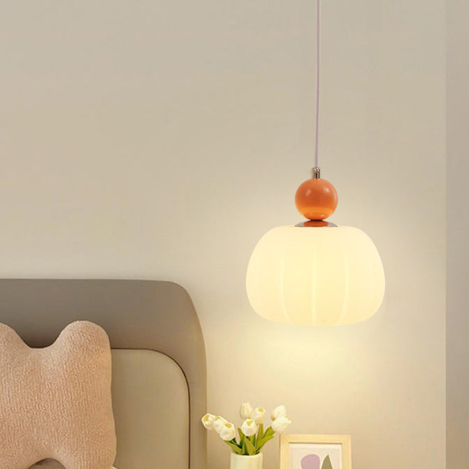 Contemporary Nordic Round Pumpkin Shape Hardware PE 1-Light Pendant Light For Bedroom