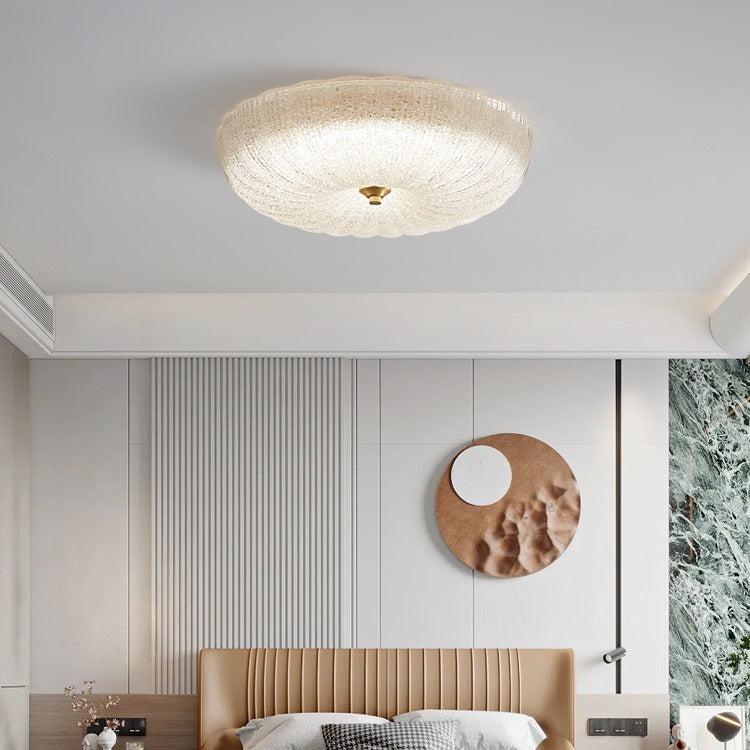 Contemporary Nordic Round Stripe Handmade Glass Copper LED Flush Mount Ceiling Light For Living Room