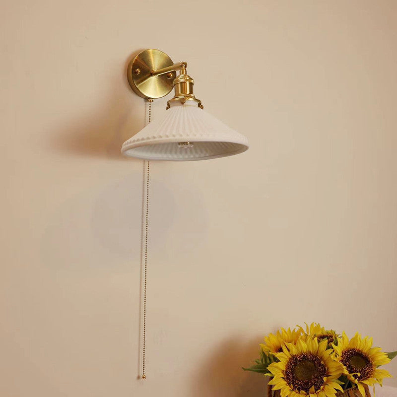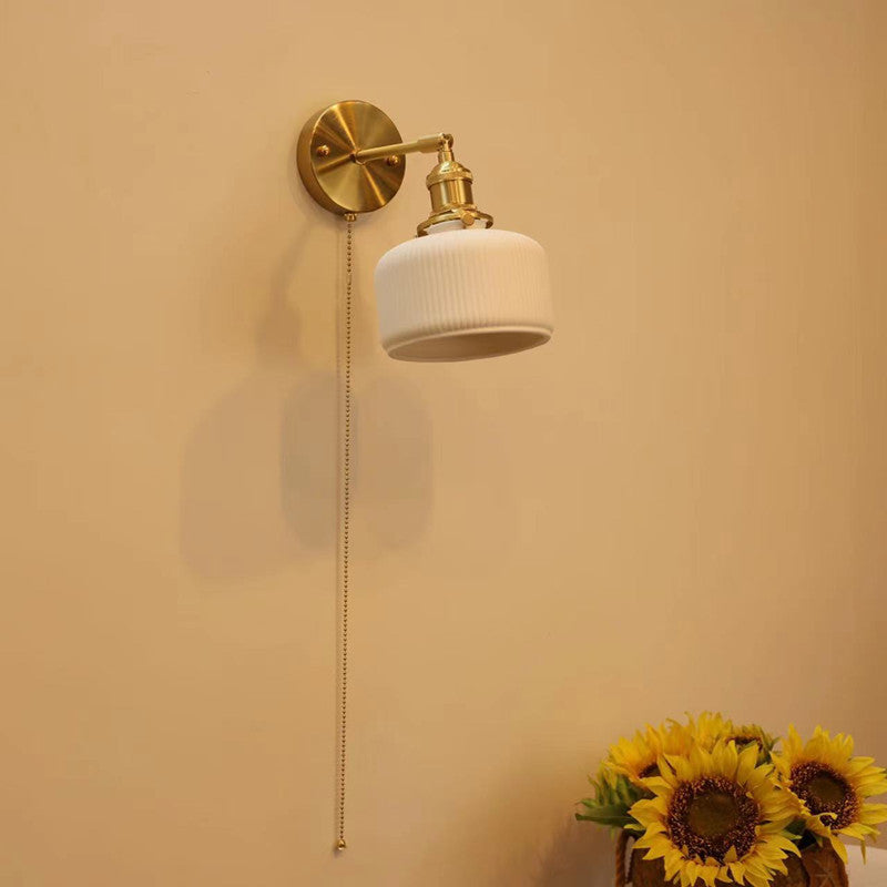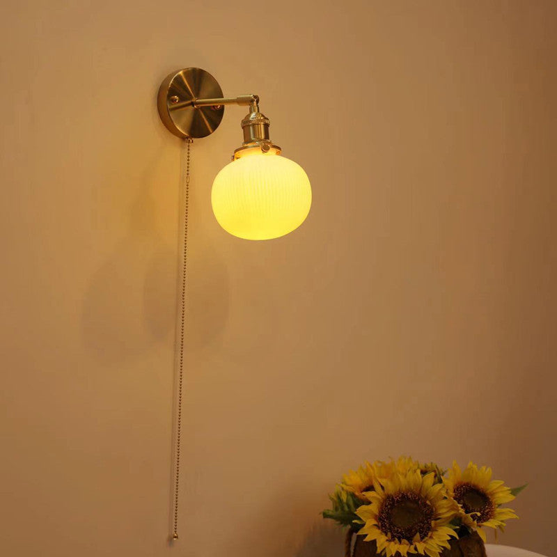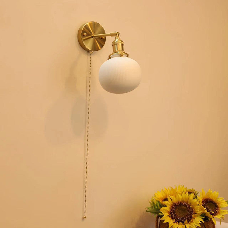 Contemporary Nordic Simplicity Brass Round 1-Light Vanity Light Wall Sconce Lamp For Bedroom