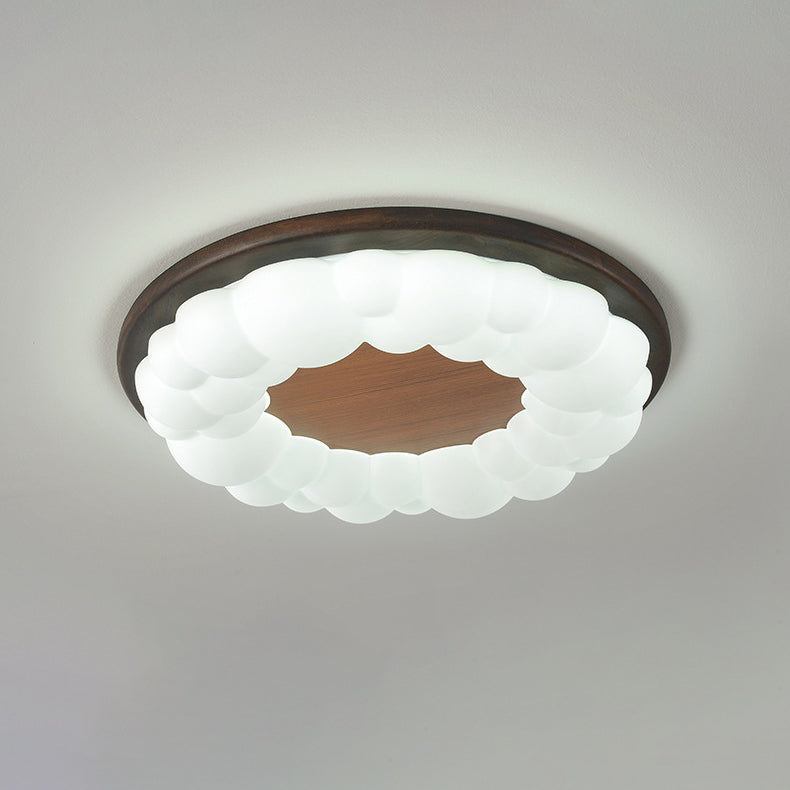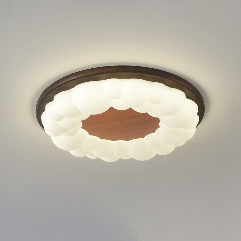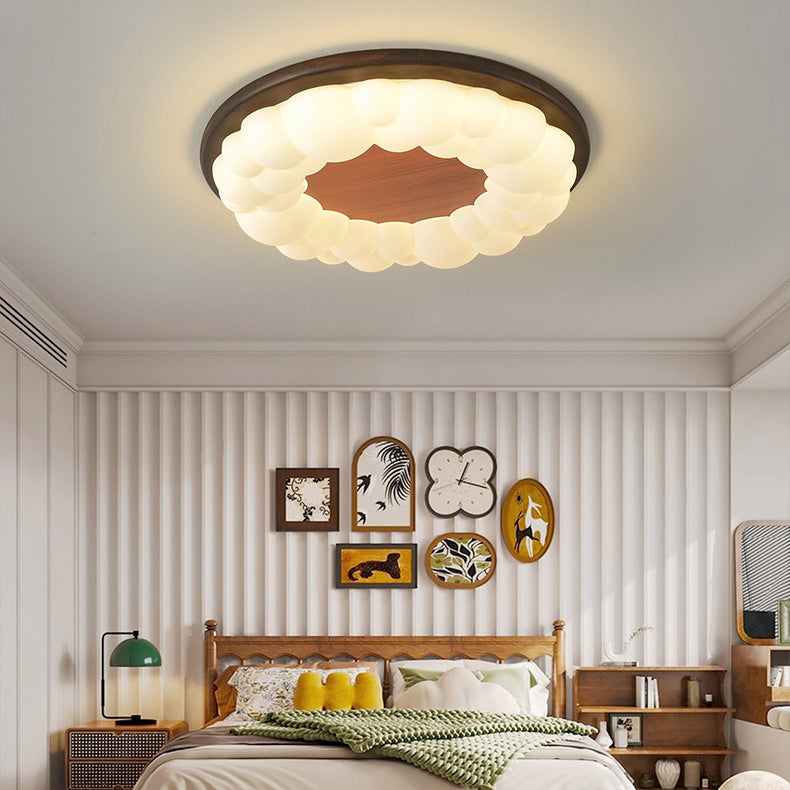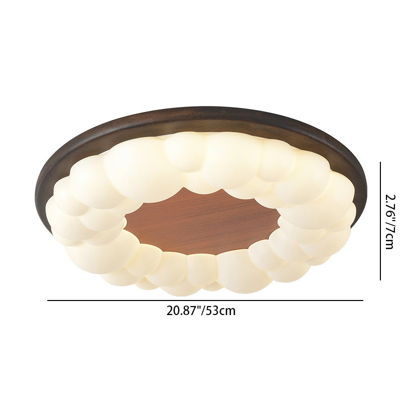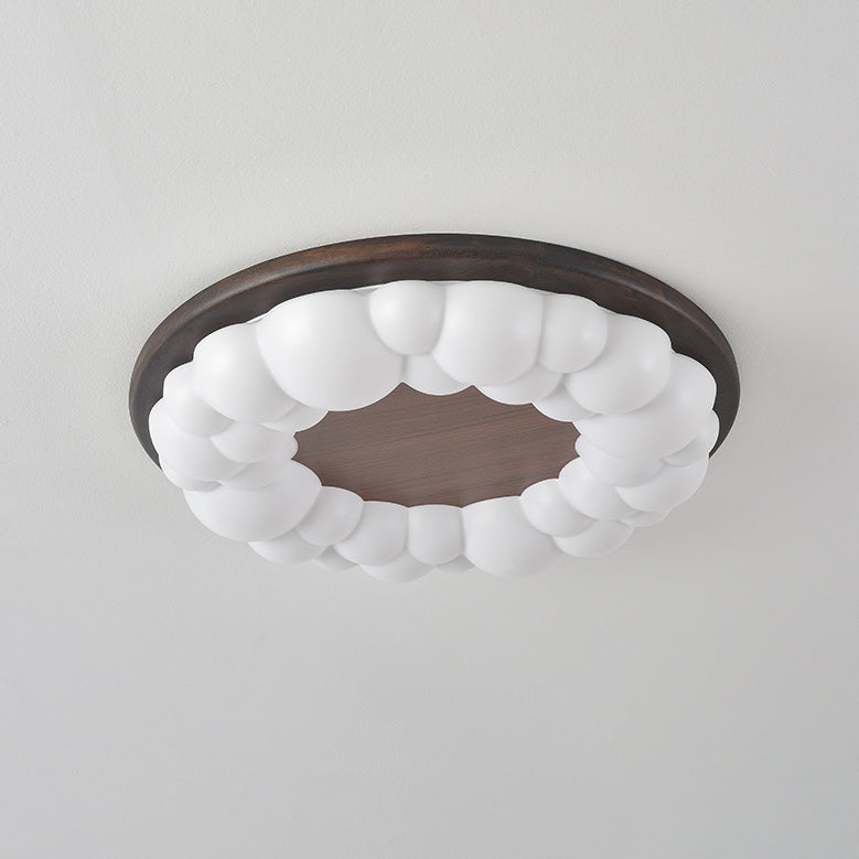 Contemporary Nordic Solid Wood Acrylic Cloud Shade LED Flush Mount Ceiling Light For Bedroom