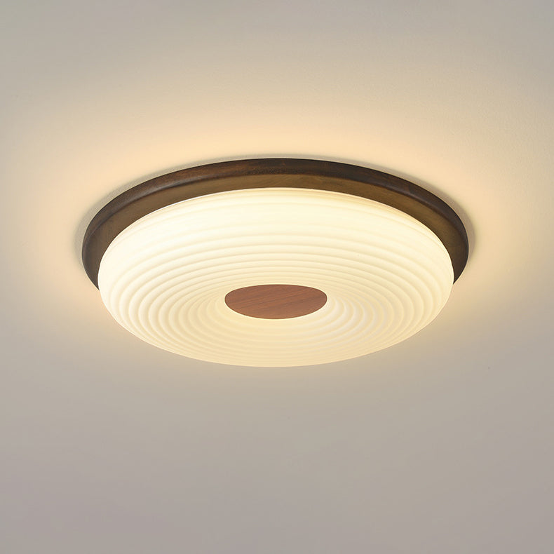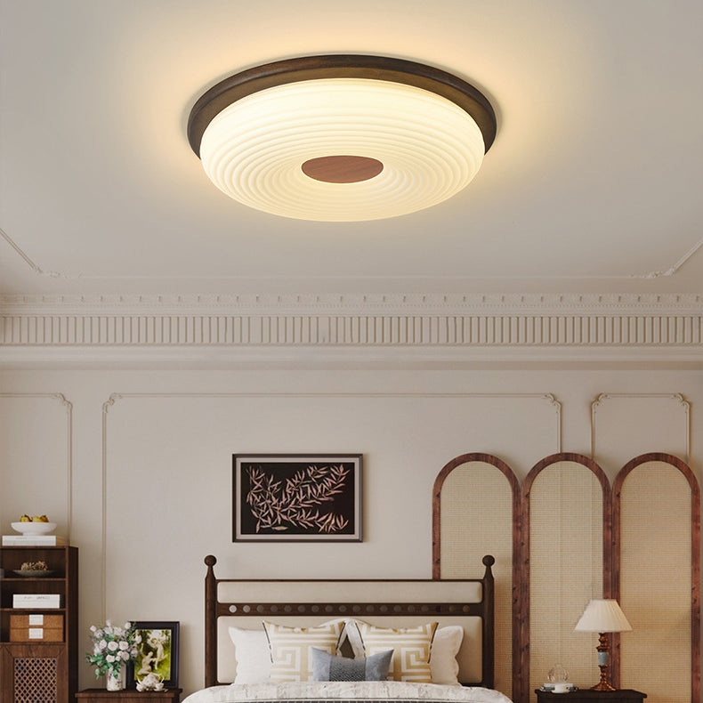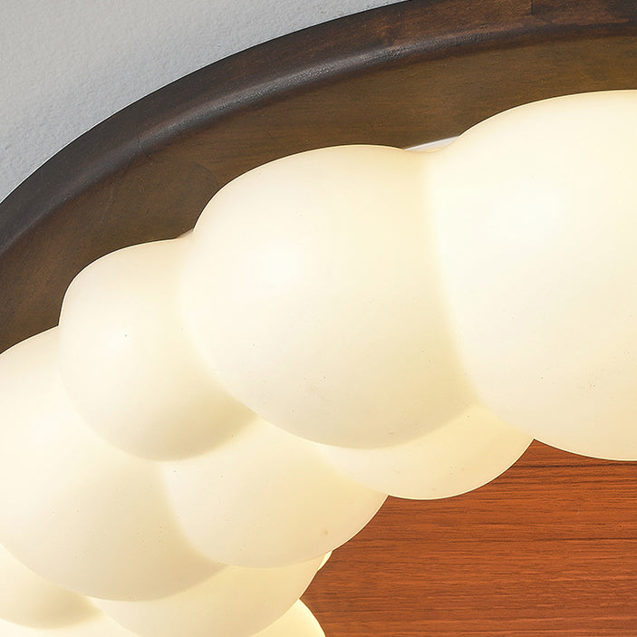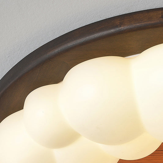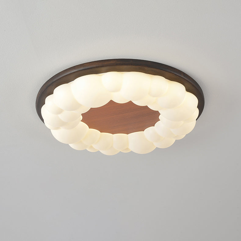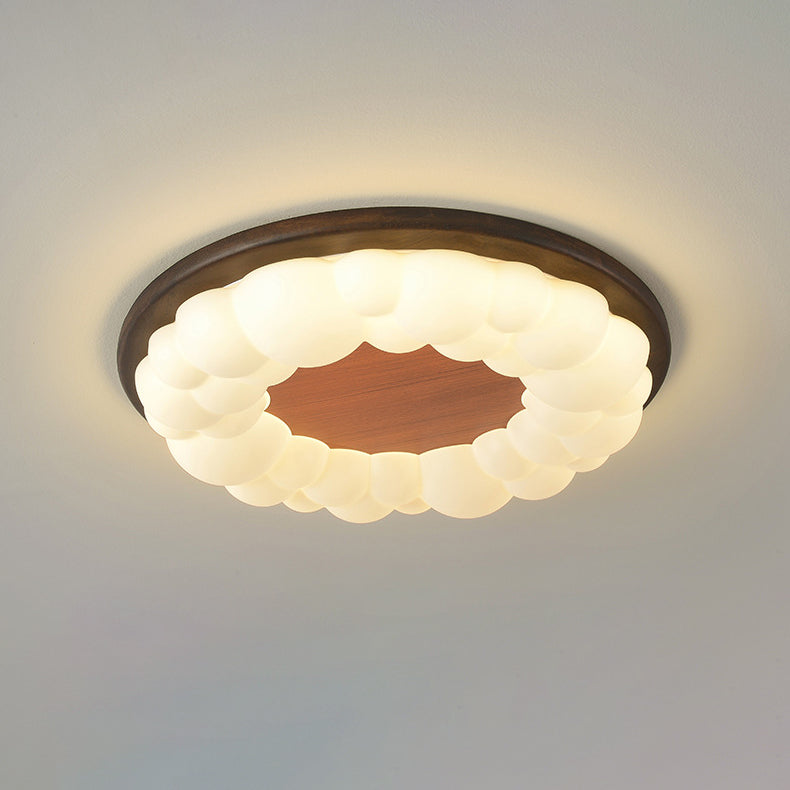 Contemporary Nordic Solid Wood Acrylic Cloud Shade LED Flush Mount Ceiling Light For Bedroom