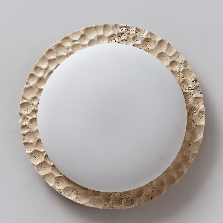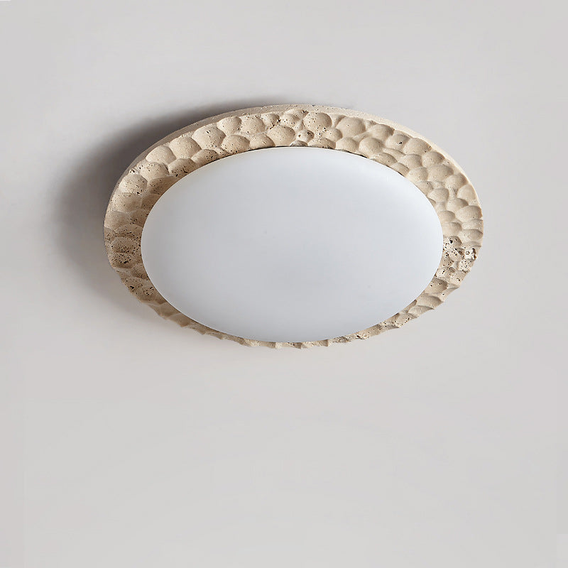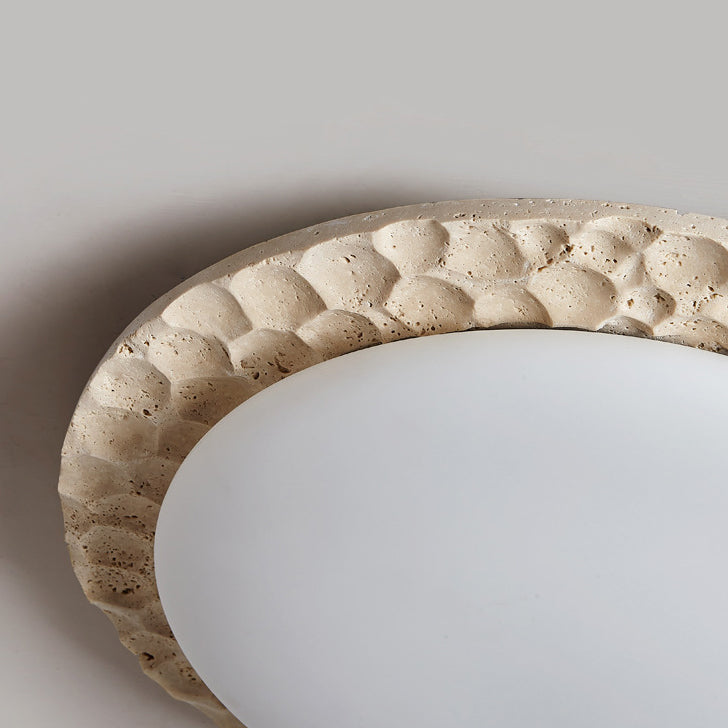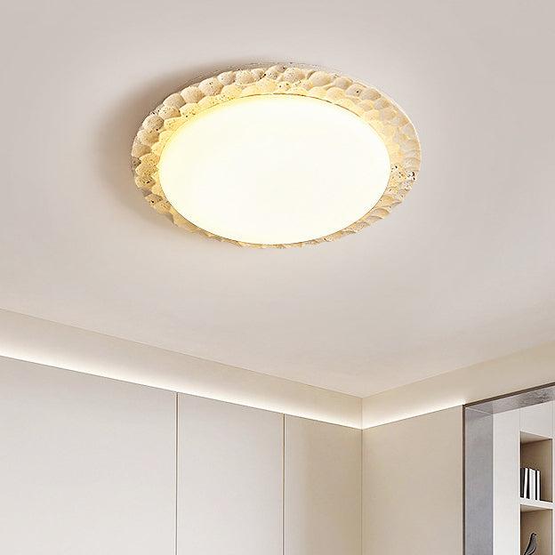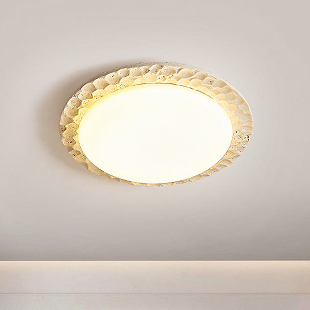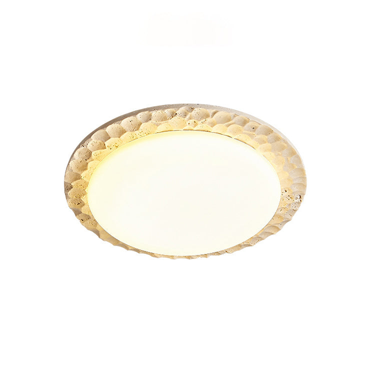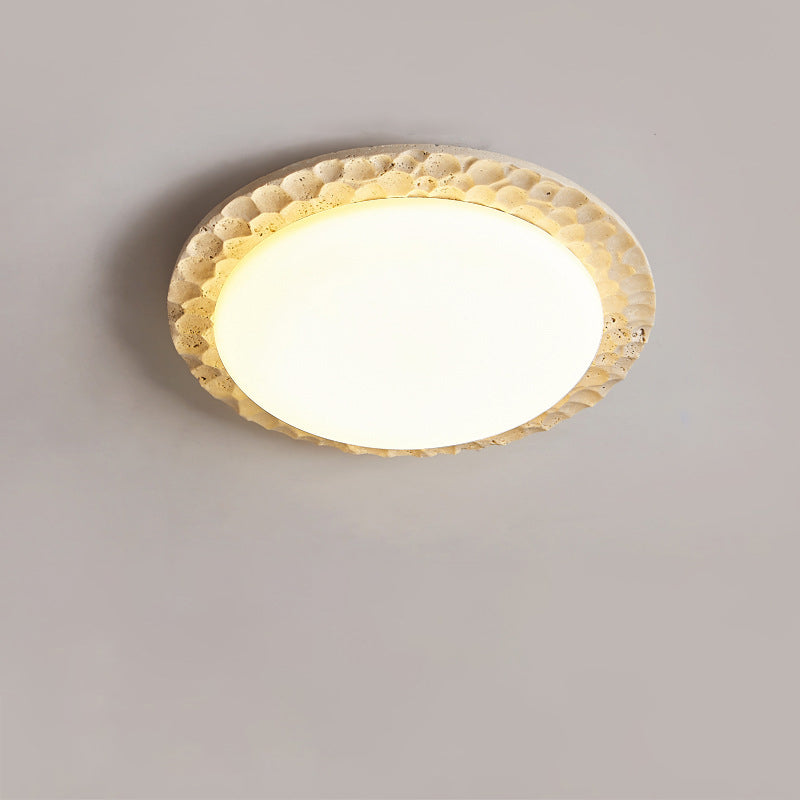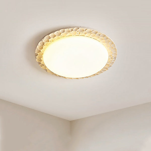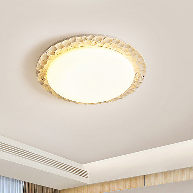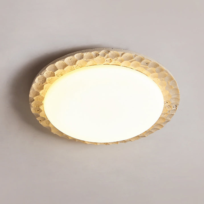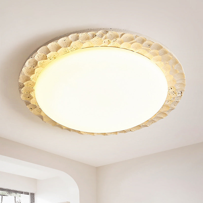 Contemporary Nordic Travertine Acrylic Round Sand Dune Texture LED Flush Mount Ceiling Light For Bedroom