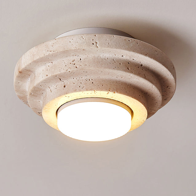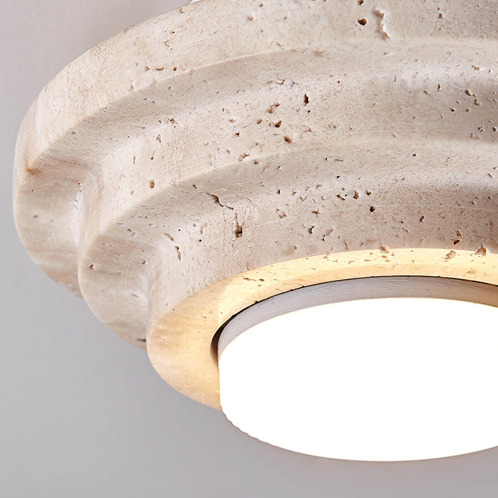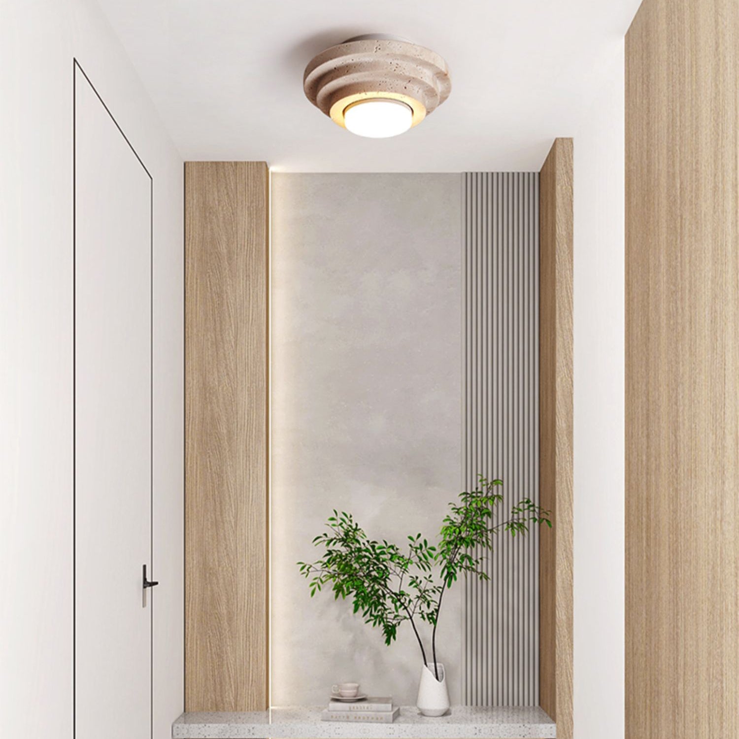 Contemporary Nordic Travertine Ceiling Light – 1-Light Cylinder Semi-Flush Mount for Bedroom