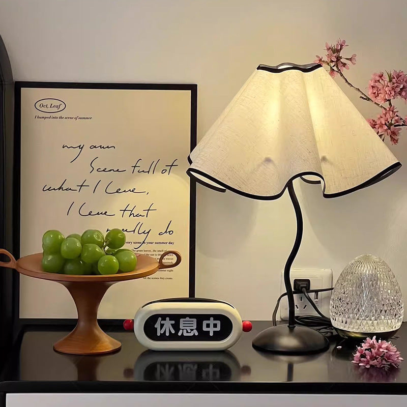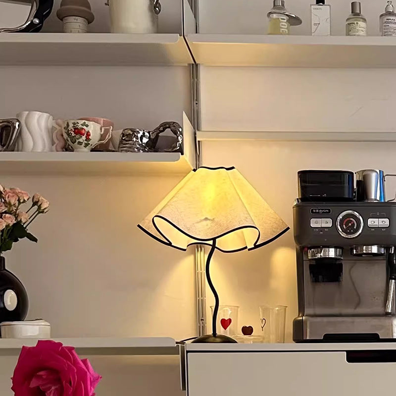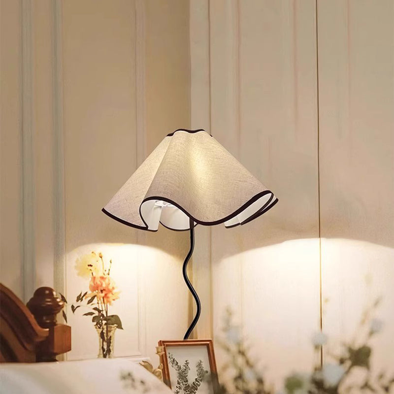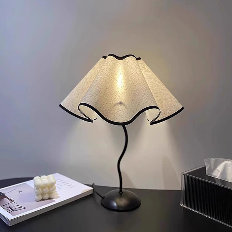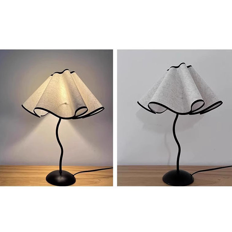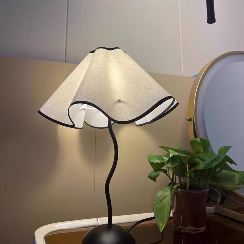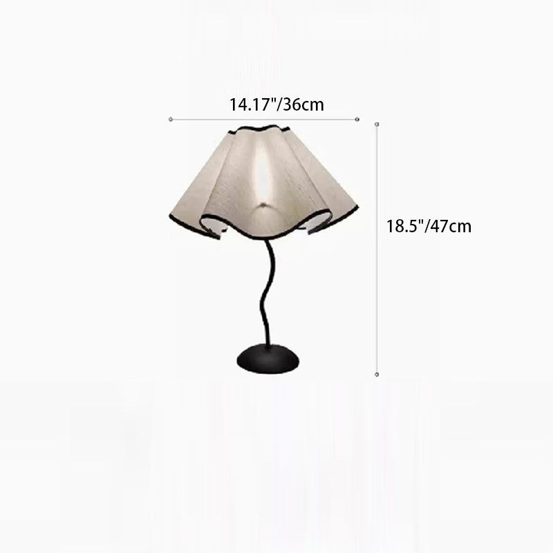 Contemporary Nordic Wave Iron Fabric Petal Flower 1-Light Table Lamp For Living Room