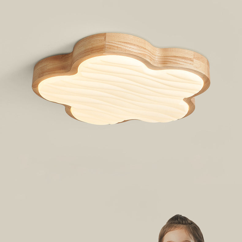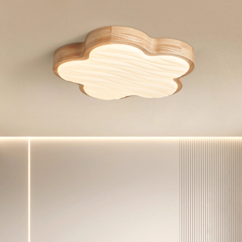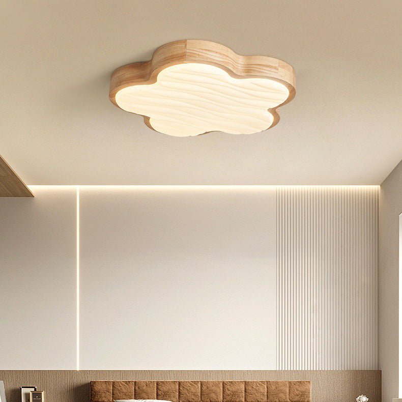 Contemporary Nordic Wood & Acrylic Floral LED Flush Mount Ceiling Light For Bedroom