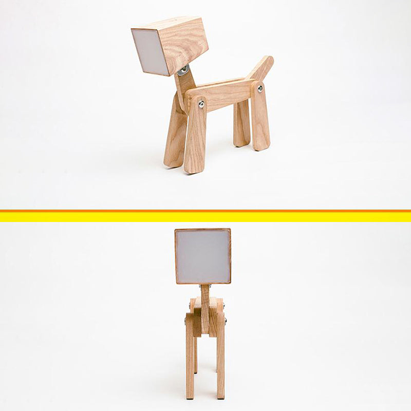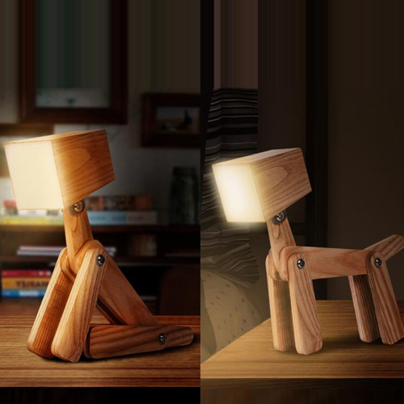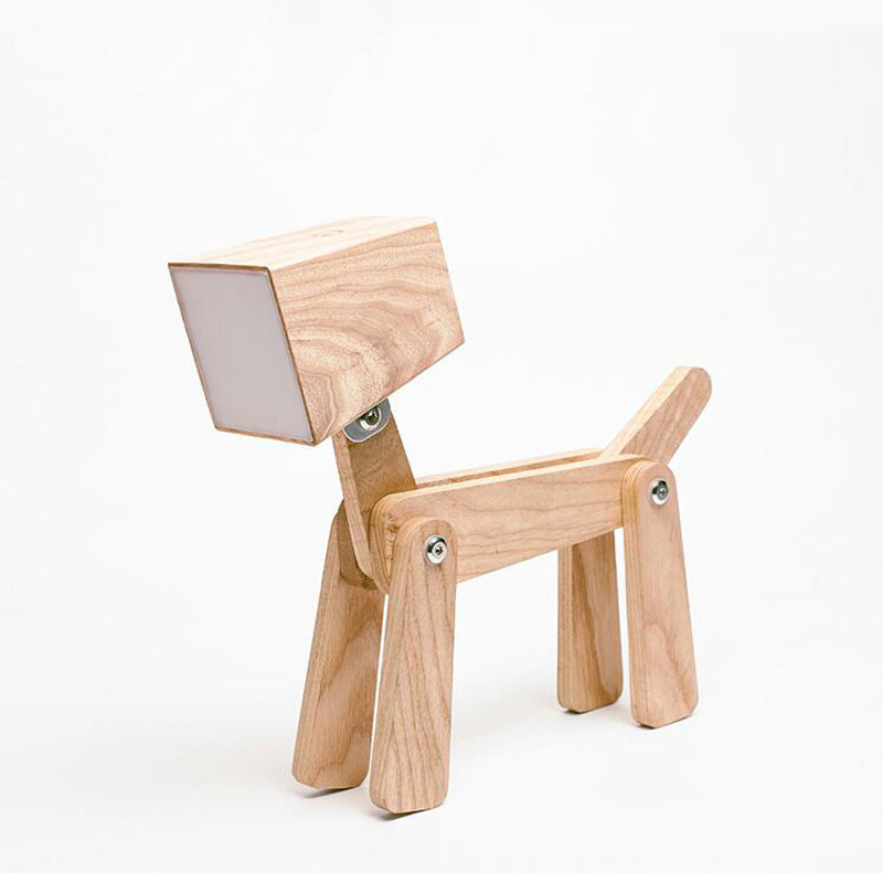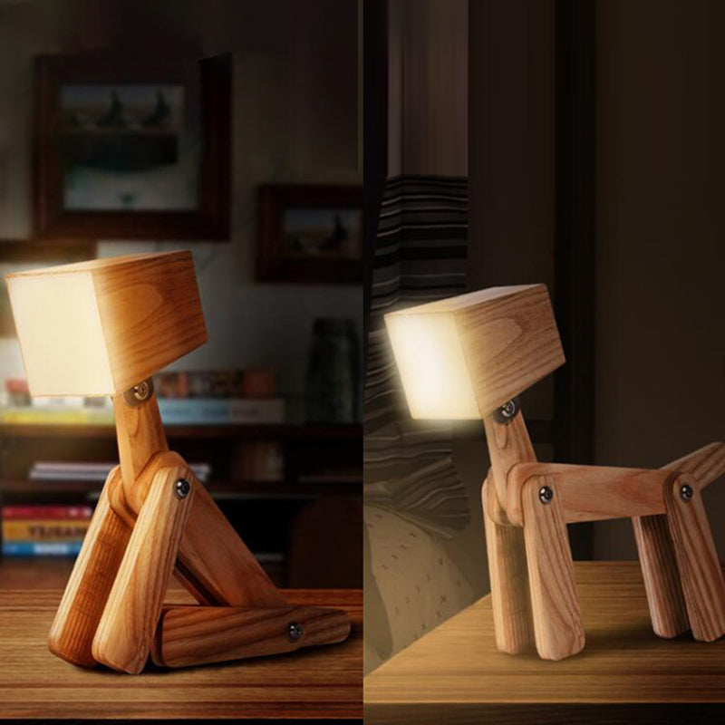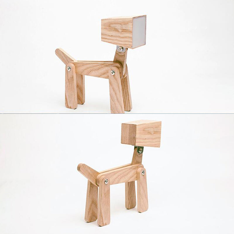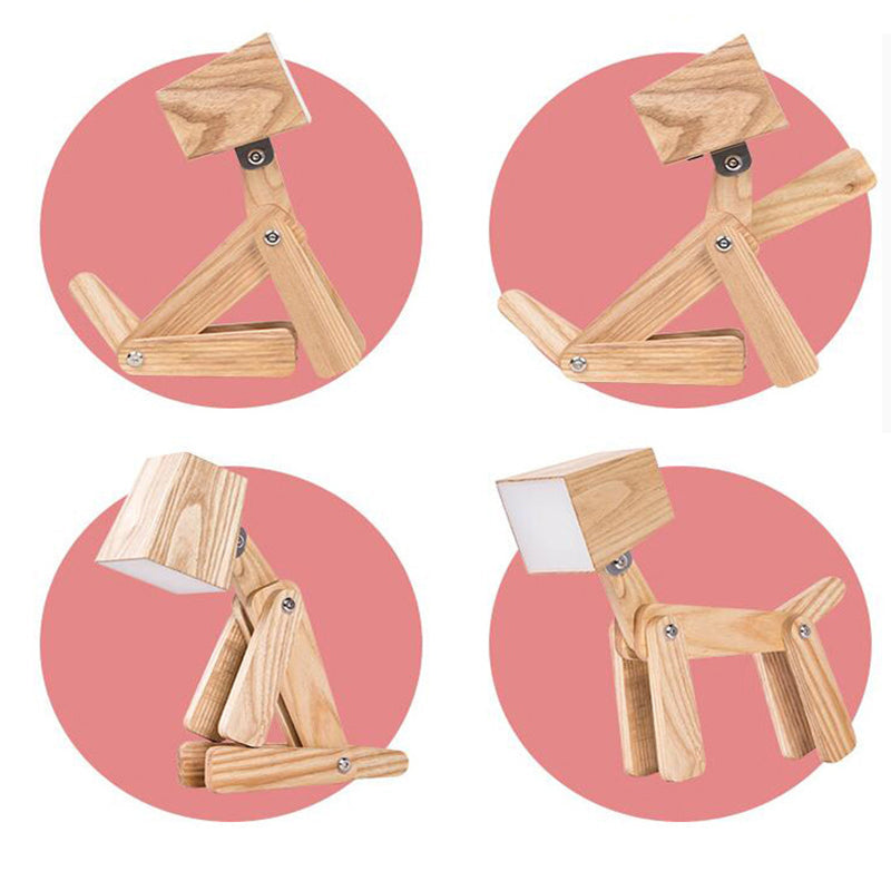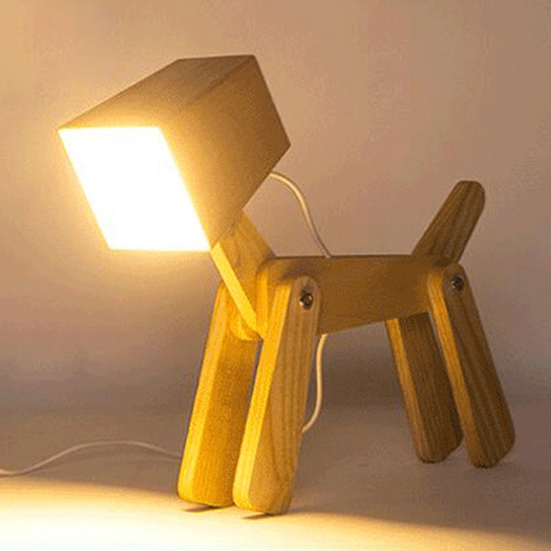Contemporary Nordic Wood Hardware Acrylic Cute Puppy Adjustable LED Table Lamp For Study