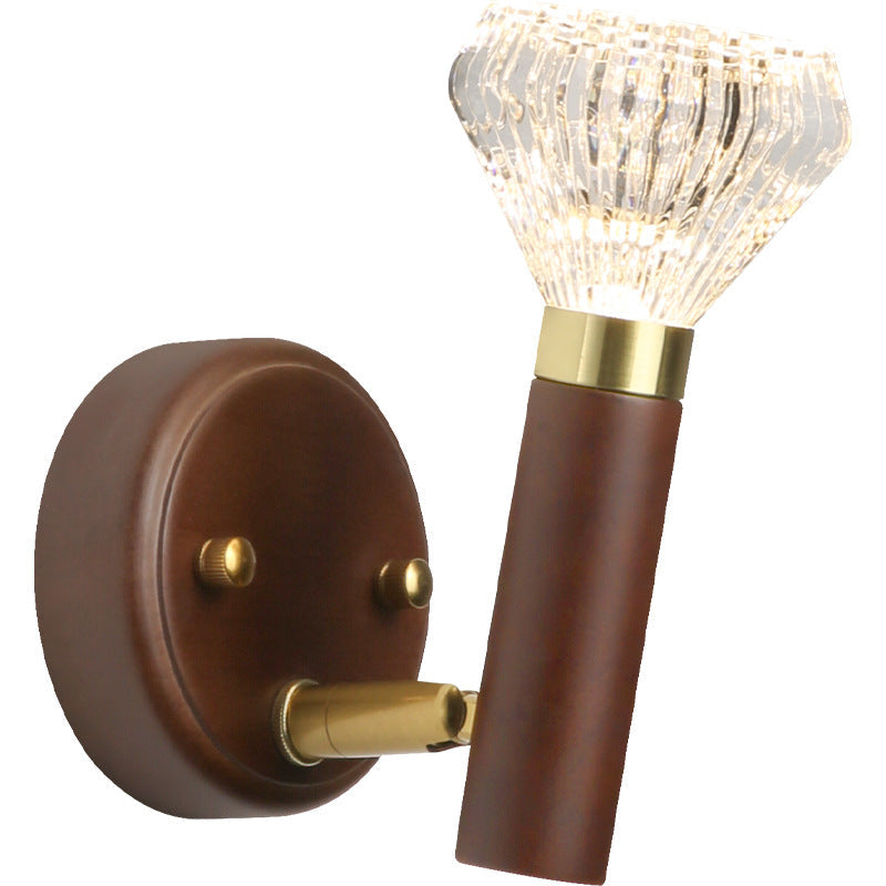 Contemporary Retro Acrylic Rubberwood Aluminum Diamond Flashlight LED Wall Sconce Lamp For Bedside
