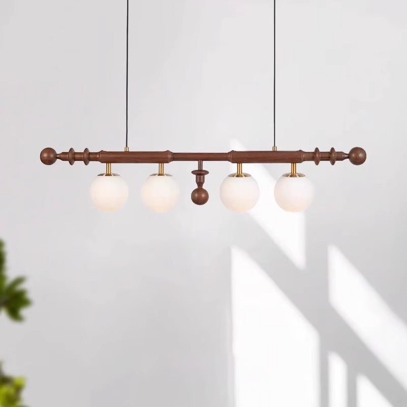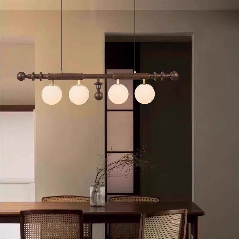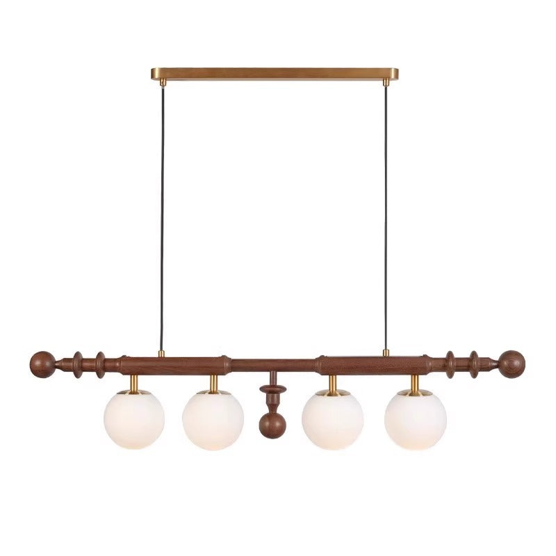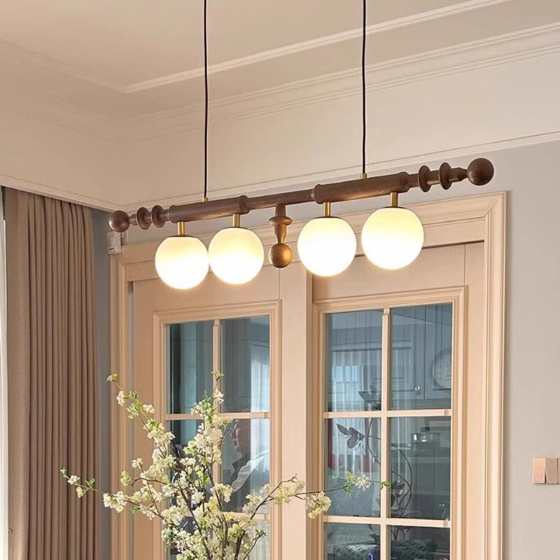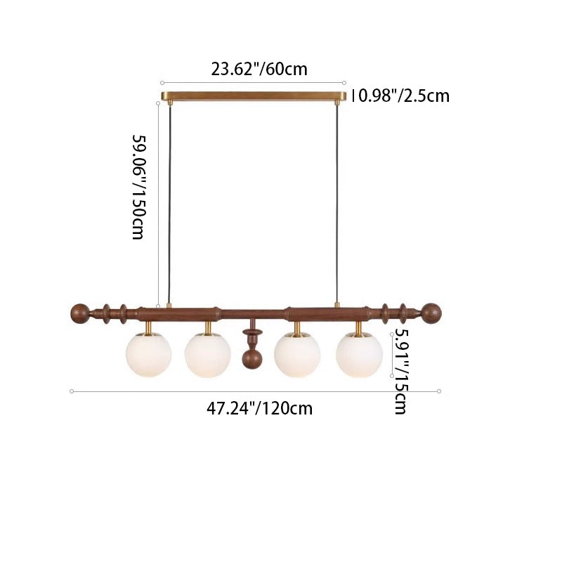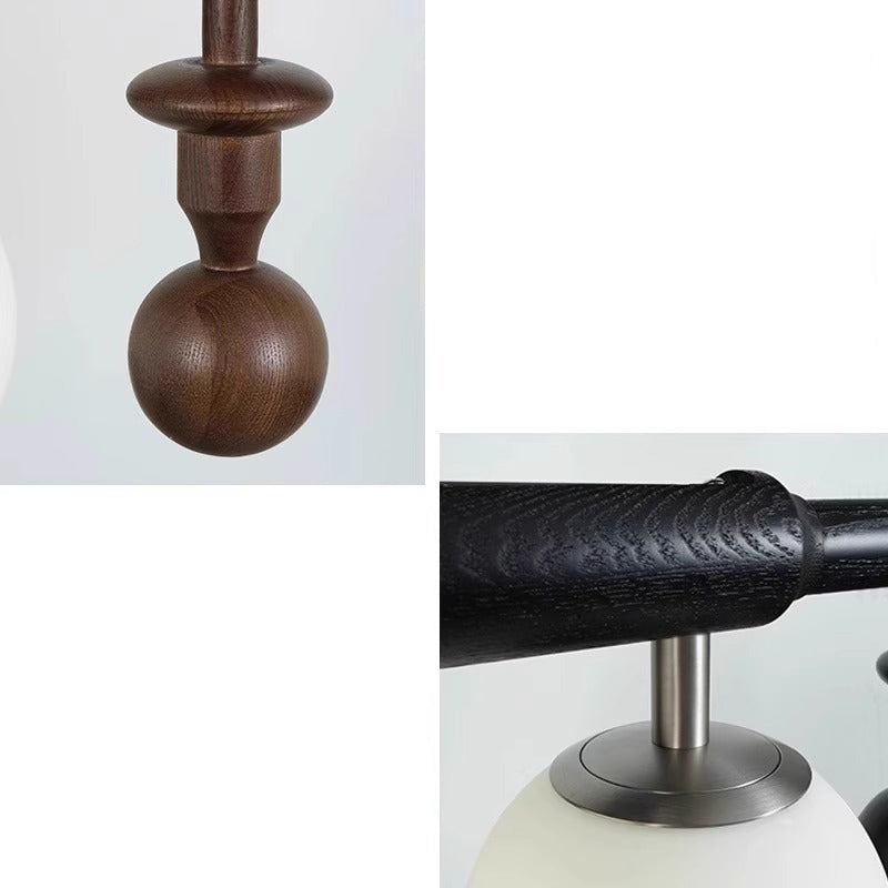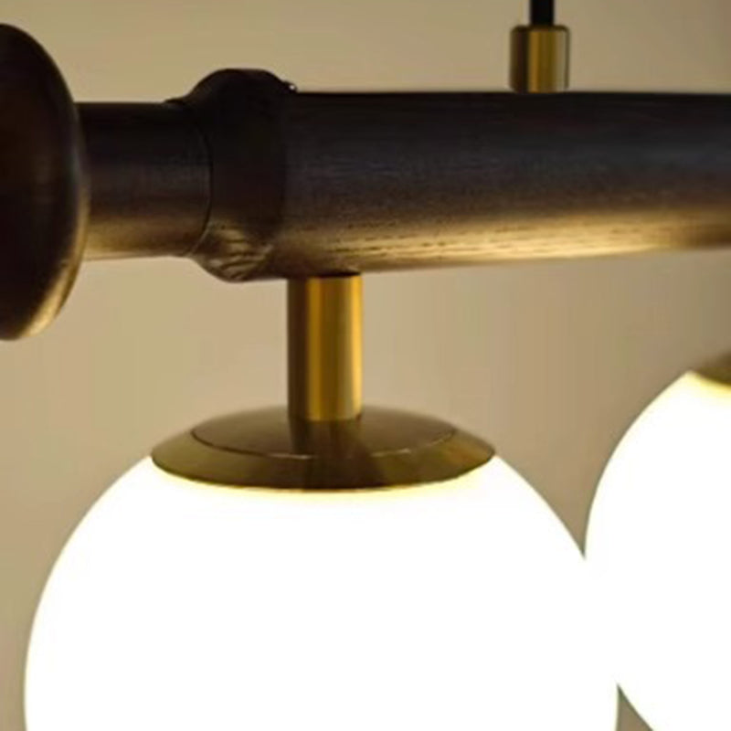 Contemporary Retro Ash Wood Metal Glass Ball Column 4-Light Chandeliers Island Light For Dining Room