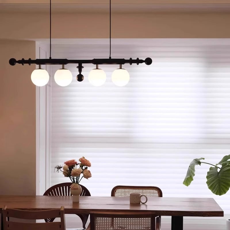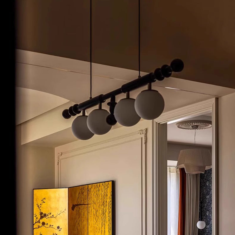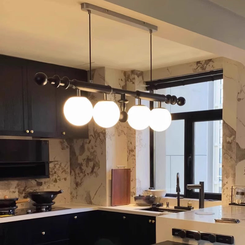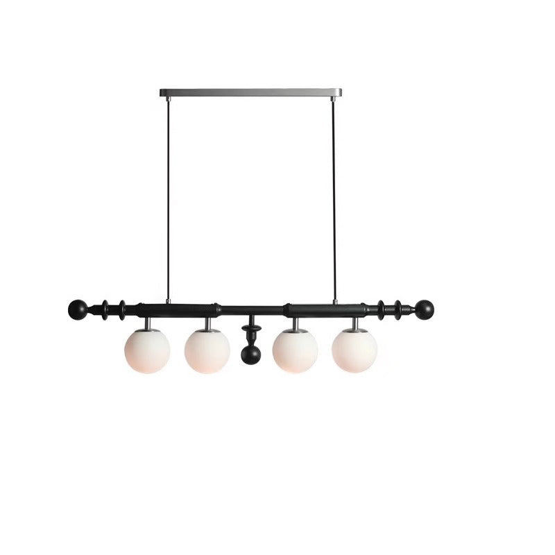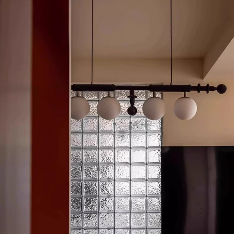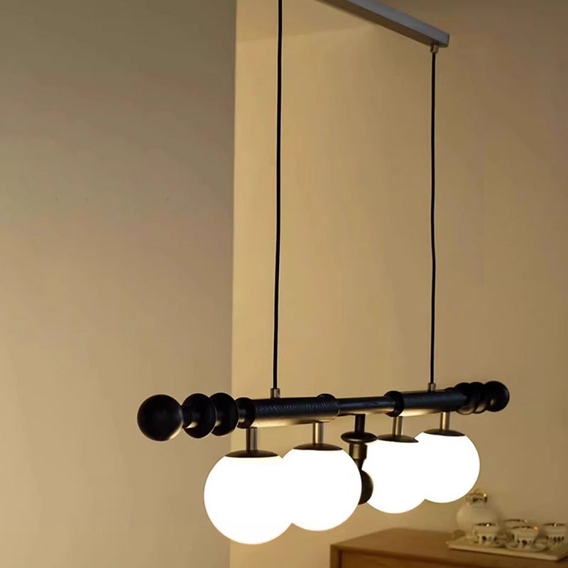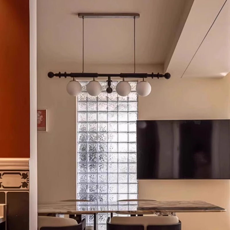 Contemporary Retro Ash Wood Metal Glass Ball Column 4-Light Chandeliers Island Light For Dining Room