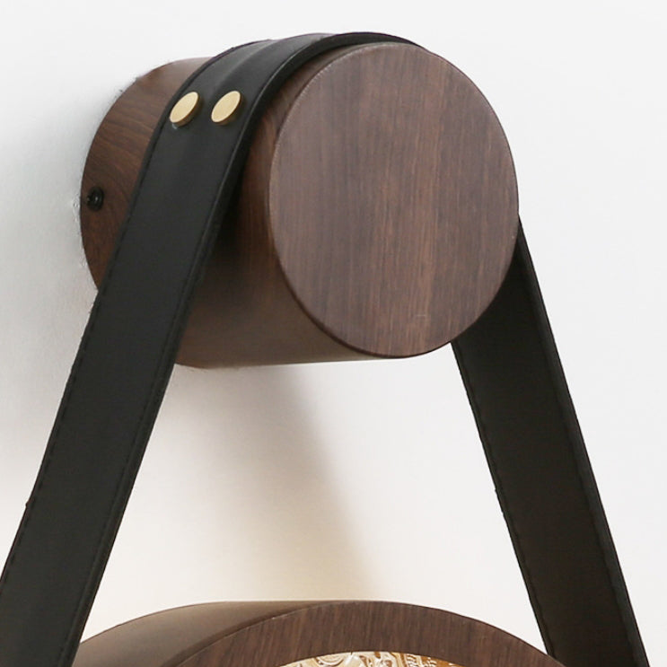 Contemporary Retro Belt Suspension Round Iron Glass Lampshade 1 - Light Wall Sconce Lamp For Living Room