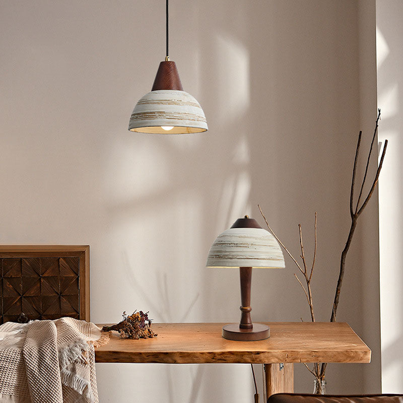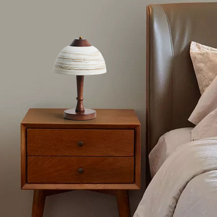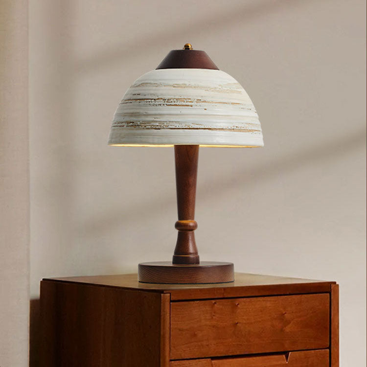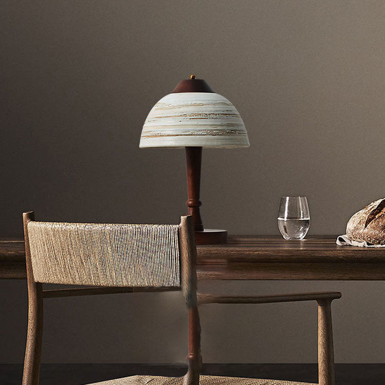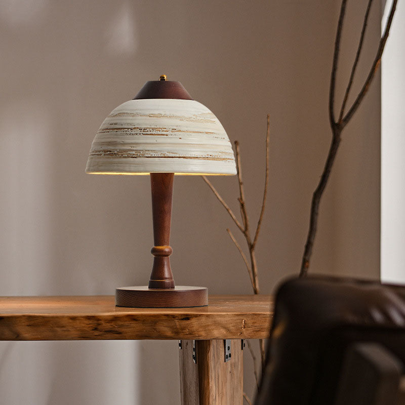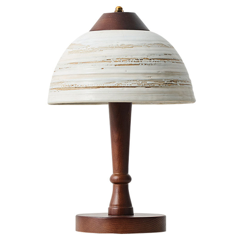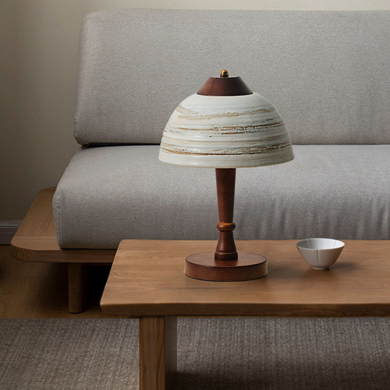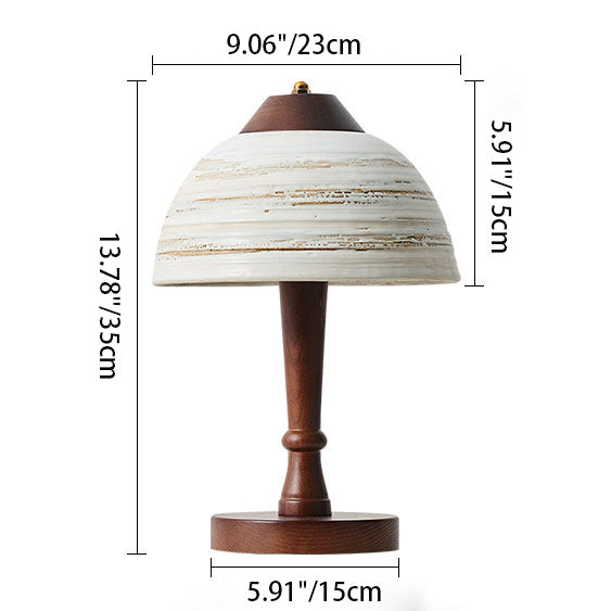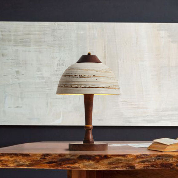 Contemporary Retro Ceramic Bowl Shape Wood 1-Light Table Lamp For Bedroom
