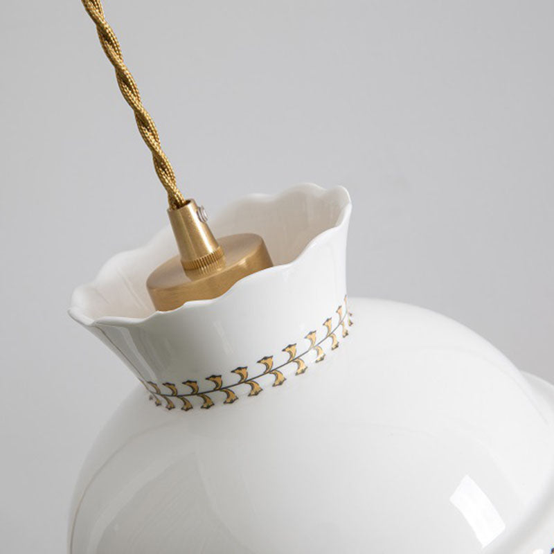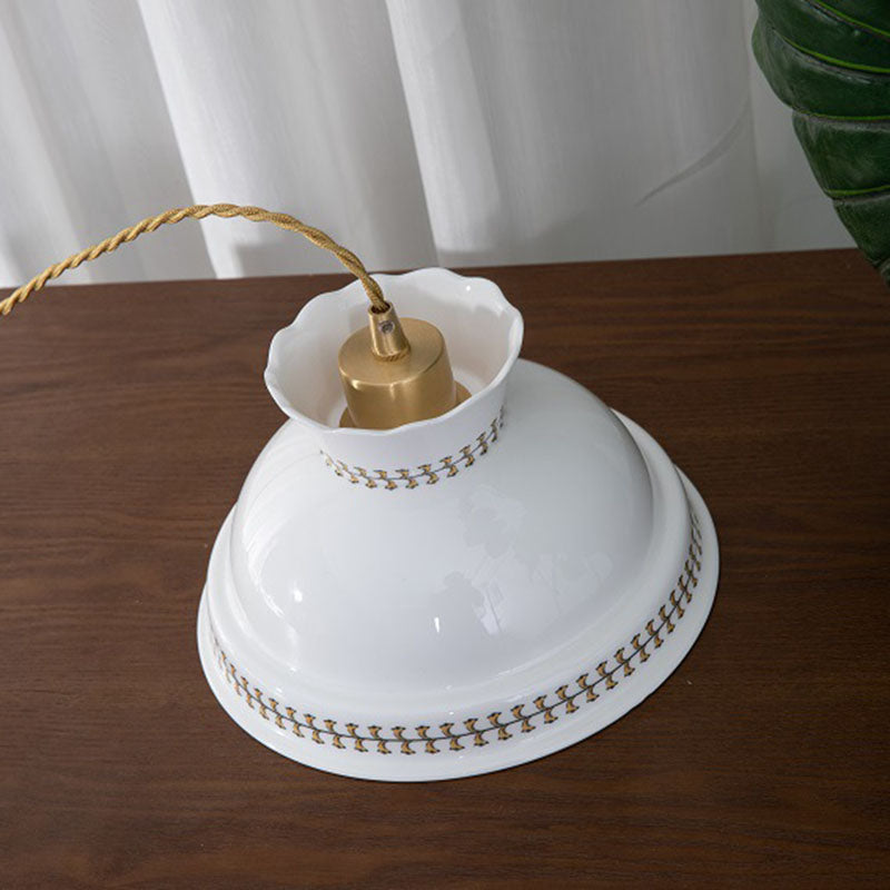 Contemporary Retro Ceramic Copper Bowled 1 - Light Pendant Light For Dining Room