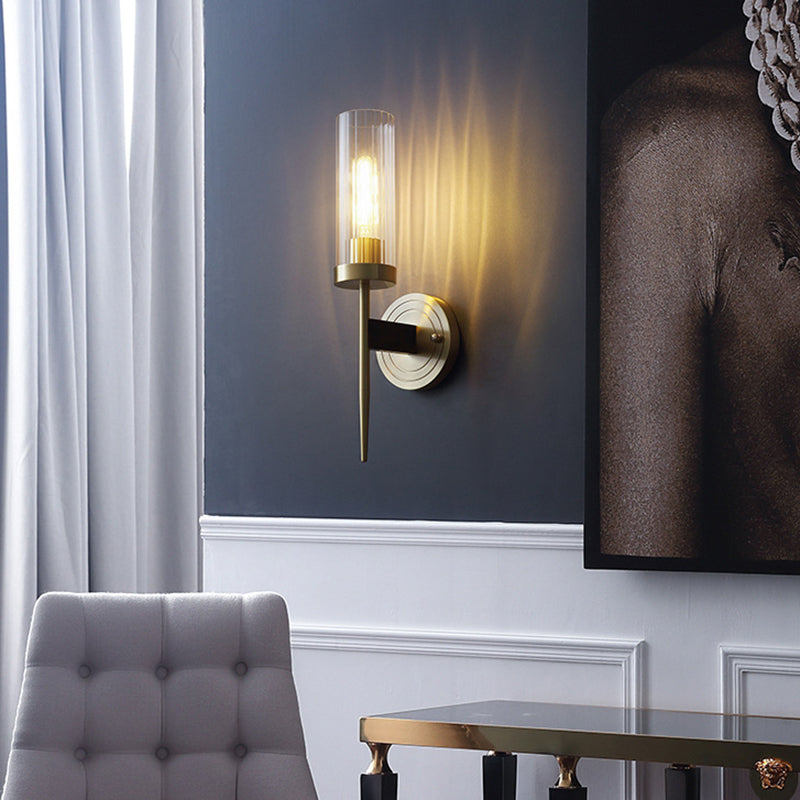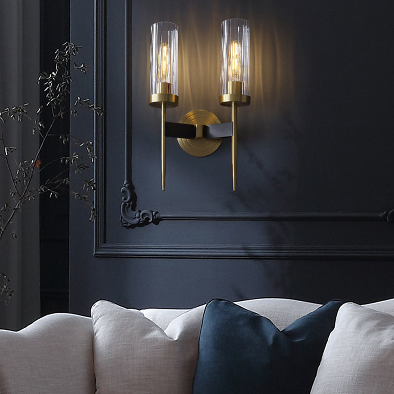 Contemporary Retro Copper Glass Linear 1/2 Light Wall Sconce Lamp For Living Room