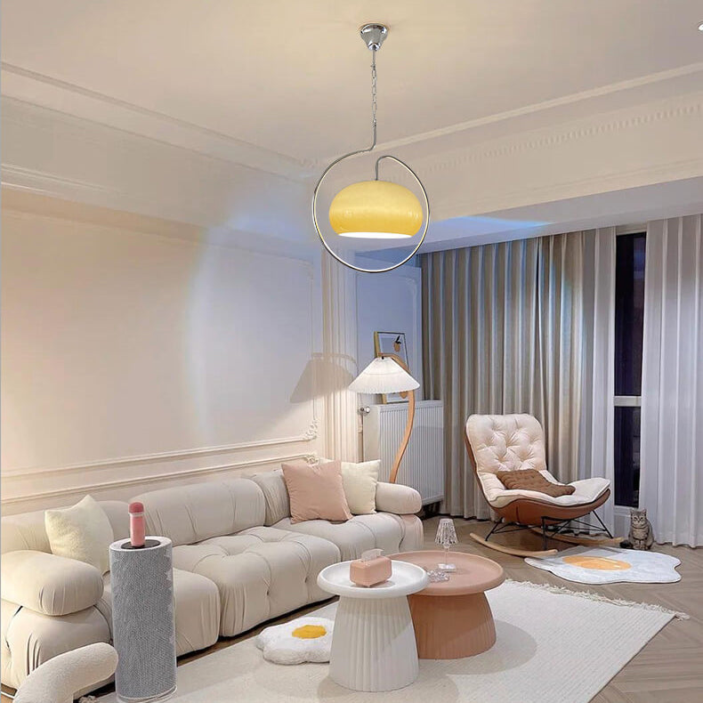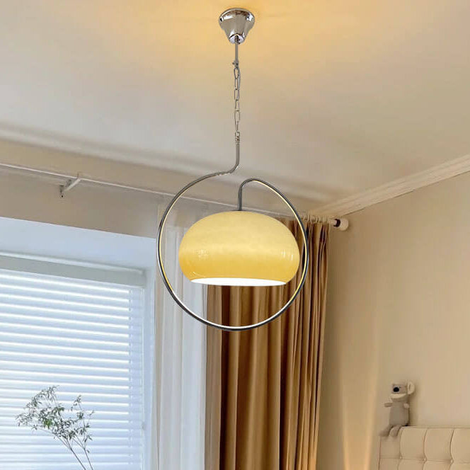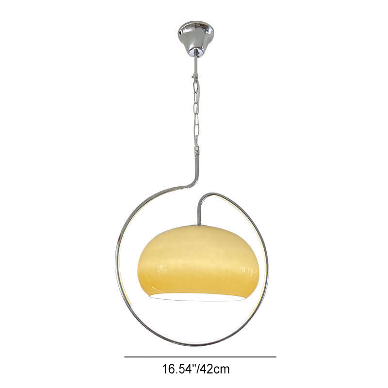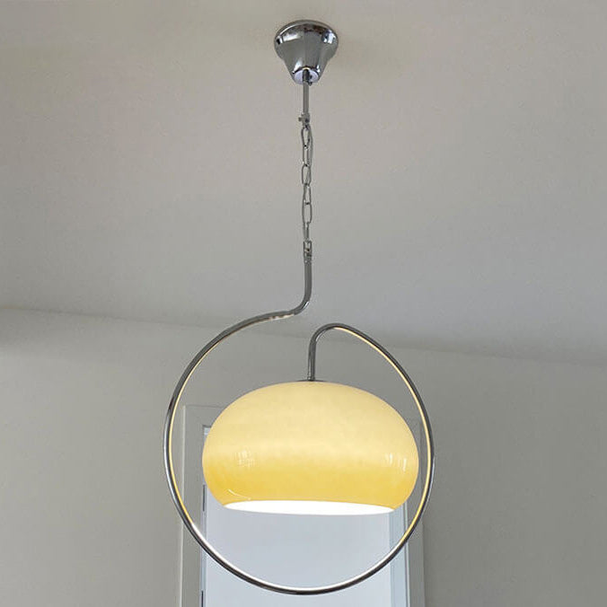 Contemporary Retro Cream Round Hardware Glass 1-Light Pendant Light For Living Room