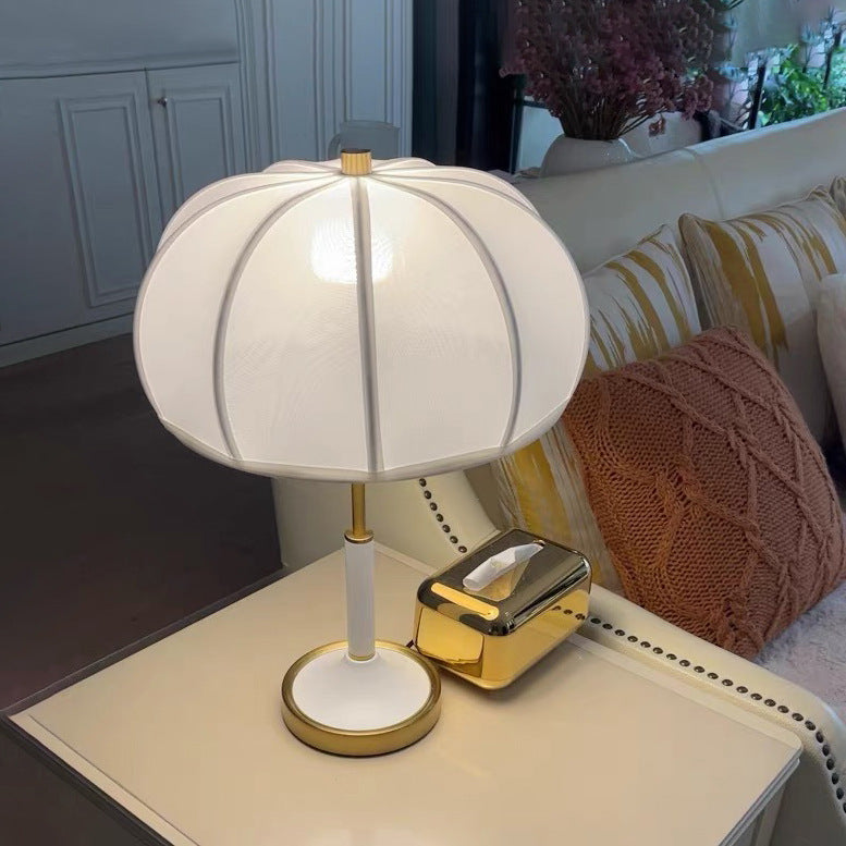 Contemporary Retro Dome Hardware Fabric 1-Light Table Lamp For Bedroom