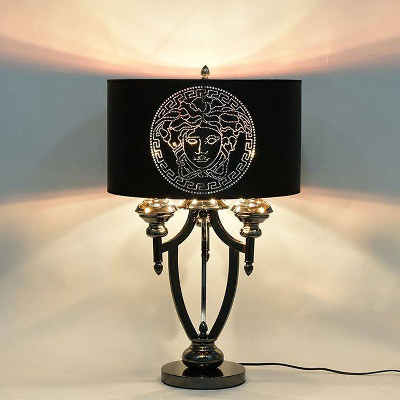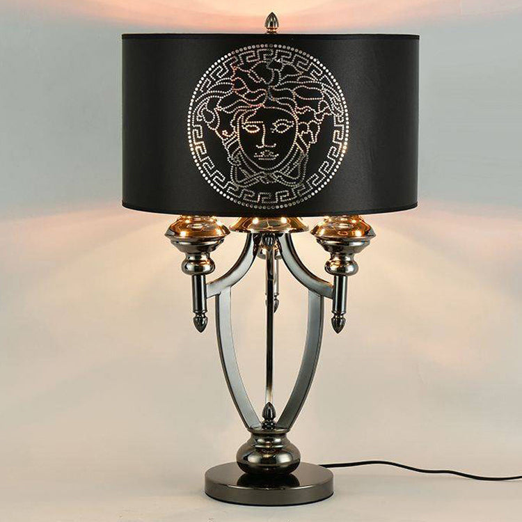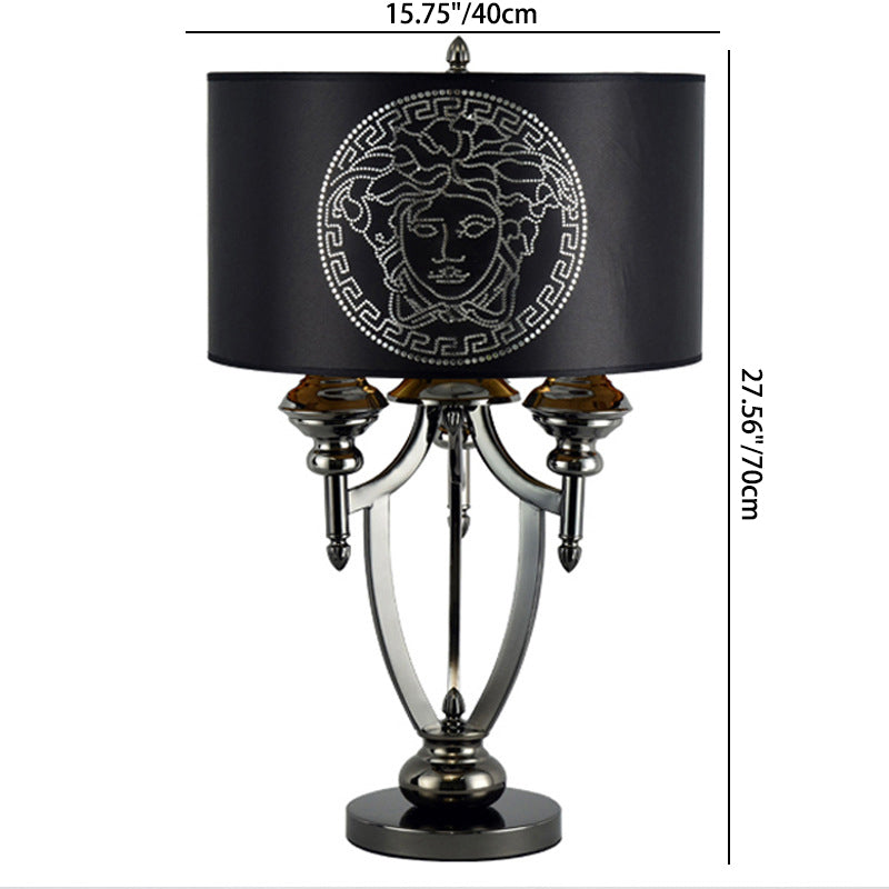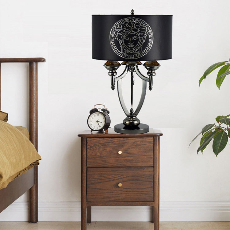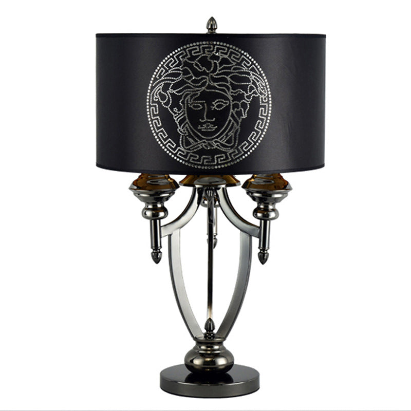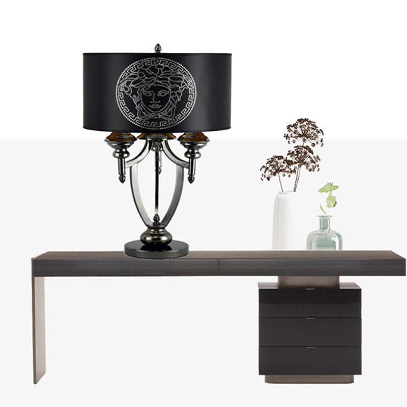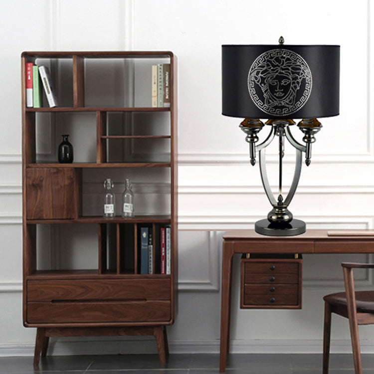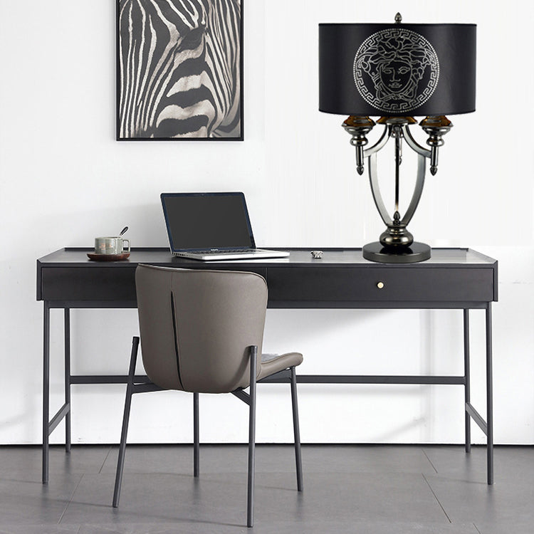 Contemporary Retro Fabric Iron Marble Cylinder 3-Light Table Lamp For Study