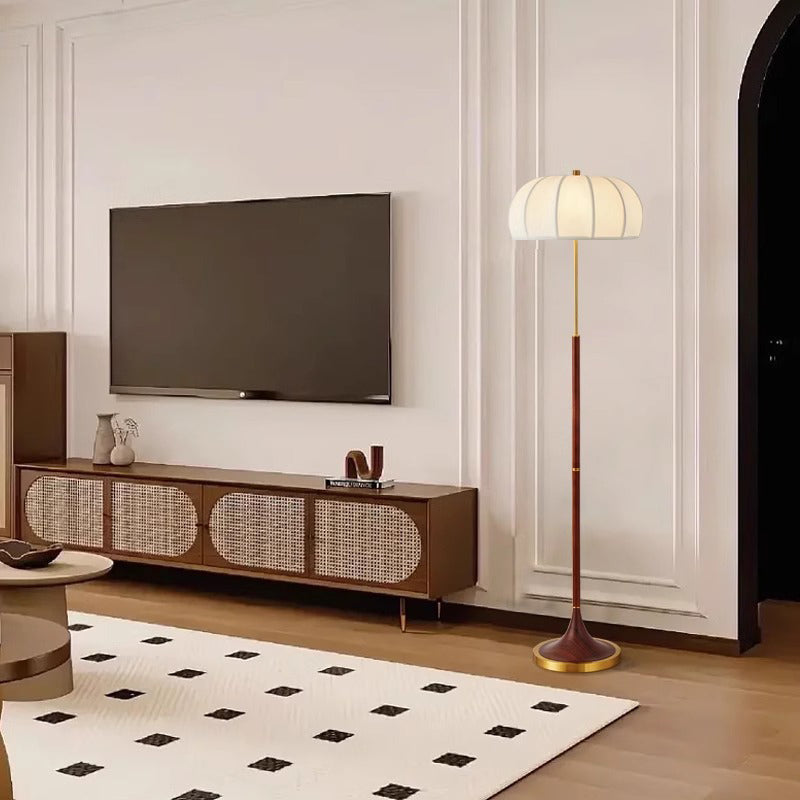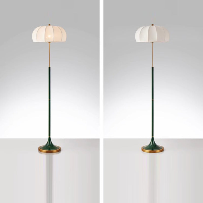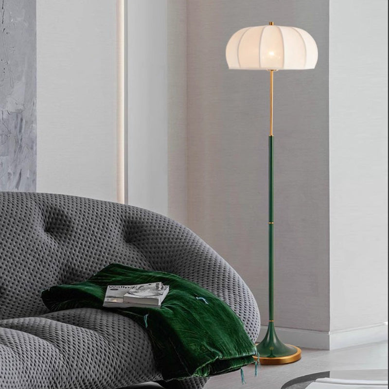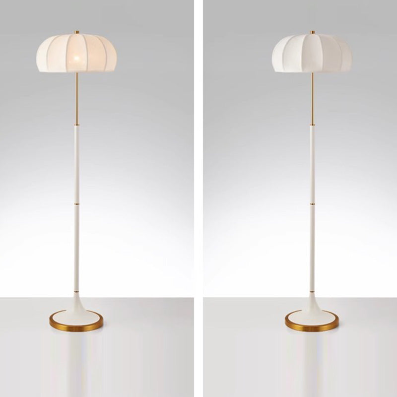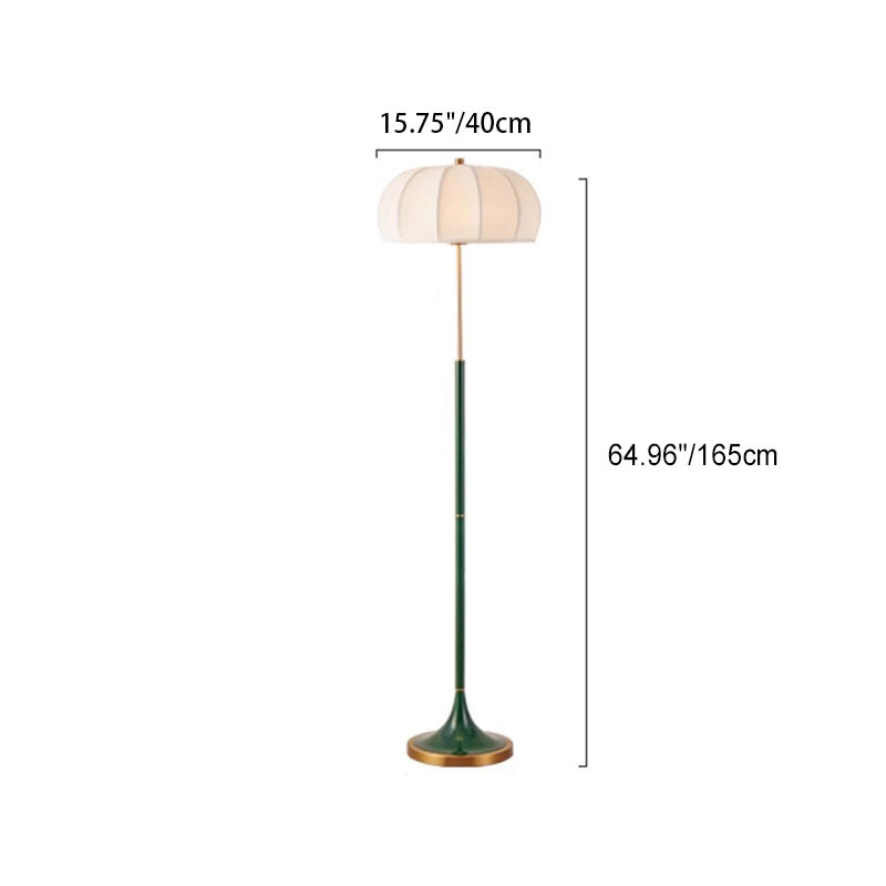 Contemporary Retro Fabric Metal Round Lantern Striped 1-Light Standing Floor Lamp For Living Room