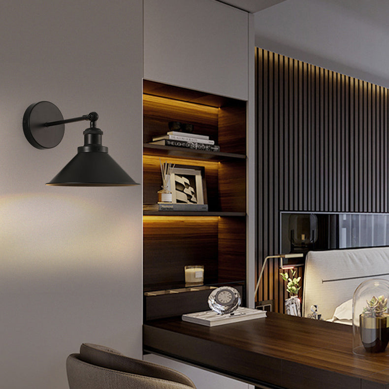 Contemporary Retro Iron Round Cone 1-Light Wall Sconce Lamp For Living Room
