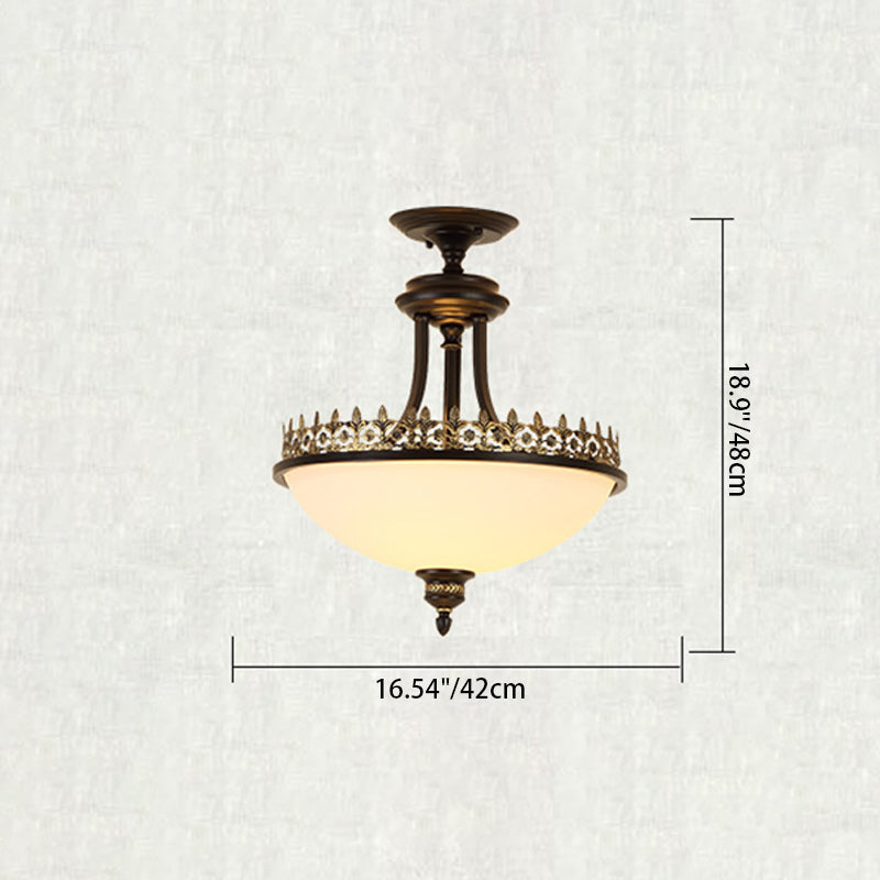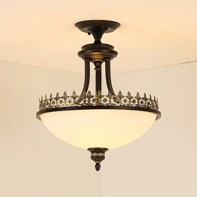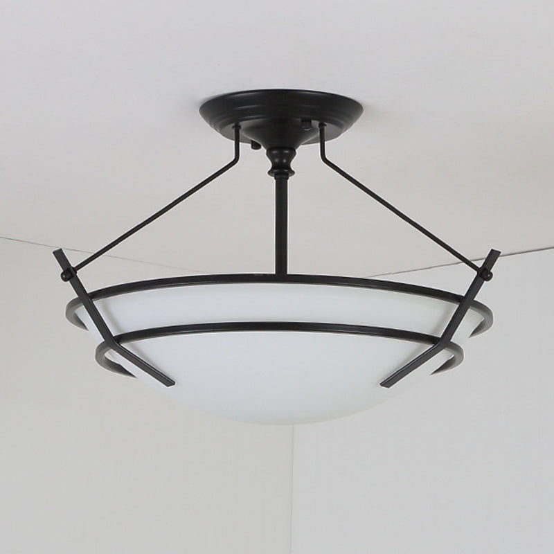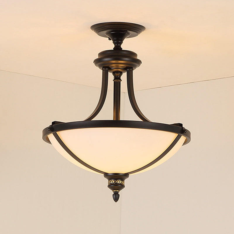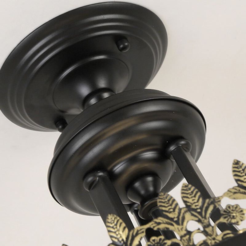 Contemporary Retro Metal Glass Bowl Skeleton Carving 3-Light Semi-Flush Mount Ceiling Light For Hallway
