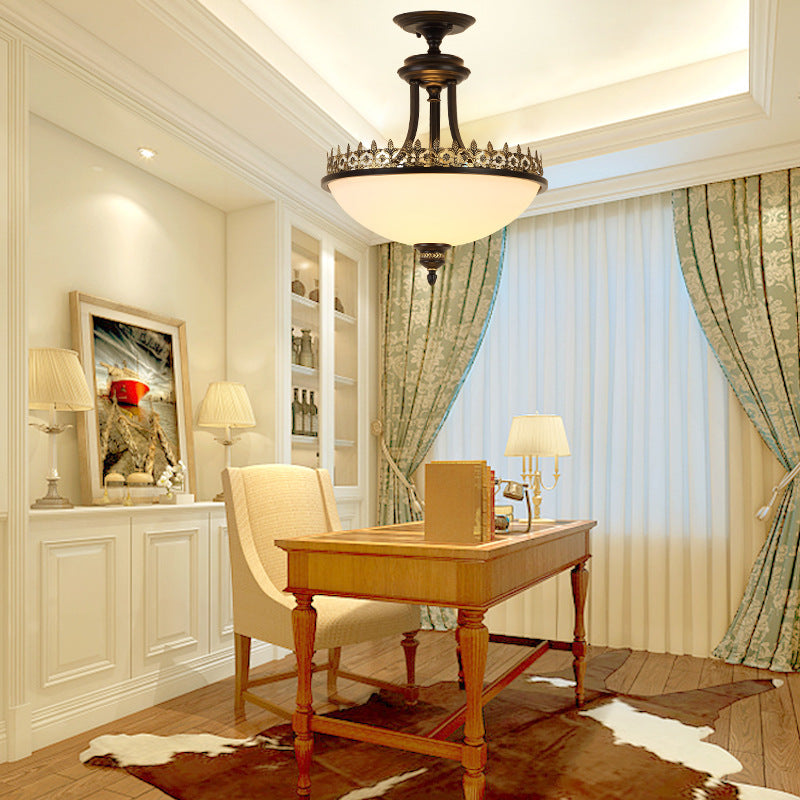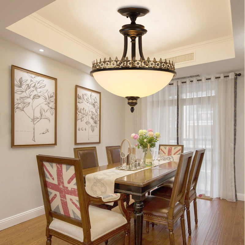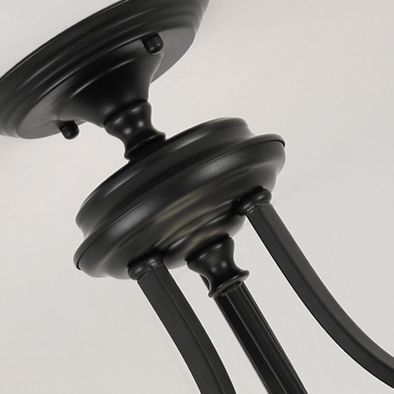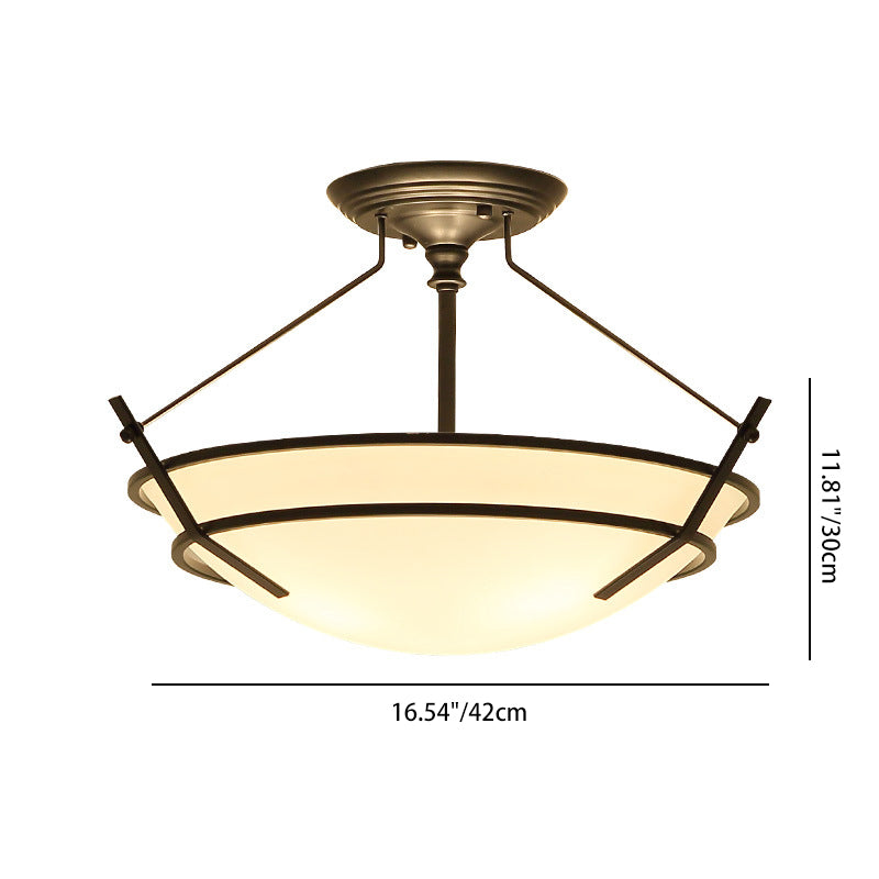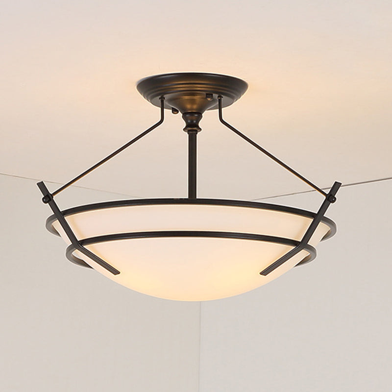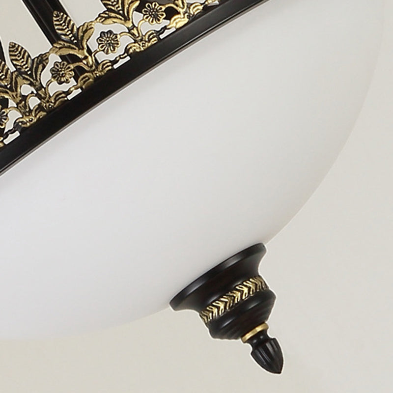 Contemporary Retro Metal Glass Bowl Skeleton Carving 3-Light Semi-Flush Mount Ceiling Light For Hallway