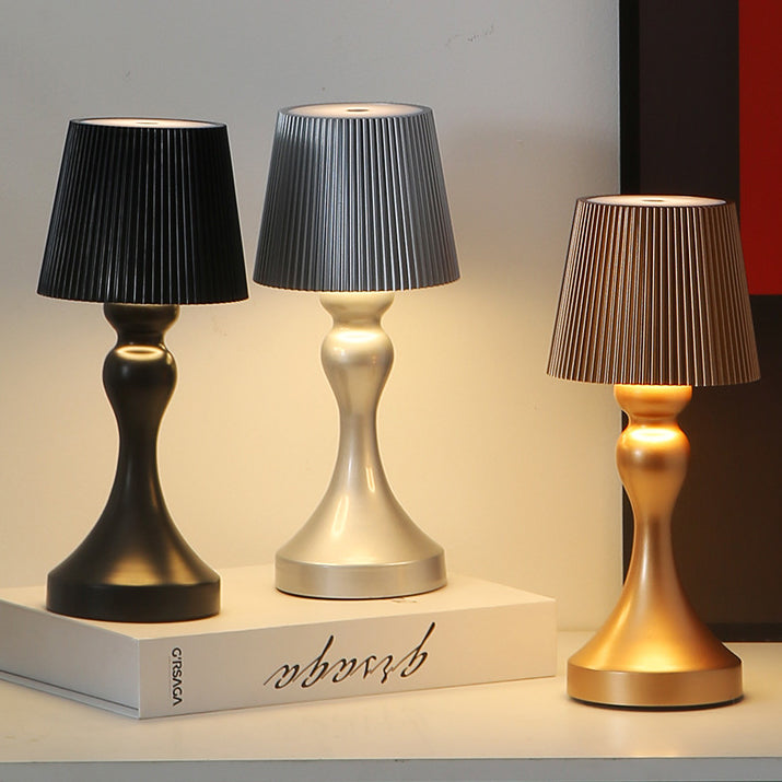 Contemporary Retro Rechargeable Iron ABS Striped Column LED Table Lamp Night Light For Bedside