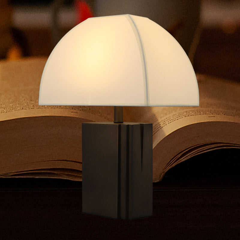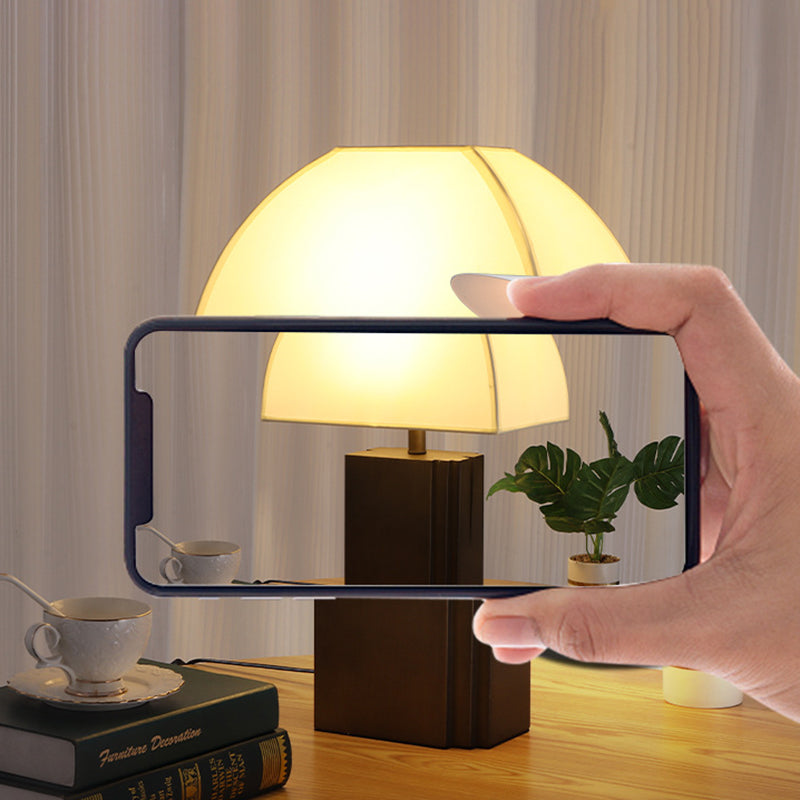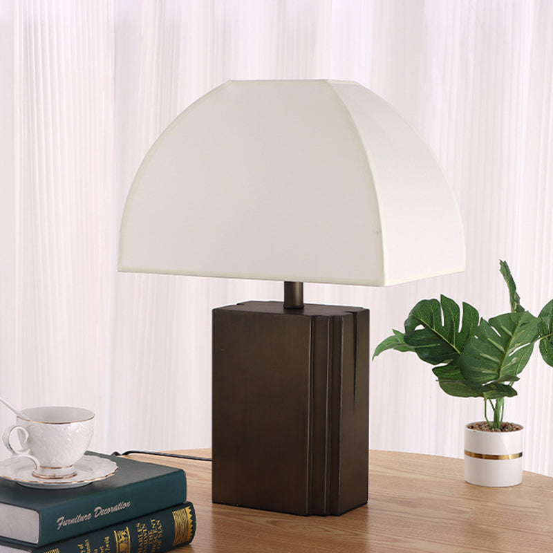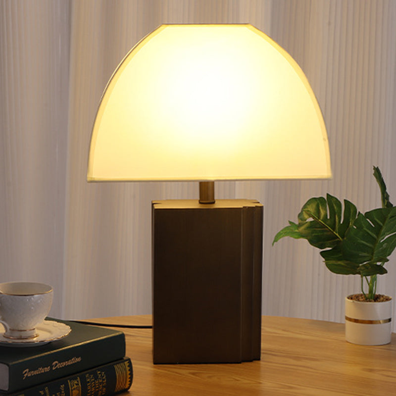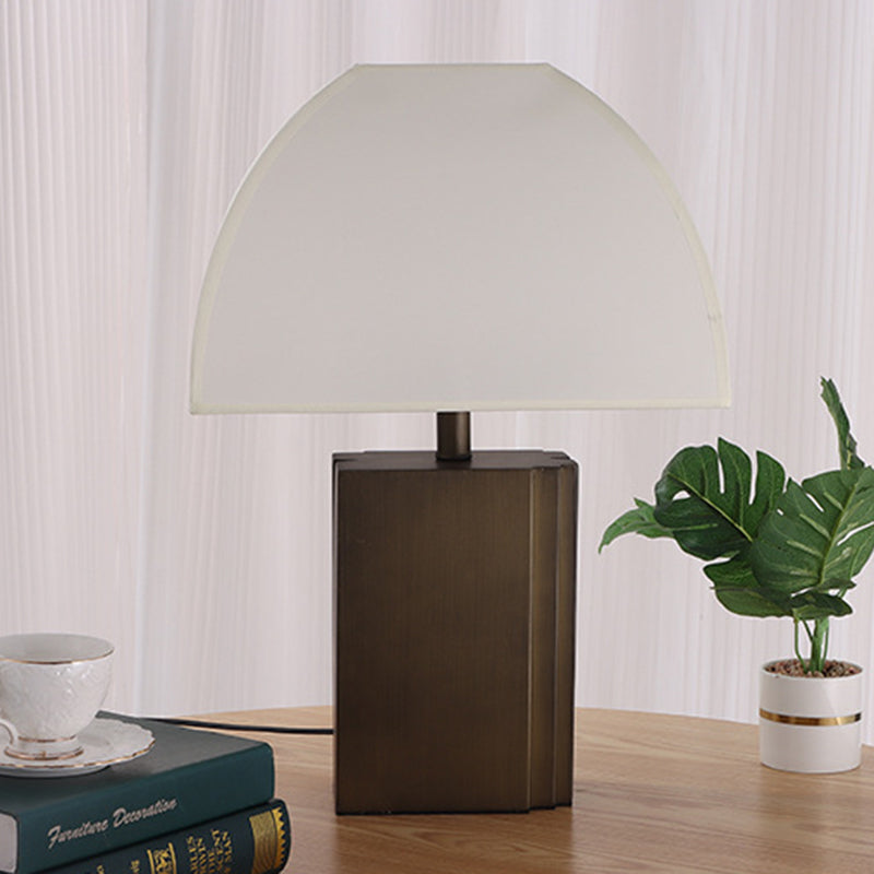 Contemporary Retro Rectangular Base Half Circle Trapezoid Fabric Cover Metal 1-Light Table Lamp For Living Room