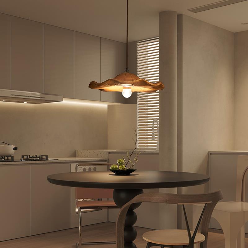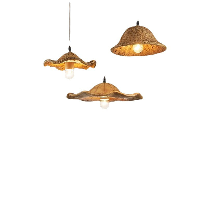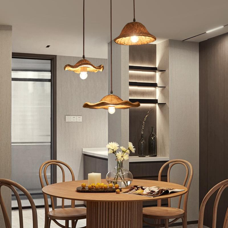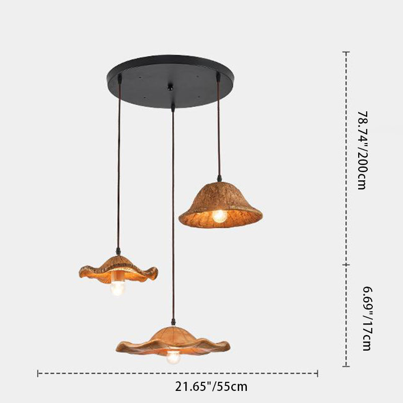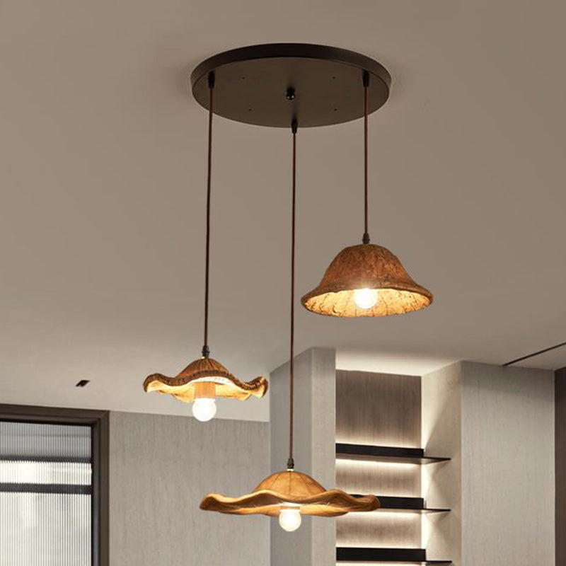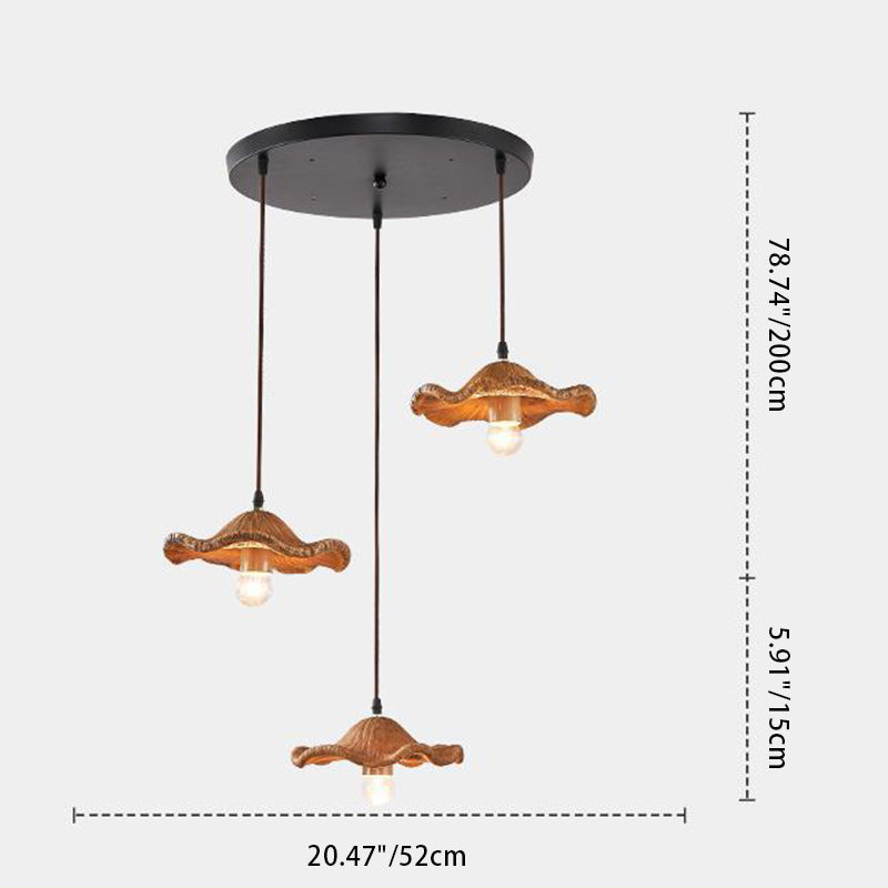 Contemporary Retro Resin Metal Glass Floral Lotus Leaf 1/3 Light Pendant Light Chandeliers For Dining Room