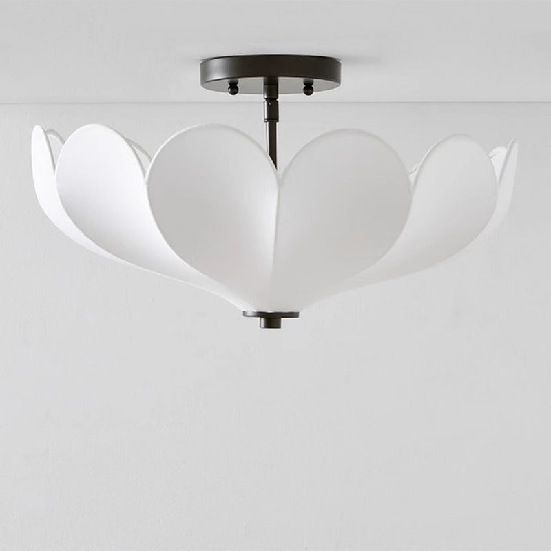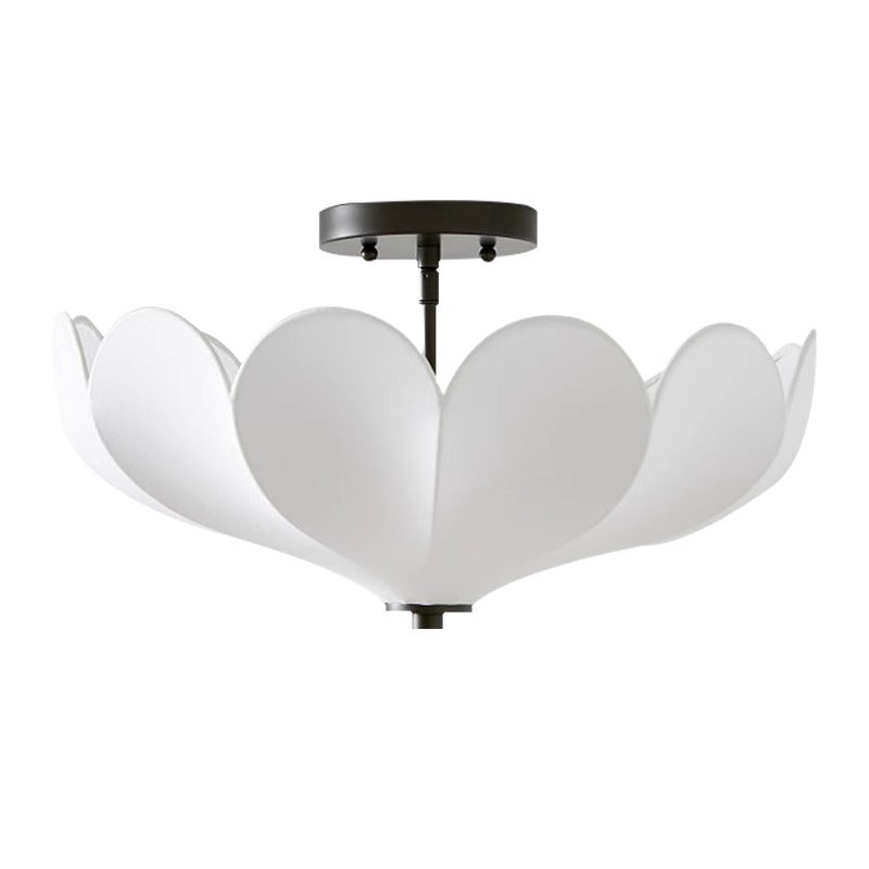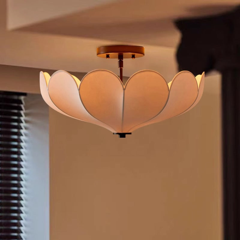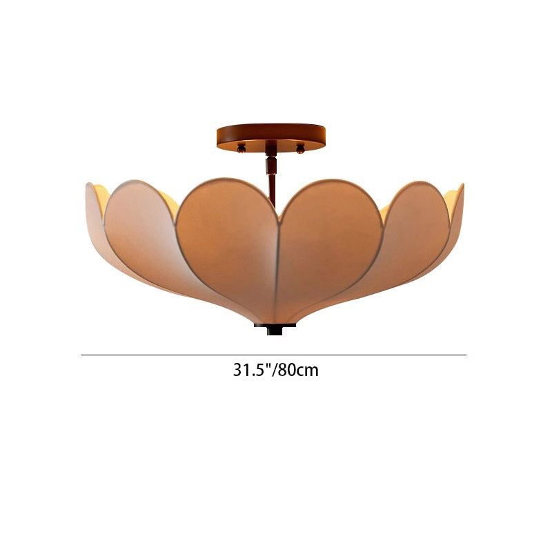 Contemporary Retro Round Leaf Shape Metal Frame Fabric Shade 1-Light Semi-Flush Mount Ceiling Light For Living Room