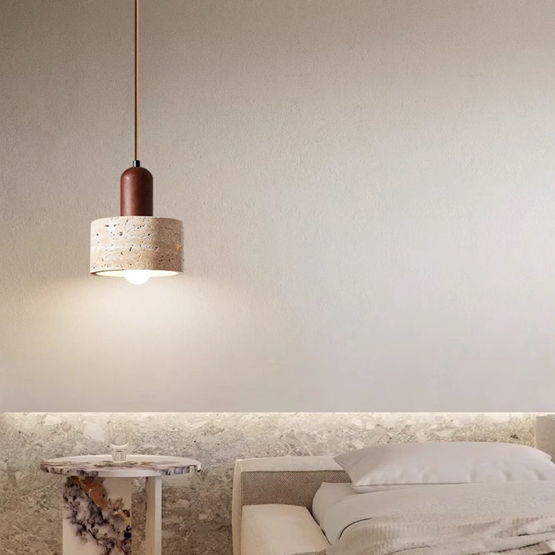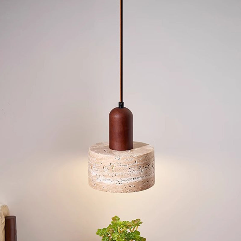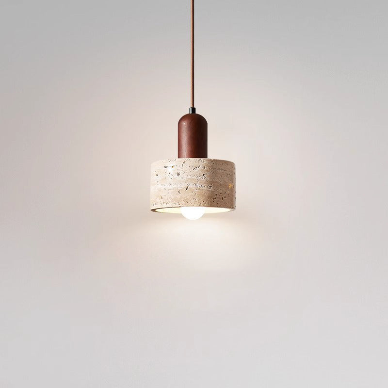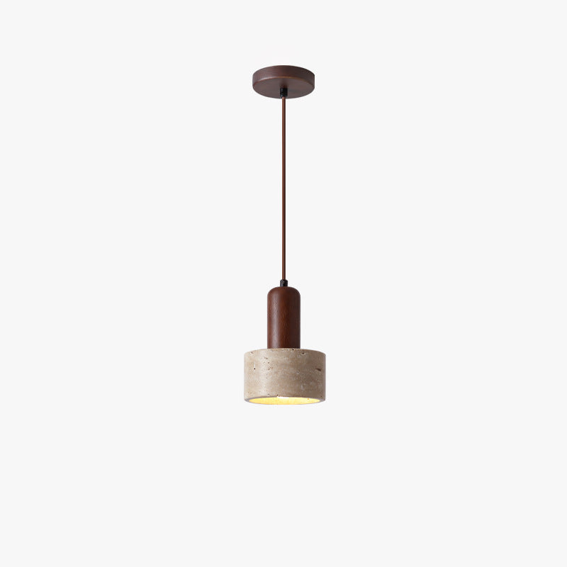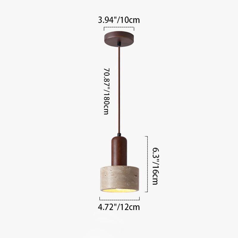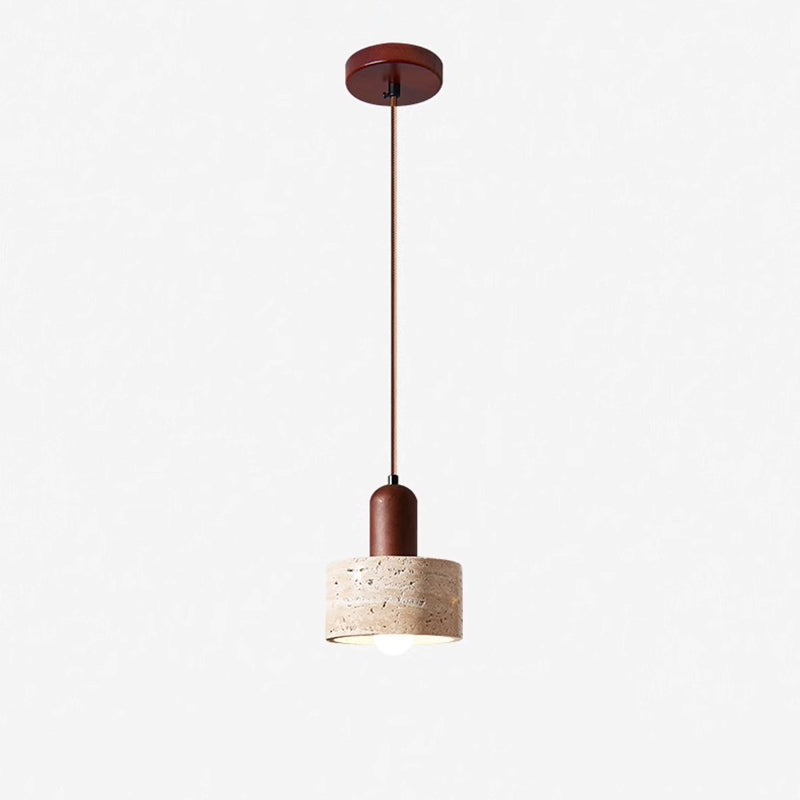 Contemporary Retro Round Travertine Texture Wood 1-Light Pendant Light For Dining Room