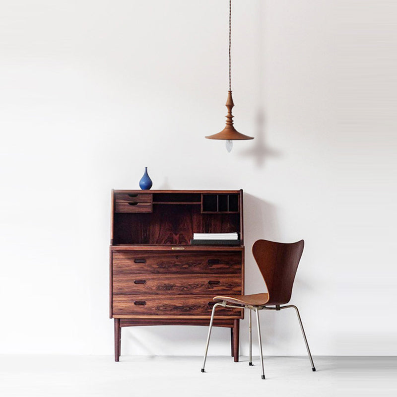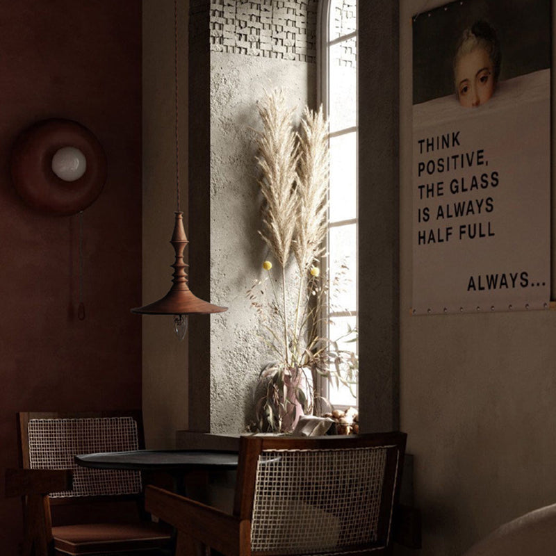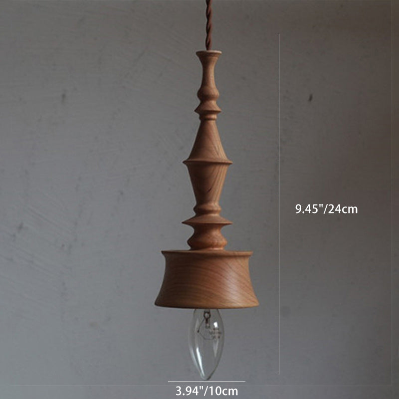 Contemporary Retro Round Wood 1-Light Pendant Light For Living Room