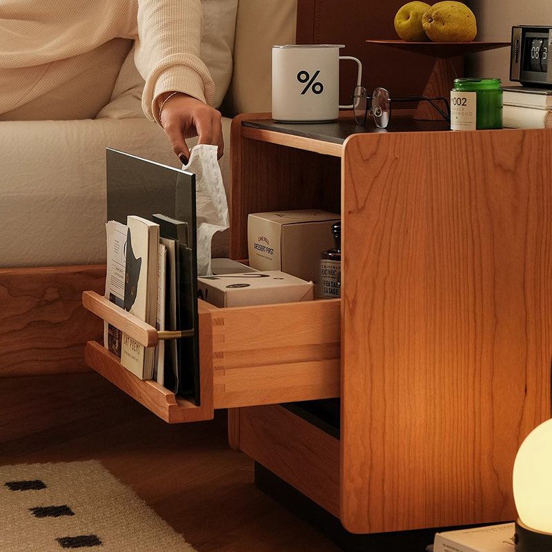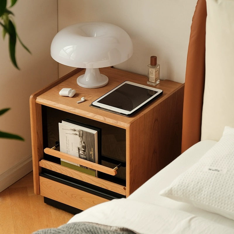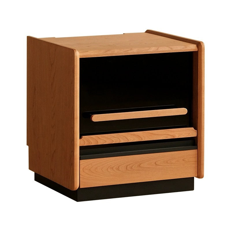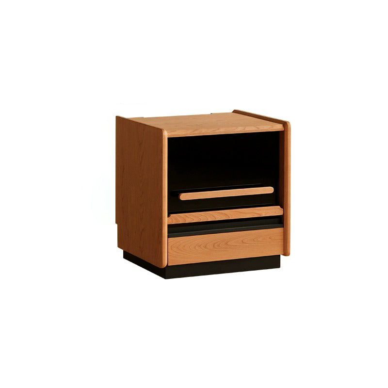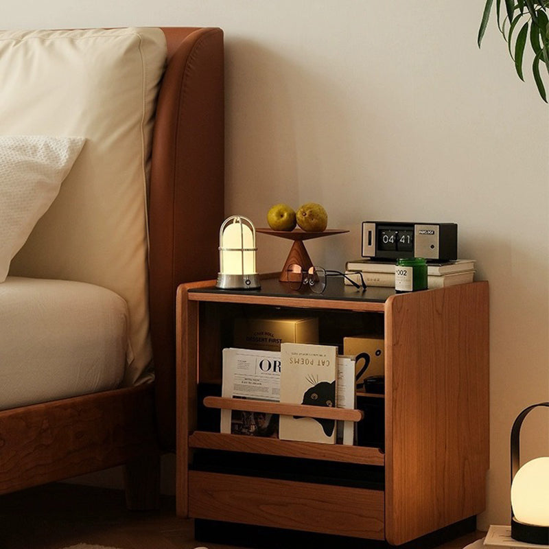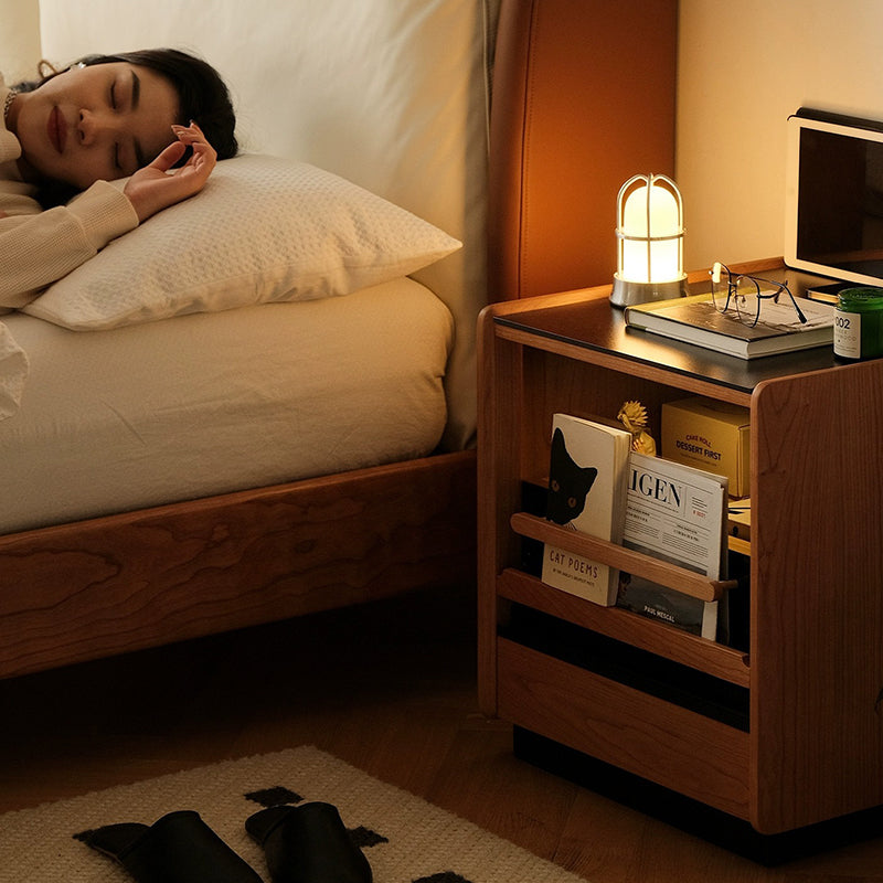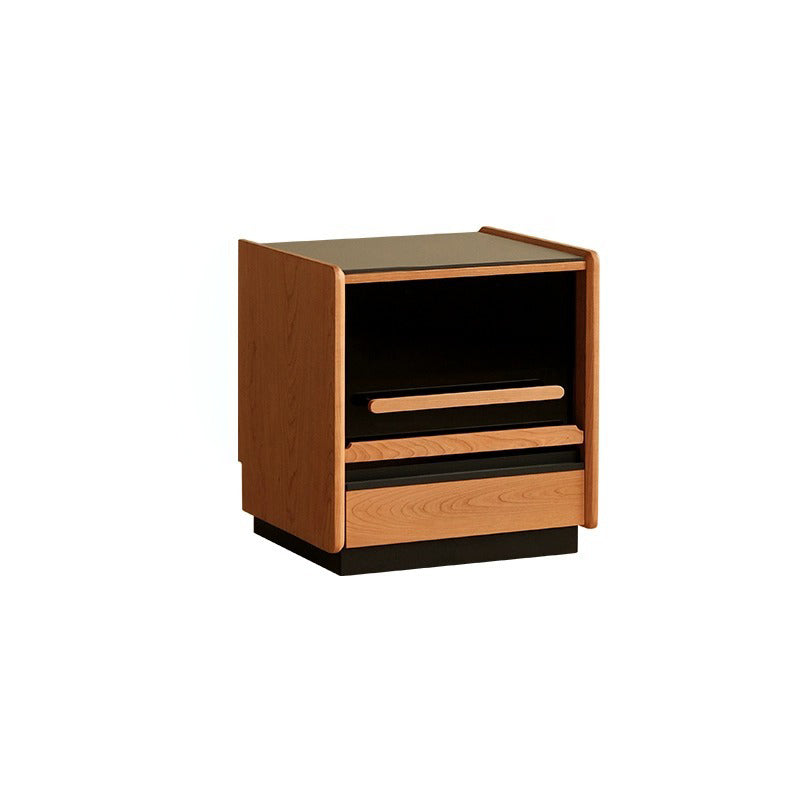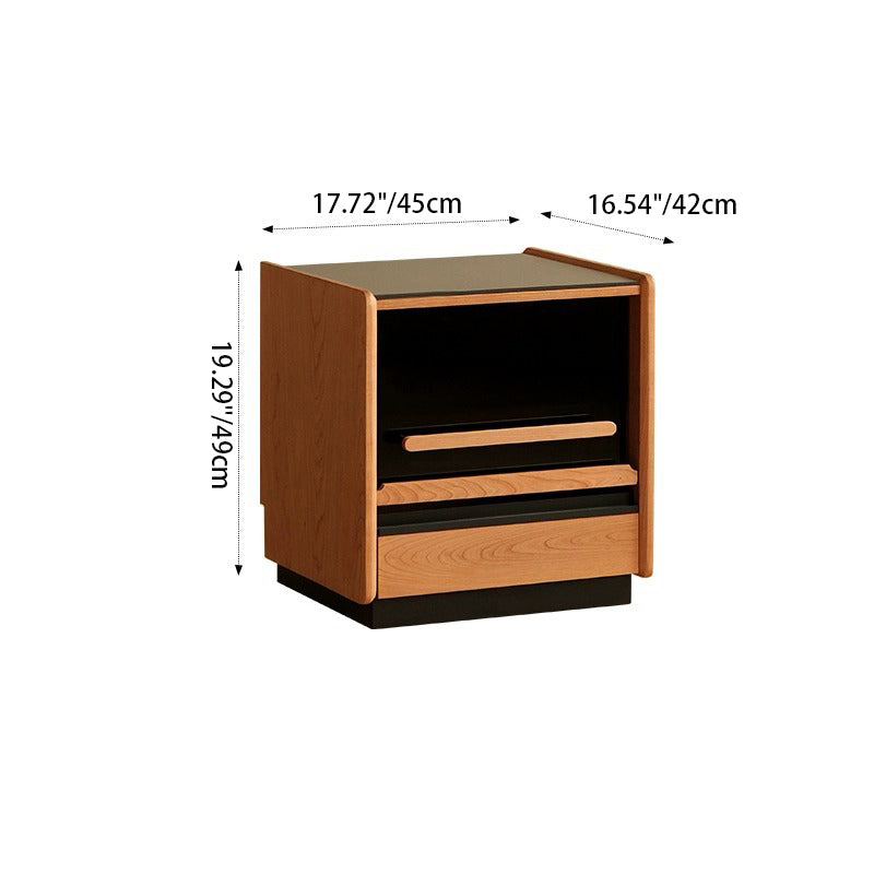 Contemporary Retro Sintered Stone Cherry Wood Nightstand 2 - Drawer For Bedroom
